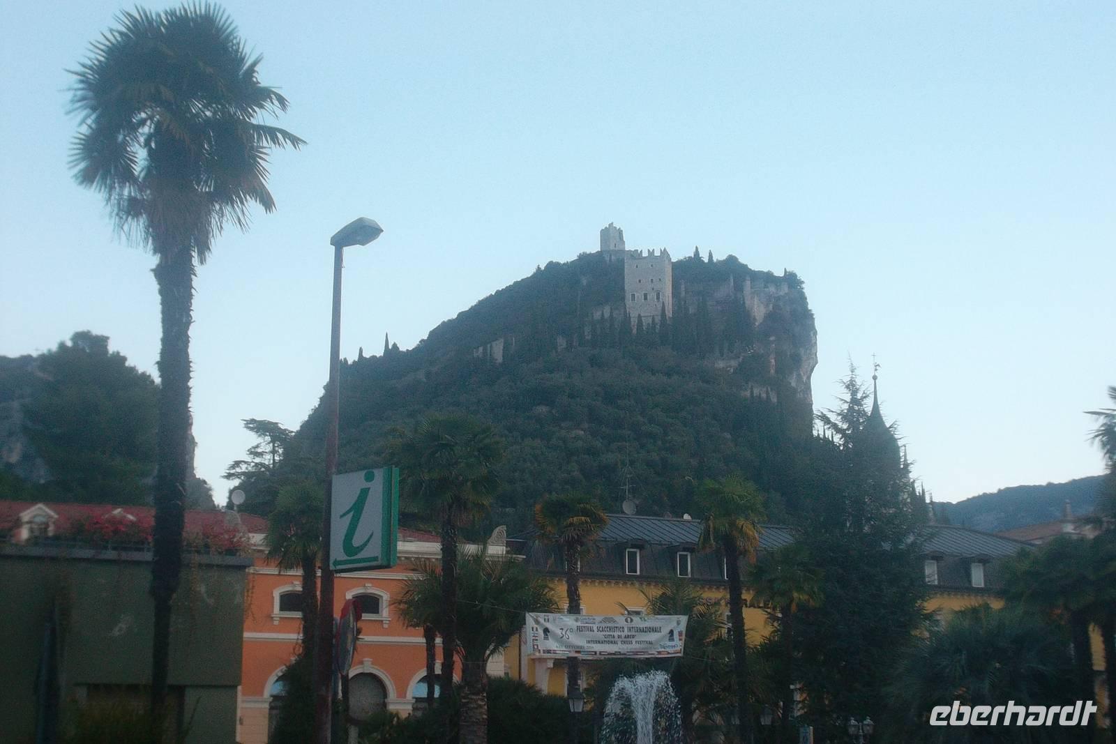 Pünktliche Abfahrt und allmähliches Anwachsen unserer Bus-Reisegesellschaft bestimmte wie immer den Vormittag, bevor wir durch Bayern vorbei an Nürnberg und München Österreich erreichten. Schon ging es durch das „Land der Berge" - Tirol, das wir relativ rasch durchquerten und durch das wunderschöne Inntal, vorbei an Kufstein und Innsbruck zu einer kleinen Pause an die „Europabrücke" gelangten. Bei ihrer Fertigstellung 1963 war sie mit ihren 190 Metern über Talhöhe die höchste Brücke Europas. Hier konnte man bei gutem Wetter ein paar Fotos machen - ebenso wie von den Resten der alten Römerstraße, die hier zu sehen sind - Überbleibsel des historischen Weges über den Brennerpass. Schon die Römer nutzten den mit 1.374 Metern niedrigsten Alpenübergang - der übrigens schon seit 1919 Grenze zwischen Österreich und Italien ist. Vorbei an zahlreichen Burgen Südtirols und an dessen Hauptort Bozen führt die Autobahn durch die Täler der Flüsse Eisack und Etsch (Isarco und Adige) bis in die Höhe des Gardasees. Verkürzt mit einem kleinen italienischen Sprachkurs im Bus, den alle Gäste mit Bravour absolvierten, war dann die Ausfahrt zum Norden des Gardasees erreicht, über die wir unser Hotel im Städtchen Arco erreichten.
