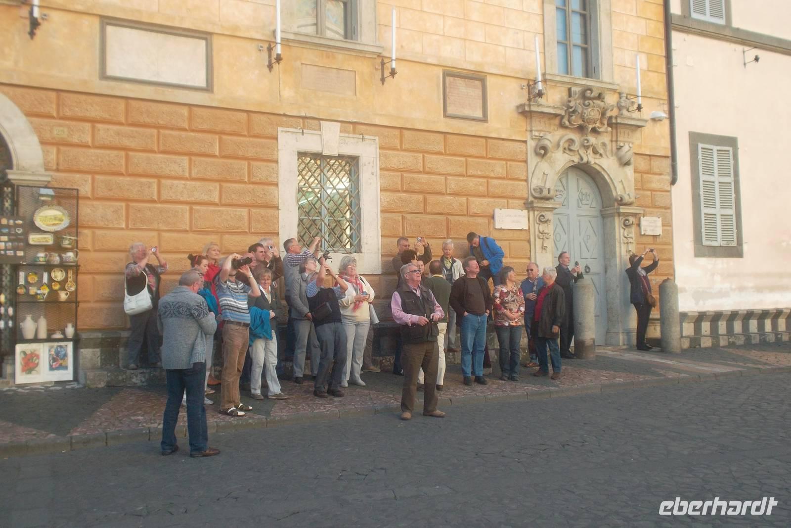 Heute war eine Stadtrundfahrt mit unserem Bus - denn wir waren im Besitz einer gültigen Rundfahrt-Genehmigung mit Gebühr für Rom - und dann zu Fuß und mit öffentlichen Verkehrsmitteln quer durch Rom geplant. Zunächst brachte uns der Bus zum Lateran, wo uns unsere örtliche Reiseleiterin Agnieszka Berlin erwartete. Nach einer sachkundigen Einführung in die Geschichte des Christentums und der Bischöfe von Rom konnten wir einen Blick in die große Lateran-Basilika werfen. In den ersten fünfzehnhundert Jahren Christentum war der Lateran, der seinen Namen nach der ursprünglichen römischen Besitzerfamilie Laterani erhalten hatte, Sitz der Päpste - bevor Petersdom und Vatikan diese Funktion übernahmen. Bis heute ist die Kirche „San Giovanni in Laterano", die bereits im Jahre 313 n. Chr. von Kaiser Konstantin gegründet wurde, die Bischofskirche von Rom. „Mutter und Haupt aller Kirchen der Stadt und des Erdkreises" wird sie in der Inschrift an ihrer Hauptfassade genannt und sie bildet eine der vier sogenannten „Patriarchalbasiliken" von Rom. In den Jahrhunderten mehrfach umgestaltet, hat sie eine grandiose Raumwirkung im Inneren und gehört mit Sicherheit zu den schönsten Kirchen der Christenheit, wovon ihre Mosaiken und Bemalung und der verschwenderisch mit Steinintarsien geschmückte Fußboden zeugen. Nach ausführlicher Besichtigung und Erklärungen durch unsere charmante Stadtführerin Agnieszka nutzten wir in der kommende Stunde unseren Bus zu einer interessanten Stadtrundfahrt zu vielen interessanten Stellen des klassischen Rom. Wir hielten beispielsweise zum Fotostopp am Circus Maximus, kamen an der Trajanssäule vorbei und sahen das „Vittoriano", eines der Stasatssymbole Italiens, auch als „Altar des Vaterlandes" bezeichnet. Nach dem Tode des ersten italienischen Königs Vittorio Emanuele II. wurde es von Giuseppe Sacconi errichtet, in etwas schwülstigem und monumentalen, recht nationalistischen Stil. Auch die in den 50er Jahren des 20. Jh. berühmte Via Veneto, deren Cafés und Hotels das mondäne Leben Roms in jener Zeit beherbergten und der Federico Fellini in seinem Film „Das süße Leben" ein Denkmal setzte, konnten wir aus dem Bus ganz gut betrachten. Schließlich hielten wir an und setzten unsere Stadtbesichtigung zu Fuß fort. Erstes Ziel war der berühmte Trevi-Brunnen, spätestens seit dem vieldiskutierten Bad der Filmschönheit Anita Ekberg in Fellinis Film „La dolce vita" („Das süße Leben") ein Muss für jeden Rombesuch. Zwar war der Brunnen wegen Restaurierung eingerüstet, aber ein wenig konnte man doch noch sehen und wir konnten die an Restaurants und Bistros reiche Gegend für unsere Mittagspause nutzen - um eine Pizza oder ein „Tramezzino" zu essen - die italienische Variante des Sandwichs - oder auch um ein leckeres Eis zu kosten, denn in zahlreichen „Gelaterias" um den Platz gibt es das „beste Eis Roms"!