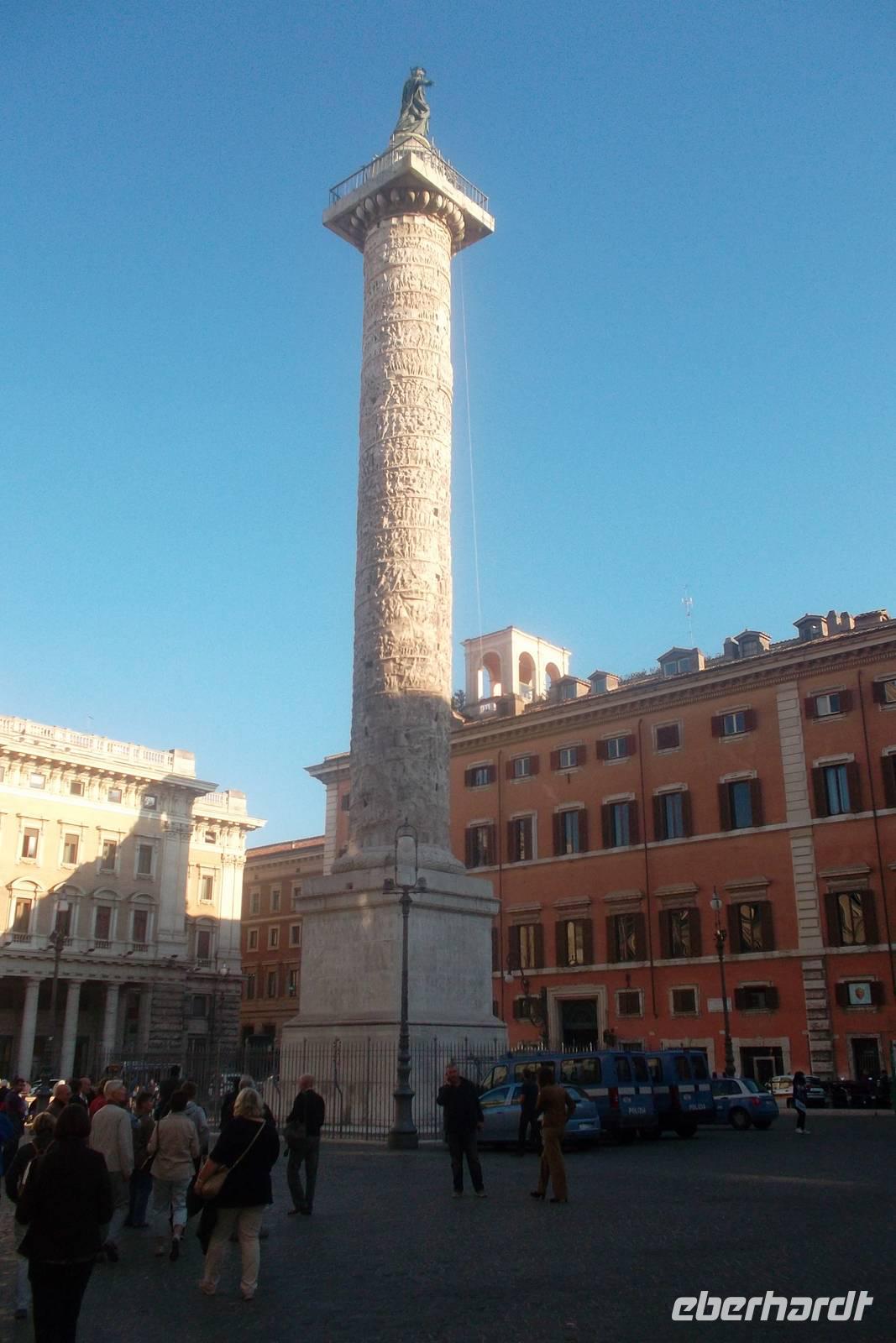 Nach dem Mittag machten wir uns auf zum Allgöttertempel Pantheon. , einem hervorragend erhaltenen antiken Bauwerk, das immensen Einfluss auf die Architekturgeschichte hatte. Hier wurde erstmals eine Kuppel aus Beton gegossen - ein Prachtwerk mit einem Durchmesser von 43 Metern, vor fast 2000 Jahren mit römischem Beton aus vulkanischem Tuff- und Bimsstein hergestellt und bis heute unverändert erhalten. Wir marschierten durch das Regierungsviertel mit Halt an verschiedenen Plätzen, beispielweise am Sitz des Ministerpräsidenten im Palazzo Chigi, direkt an der Piazza Colonna mit der berühmten, fast 30 m hohen Mark-Aurel-Säule.