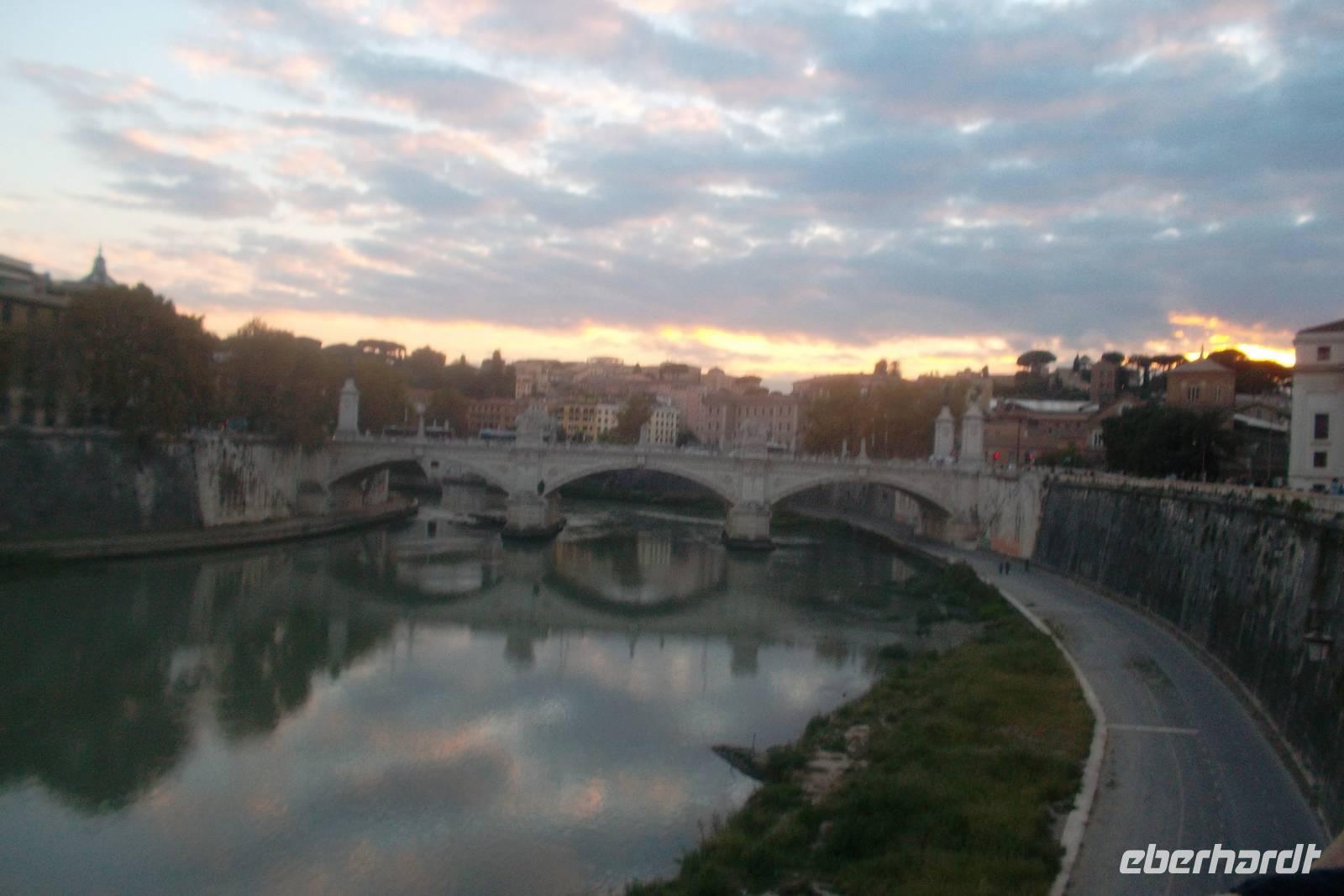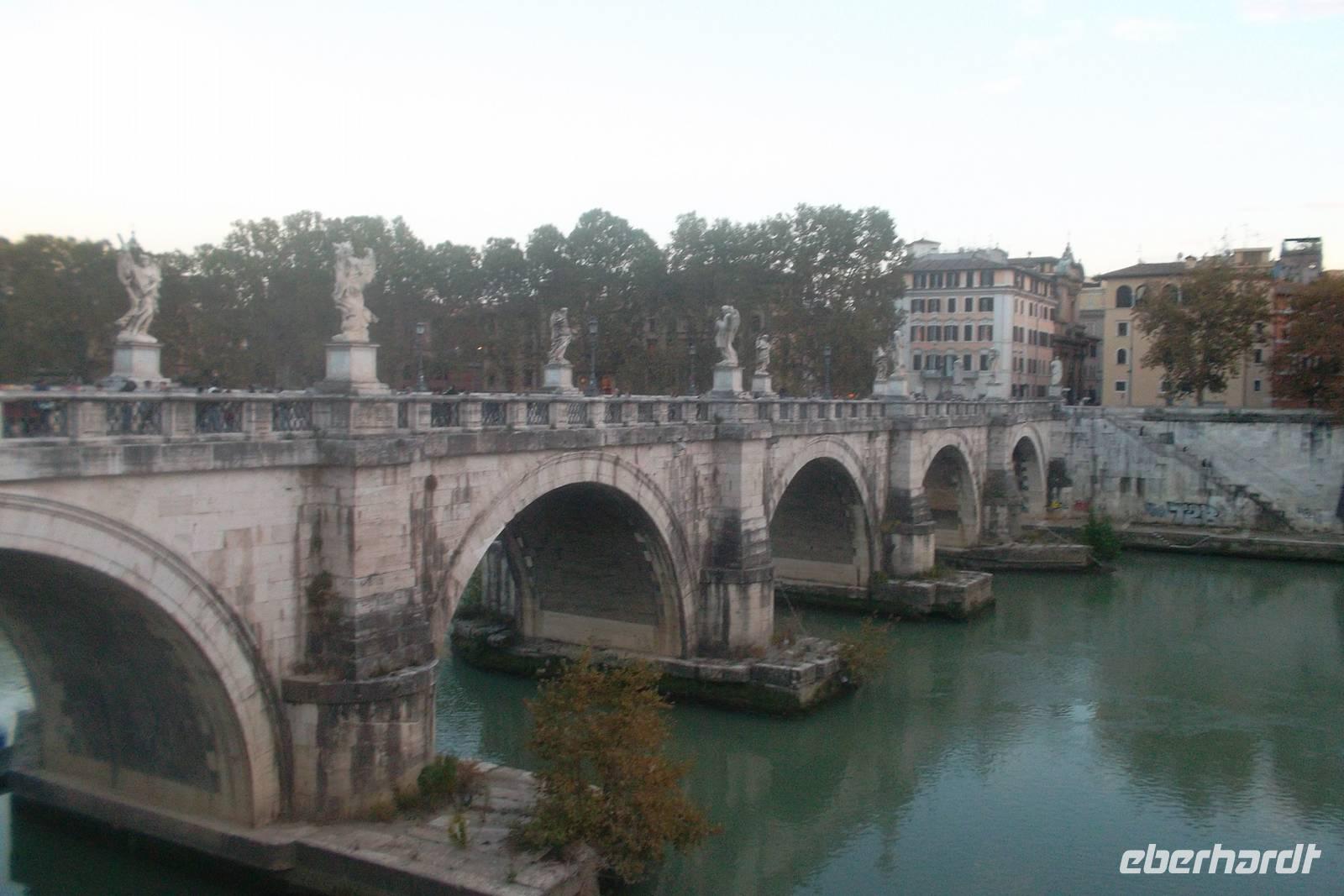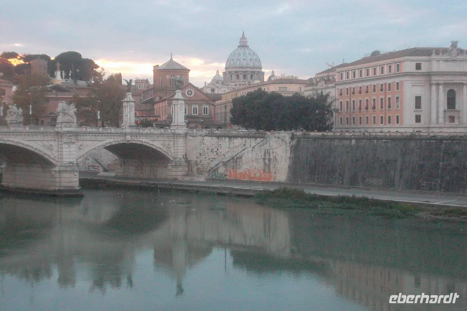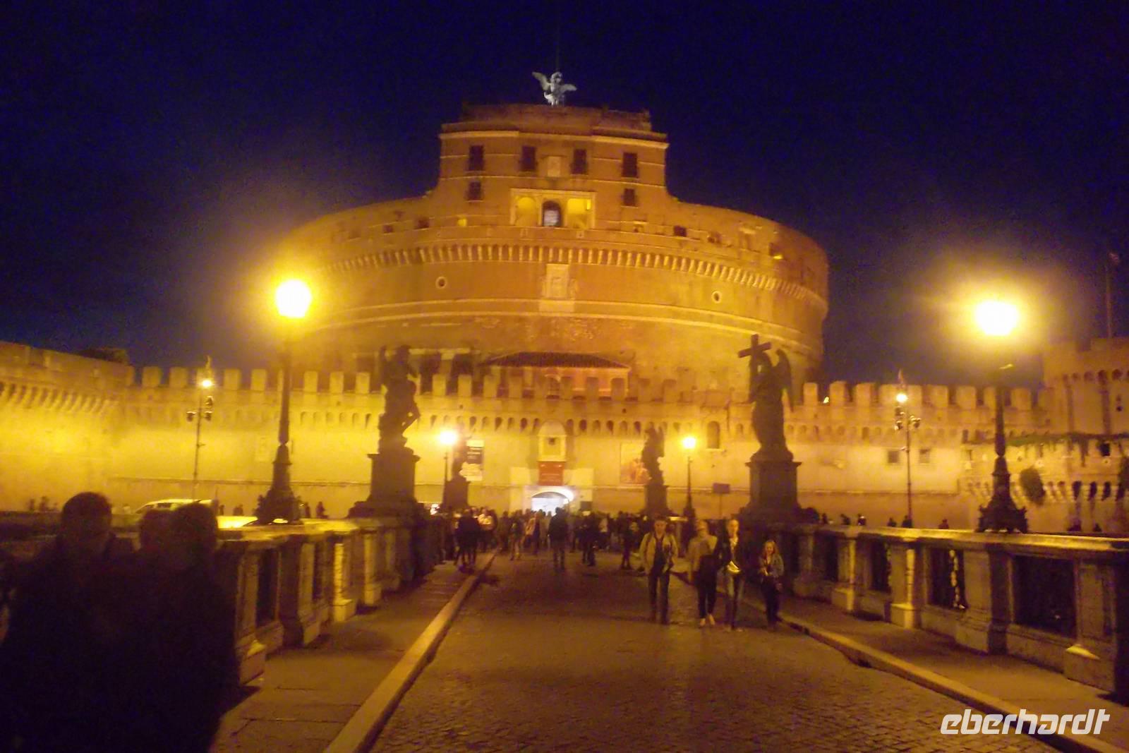 Hier kam dann als Tageshöhepunkt der gemeinsame Besuch von Petersplatz und Petersdom. Der Eintritt in die größte Kirche der Christenheit, die sich im kleinsten Staat der Welt befindet, erfordert meist geduldiges Warten - doch wir hatten Glück, es gab keine Schlange und wir konnten sofort hinein. Die gewaltige Peterskirche, in der wir uns nun befanden, gehört zu den bekanntesten Bauwerken der Welt und ist natürlich UNESCO-Weltkulturerbe. Unsere hervorragende Stadtführerin Agnieszka bewies uns in den folgenden beiden Stunden, dass sie auch zu den wertvollsten, schönsten und aufregendsten Sakralbauten der Welt gehört. Zunächst beeindruckt die schiere Größe des Gotteshauses, doch erstaunlicherweise gewöhnt man sich an die Größenverhältnisse und nimmt die Figuren, die teilweise über 10 m hoch sind, gar nicht mehr so gewaltig wahr, da sie sich in die Gesamt-Dimensionen der Anlage hervorragend einpassen. So ist beispielsweise das Zentrum der Inneneinrichtung, der bronzene Baldachin über dem Petrusgrab, gestaltet von keinem Geringeren als Gian Lorenzo Bernini, so hoch wie ein normaler Adelspalast in den Nobelvierteln Roms. Wir sahen uns viele der berühmten Altäre, Skulpturen und die Besonderheiten im Inneren des Petersdomes ausführlich an, bevor wir uns von unserer Agnieszka verabschiedeten. Dann hatten wir etwas Freizeit - konnten zum Beispiel zur Kuppel des Petersdomes aufsteigen oder die Schweizer Gardisten beobachten. Wer wollte, konnte mit mir zur Engelsburg spazieren, wo wir uns später dann alle trafen, um gemeinsam zum Abendessen zu gehen. Das berühmte Bauwerk „Castello di Angeli" war einst das Mausoleum des römischen Kaisers Hadrian, bevor es zu einem Wehrbau und zur Fluchtburg der Päpste umgebaut wurde. Hier vor der statuengeschmückten Brücke trafen wir uns zum Abendessen, das wir in einem typisch römischen Restaurant einnahmen. Danach brachte uns ein gecharterter Bus zurück in unser Hotel.