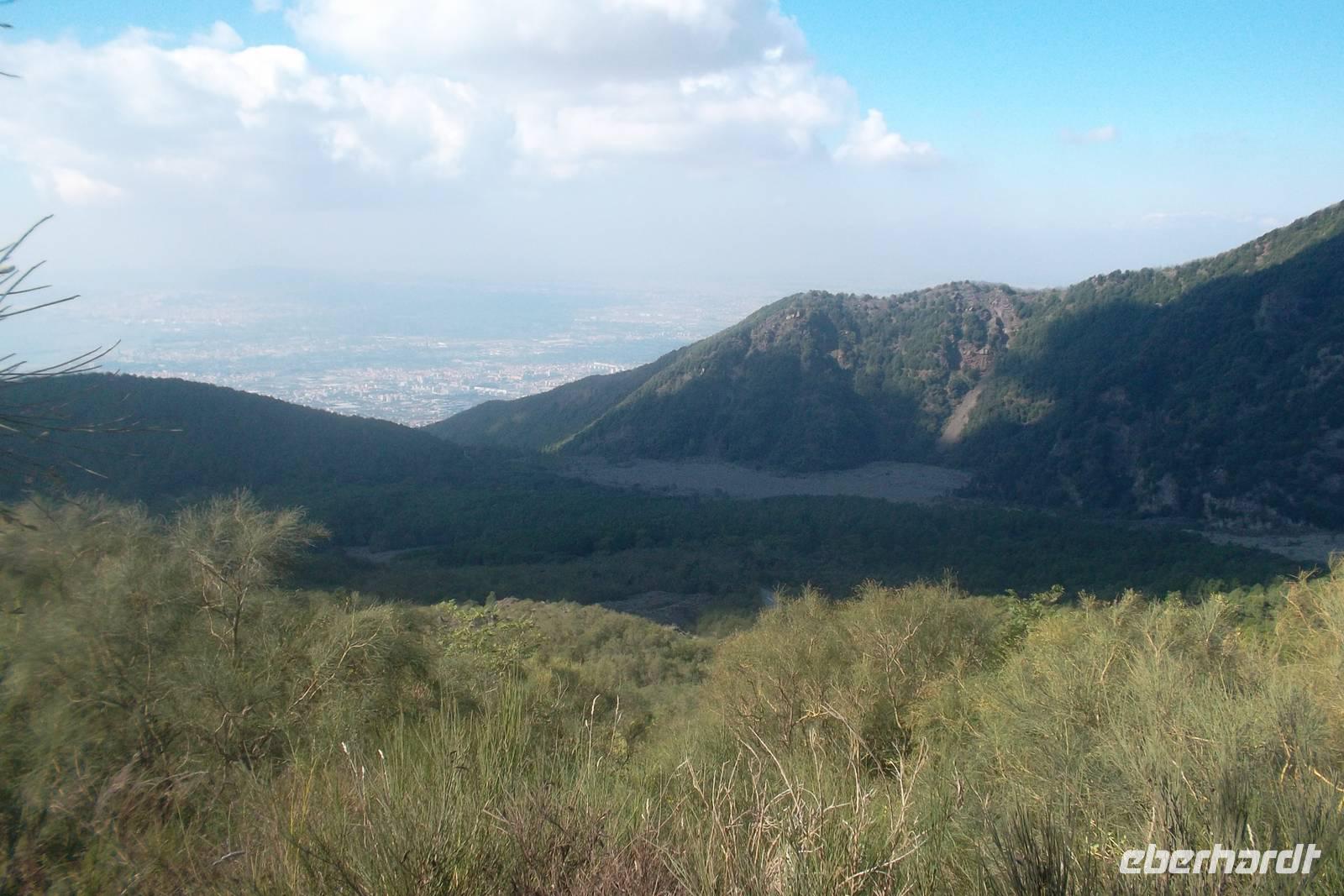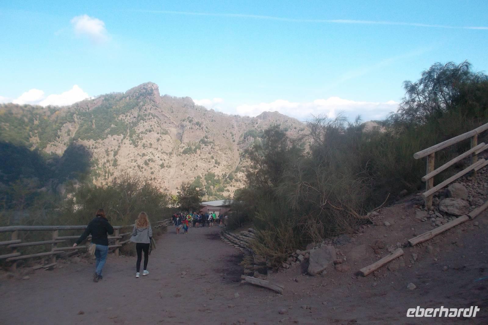 Eigentlich sind zwei Tage recht wenig für eine riesige und mit Kulturdenkmälern überreich gesegnete Stadt wie Rom. So fiel der Abschied von der „ewigen Stadt" doch recht schwer, aber schon recht früh befanden wir uns auf dem Weg nach Süden. Wir passierten die Albaner Berge, die ehemalige Papstresidenz Anagni und die von Ferne grüßende Abtei Montecassino. Kurz vor Mittag waren wir dann an einem der eindrucksvollen und vor allem geschichtsträchtigen Vulkane Italiens, am Vesuv. Dessen imposantes Bergmassiv, ein nach vielen historisch dokumentierten Ausbrüchen derzeit schlummernder Vulkan, hat nach dem gewaltigen Ausbruch des Jahres 79 n.Chr. fast zwei Drittel seiner Höhe und seinen ursprünglichen Krater abgesprengt und steht nunmehr mit zwei Gipfeln in der Landschaft. Der Hauptgipfel - einst wohl über 3000 m hoch - hat heute noch eine Höhe von 1281 m , der zweite Gipfel, der Somma , ist nur 1132 m hoch. Seine gewaltige Eruption im Jahre 79 n. Chr., belegt u.a. beim Geschichtsschreiber Plinius, hatte mehrere Städte durch Lava, Schlamm und Ascheregen zerstört. Da er derzeit nicht aktiv ist, wurde seine Besteigung zu einer Attraktion, die auch wir in unserem Programm hatten: gegen Mittag erreichten wir den für Busse nur noch zum Aus- und Einsteigen nutzbaren Parkplatz und alle Reisegäste machten sich an den - zugegeben etwas beschwerlichen - Aufstieg. Fast 300 m höher führt der steile Fußweg, der einen über Vulkanaschefelder, Sand und Lavageröll zum Kraterrand führt. Ab und zu sieht und riecht man unterwegs die Ausdünstungen von Dampfquellen und Schwefelausbrüchen, die der Fachmann Solfataren nennt.