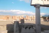 Anschließend kehrten wir fast auf Meereshöhe zurück, um am Fuße des Vesuvs als nächsten Programmpunkt die Ausgrabungsstätte Pompeji zu besichtigen. Ortsführer Maurizio erzählte uns in lockerer Art etwas über „seine Vorfahren", die Bewohner des alten Pompeji, und machte uns mit der einstigen Lebensweise in dieser antiken römischen Stadt bekannt. Pompeji wurde beim großen Ausbruch des Vesuv im Jahre 79 durch eine riesige, Aschenwolke vernichtet. Die Hoffnung der Bewohner, mit geschlossenen Türen und Fenstern den Ausbruch des Vulkans zu überstehen, war trügerisch - die Stadt wurde zur Todesfalle. Innerhalb von wenigen Stunden waren alle in der Stadt Verbliebenen an den giftigen Gasen, die dem Vesuv entströmten, erstickt, innerhalb weniger Tage - mindestens drei dauerte die Eruption an - war Pompeji komplett mit Asche zugedeckt und alles und jeder war erstickte. Viele Einwohner konnten zumindest das nackte Leben retten, aber alle die zurückgeblieben waren, starben und wurden bis auf die Knochen verbrannt. Bei den Ausgrabungen wurden diese Körper als Hohlräume unter der Ascheschicht entdeckt - später mit Gips ausgegossen und lieferten so ein erschütterndes, aber sehr realistisches, wenn auch makaberes Bild der Ereignisse. Durch die de facto „Konservierung" durch die Vulkanasche hat sich Pompeji als eine der am besten erhaltenen Ausgrabungsstätten weltweit erwiesen. Heute ist die Stadt ein Freilichtmuseum für römische Architektur und Spiegel des täglichen Lebens in einer römischen Provinz- und Hafenstadt. weise. Neben Geschäften, Wohnhäusern, Schnellrestaurants und Bädern sind der alte Marlkt, Reste der Tempel und besonders gut die alte Straßenpflasterung mit Karrenspuren und Trittsteinen zur Straßenüberquerung erhalten. Nicht umsonst ist Pompeji ein Besuchermagnet und übertrifft immer wieder die Erwartungen der Gäste, die sich kaum vorstellen können wie sich ganze Gebäude, hohe Mauern und sogar detailgetreue Wandbemalungen unter der jahrtausendealten Ascheschicht erhalten haben.