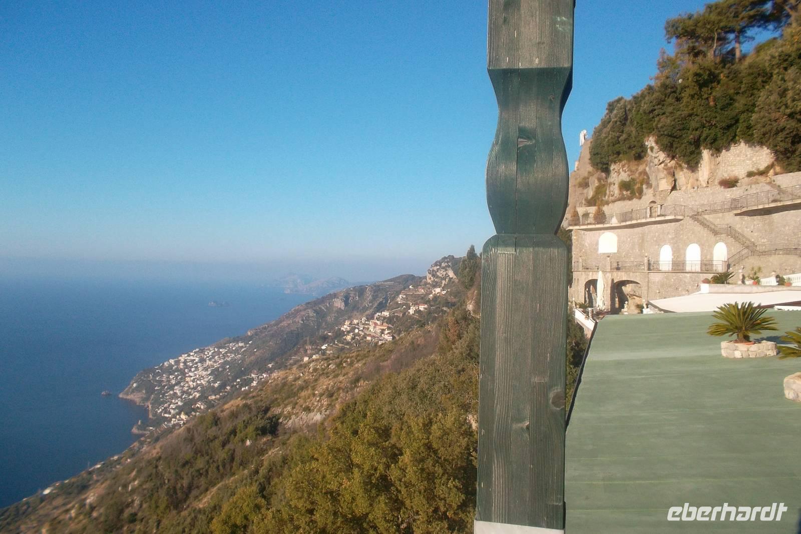 Von Pompei aus brachen wir zur letzten Tagesetappe auf und erreichten lange nach dem recht frühen Einbruch der Dunkelheit den hübschen Ort Agerola mit unserem Domizil für die nächsten vier Nächte - das Grand Hotel "Sant´Orsola". Die Anfahrt ist schwierig und kurvenreich, aber die Belohnung ist ein wundervolles Hotel 630 m hoch über dem Meer und mit überwältigendem Ausblick auf die Amalfiküste. Fast genauso im Gedächtnis wie dieser bleiben das Hotelambiente und überaus herzliche und bemühte Empfang durch den Geschäftsführer, Herrn Stefano Cesarano. Es ist ein Hotel zum Wohlfühlen, das natürlich durch das schmackhafte landestypische Abendessen noch gesteigert wurde.