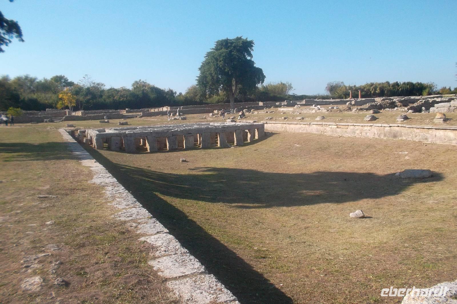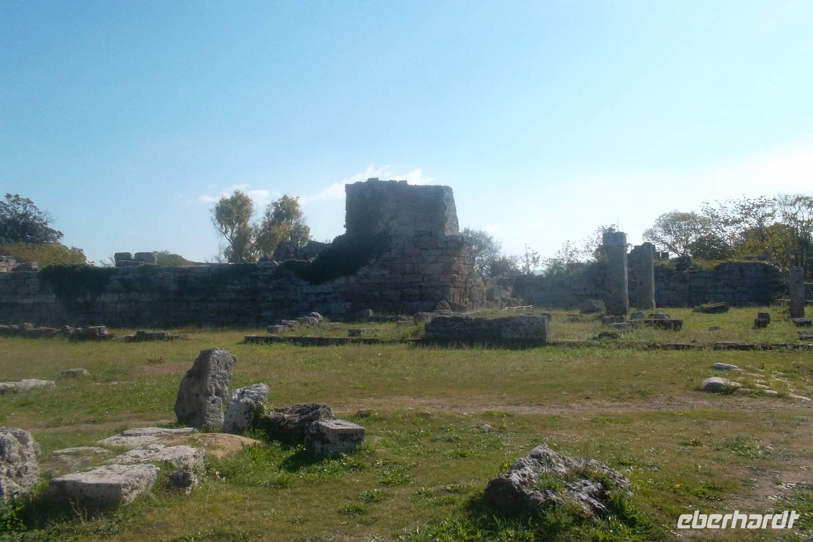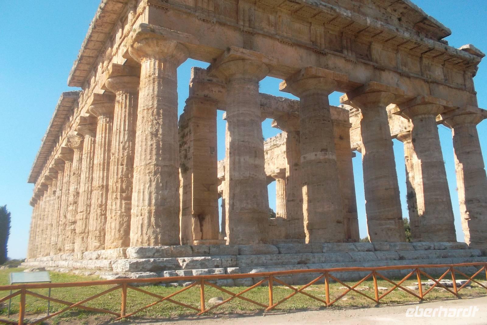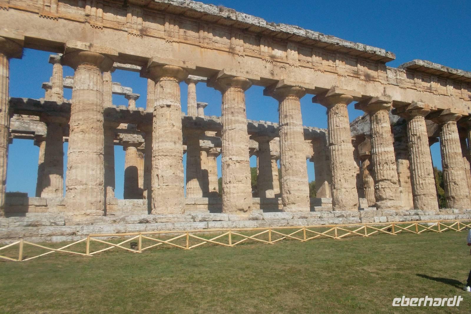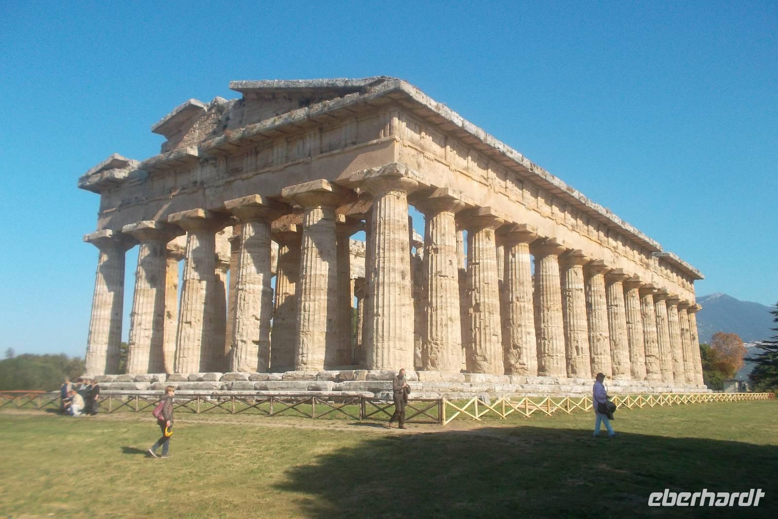 Die hervorragend erhaltenen Tempel - gewidmet der Hera, der Athene und - der jüngste - einem nicht näher bekannten Gott, der oft als Poseidon vermutet wurde - stammen aus dem 6. und 5. Jh. v.Chr.
