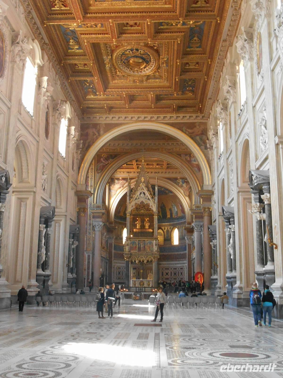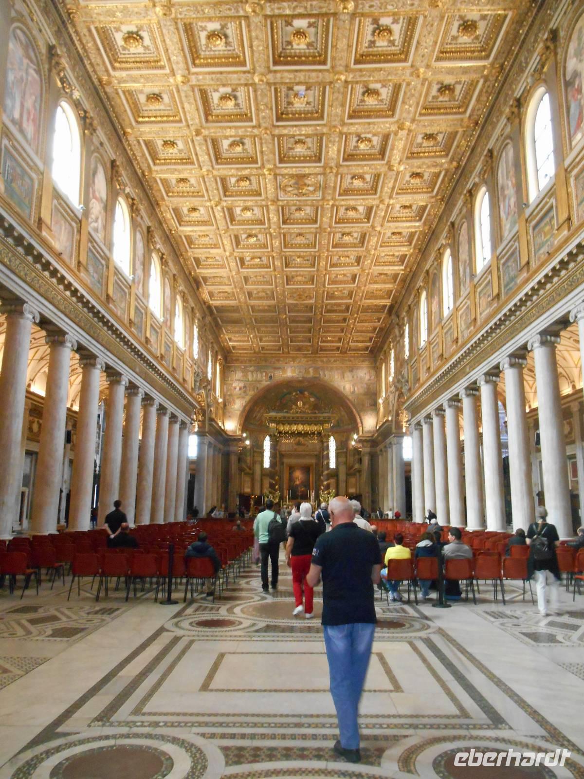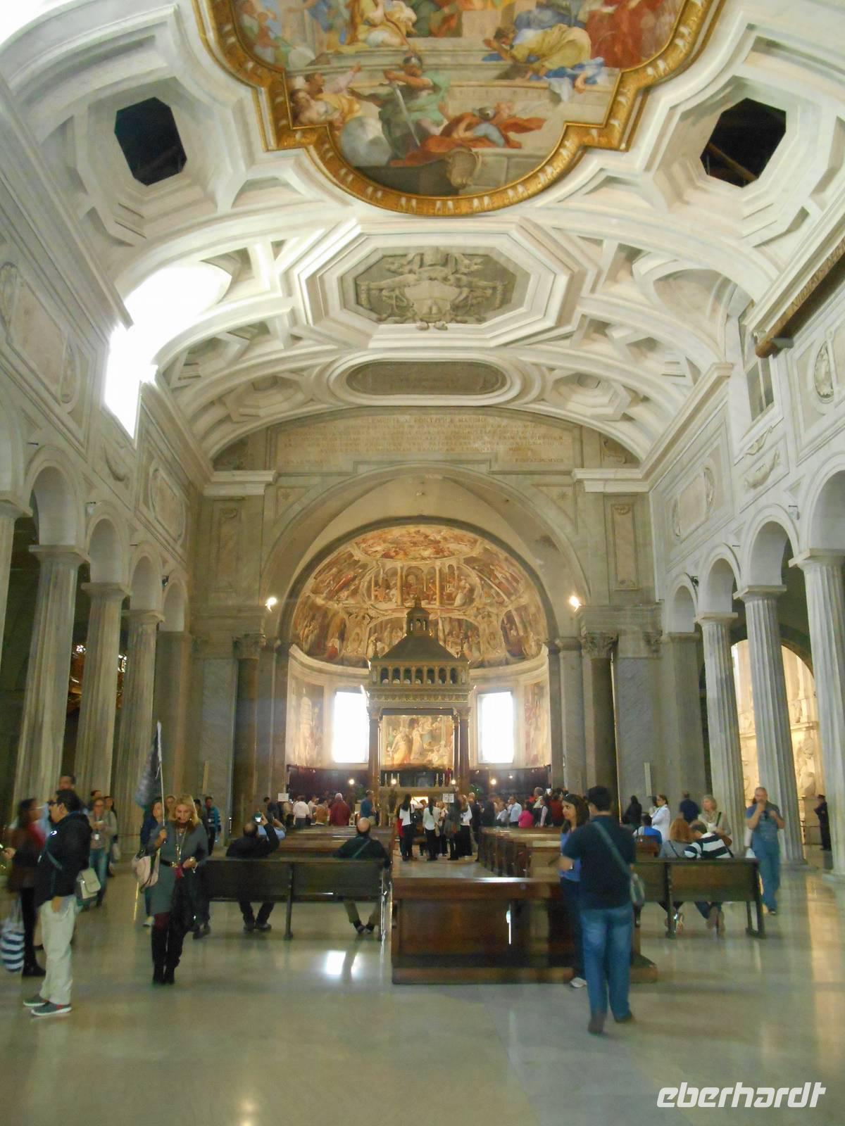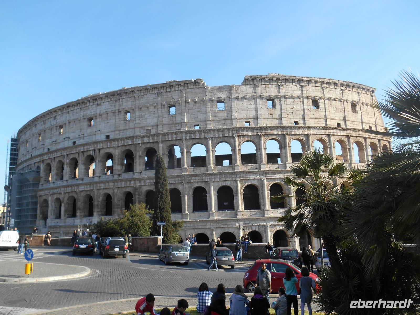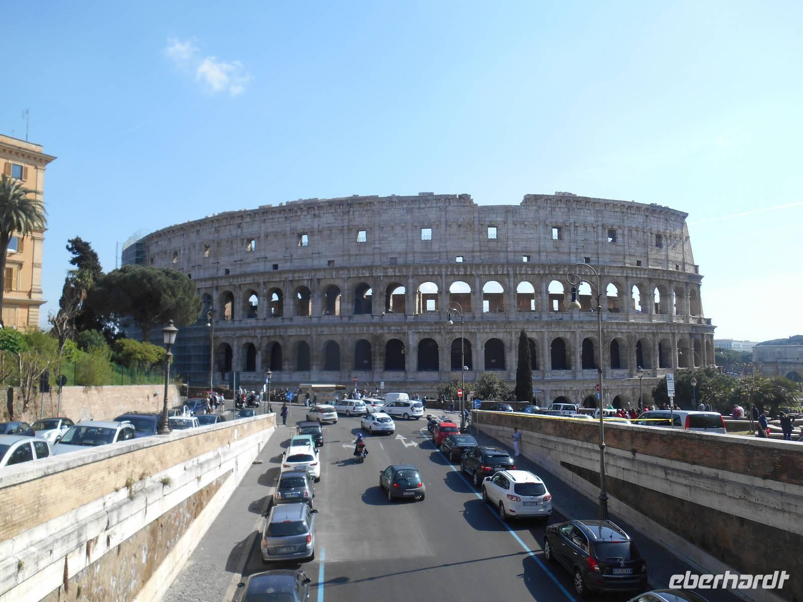 Das Frühstück im Hotel war zwar nicht so üppig wie zu Hause, aber das wussten wir bereits vorher und somit fuhren wir gut gelaunt mit unserem eigenen Reisebus in die Stadt hinein. Wir wurden für die nächsten Tage mit Audio-Geräten ausgestattet, damit wir die Führungen ganz intensiv erleben konnten. Unsere nette Stadtführerin Susanne erwartete uns bereits am Ostiense-Bahnhof und hier begann auch gleich der erste Teil unserer informativen Stadtrundfahrt - diese führte uns unter anderem vorbei an den Caracalla-Thermen, welche mehr als nur ein Badehaus waren, zum Circus Maximus. Es war das größte Stadium im antiken Rom. Fast ein ganzes Jahrtausend lang wurden dort beliebte Wagenrennen gehalten. An einem Punkt der Geschichte bot der Circus Platz für 250.000 Leute - ein Viertel von Roms Bevölkerung! Weiterhin sahen wir berühmte Plätze und Straßen der Stadt wie die Piazza Venezia mit dem Nationaldenkmal, die Via Nazionale und die elegante Via Veneto, bevor wir das Olympiastadion von 1960 etwas außerhalb der Innenstadt erreichten. Nachdem wir auch noch Sehenswürdigkeiten wie die Engelsburg und die Tiberinsel vom Bus aus sahen, stiegen wir in der Nähe des Kapitolshügels aus, um diesen zu Fuß zu erklimmen und von dort aus einen Blick auf das Forum Romanum zu werfen. Von den hiesigen Kaiserforen wurde nicht nur Rom, sondern das ganze Römische Reich regiert. Hier lag für fast 1.000 Jahre das Zentrum der Antike. Der Etruskerkönig Priscus hatte im 6. Jh. v. Chr. den Sumpf zwischen Kapitol, Palatin und Esquilin entwässert und als "Cloaca Maxima", die erste große Kläranlage der Antike, dem Tiber zugeführt. Das Forum Romanum, ursprünglich als Vesta-Heiligtum gedacht, entwickelte sich schließlich vom Viehmarkt zur politischen Arena. So langsam bekamen wir Hunger und unser Bus brachte uns daher in die Nähe der Kirche Santa Maria Maggiore, wo wir erst einmal eine Mittagspause einlegten. Jeder nutzte die Zeit ganz individuell, um ein Stück Pizza bzw. etwas Pasta in einer der zahlreichen kleinen Bars zu essen oder ganz einfach ein leckeres italienisches Eis zu schleckern! Gut gestärkt trafen wir uns wieder und besichtigten gemeinsam die Kirche Santa Maria Maggiore, eine der vier Patriarchalbasiliken Roms. Sie wurde unter Papst Sixtus III. errichtet, nachdem 431 das Konzil von Ephesus Maria, die Mutter Jesu, als Gottes Gebärerin verkündet hatte und dadurch die Marienverehrung aufgeblüht war. Anschließend führte uns unsere Rundfahrt mit dem Bus zu einer weiteren wichtigen Kirche Roms - der Lateransbasilika, welche eine der ältesten Kirchen Roms ist. Sie ist die eigentliche Kathedrale des Papstes und gilt als Mutter und Haupt aller Kirchen der Welt. Im Lauf der Jahrzehnte wurde die Basilika beschädigt und wieder gebaut, das jetzige Aussehen der Basilika San Giovanni im Lateran ist Borrominis Werk. Eine letzte kurze Fahrt mit unserem Bus führte uns zum Oppio-Hügel, wo wir der Kirche San Pietro in Vincoli (St. Peter in Ketten) einen Besuch abstatteten. Diese beherbergt nämlich eine große Berühmtheit - das Grabmal Julius II., welches von Michelangelo geschaffen wurde. Im Grabmal sind die Statuen von Rachel, Lea und Mose zu sehen. Vor allem die Moses-Statue gilt als wichtiges Werk Michelangelos. Mose ist dargestellt als Rückkehrer vom Berg Sinai mit den Gesetzestafeln, im Moment als er die Israeliten beim Tanz um das goldene Kalb entdeckt. Der Name der Kirche stammt übrigens - wie es zumindest heißt - von den Ketten, in denen Petrus bis zu seiner Befreiung in Jerusalem gefesselt war. Außerdem soll Petrus diese sie im Mamertinischen Kerker Roms getragen haben. Diese Ketten werden in einer Glasvitrine unter dem Altar der Kirche aufbewahrt. Nun war es aber genug mit Kirchen für heute - ein letzter Höhepunkt unserer Reise stand am Ende des heutigen Besichtigungsprogramms auf dem Programm - das Kolosseum! Kaiser Vespasian begann den Bau 72 n. Chr., sein Sohn Titus weihte die Arena nach nur achtjähriger Bauzeit mit hunderttägigen Festspielen ein. Unzählige Tiere und Gladiatoren wurden geopfert. Sehr lebendig sind allerdings noch die Legionäre, mit denen man hier gegen ein Entgelt für ein Foto posieren kann. Hier hatten wir zum Glück auch noch etwas Freizeit, um uns in den zahlreichen Straßencafés einen leckeren Cappuccino schmecken zu lassen - einfach himmlisch...! Andere Gäste, die noch etwas Energie übrig hatten, konnten jetzt noch das Kolosseum bzw. das Forum Romanum individuell besichtigen. Nach einem leckeren Abendessen in der Innenstadt kehrten wir gemeinsam gegen 21 Uhr zum Hotel zurück. Ein zwar anstrengender, aber auch sehr eindrucksvoller Tag ging nun zu Ende.