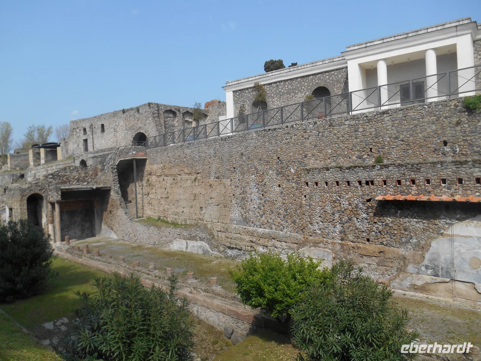 Heute hieß es "Arrividerci Roma" - wir fuhren weiter in den Süden und zwar in Richtung Neapel. Schon von weitem sahen wir, dass der heutige Vesuv eigentlich zwei Gipfel hat, nämliche den Monte Somma, den Rest des alten Vesuv, der beim Ausbruch 79 n. Chr. regelrecht explodiert ist und den 1.280 Meter hohen eigentlichen Gipfel des Vesuvs. Der Bus brachte uns bis auf knapp 1.000 m hinauf, die restlichen etwa 300 Höhenmeter mussten wir zu Fuß zurücklegen. Das erste Drittel war ziemlich steil, dann ging es gemächlicher voran, nach reichlich einer halben Stunde standen wir am Kraterrand. Der Berg scheint völlig zu ruhen, wir sahen nur ein paar Dampfquellen. Umso erstaunlicher ist für uns die Tatsache, dass dieser Vulkan ein Pulverfass ist - der letzte Ausbruch war 1944, das ist lange her. Experten sagen, dass ein gewaltiger Gesteinspfropfen den Krater versperrt und die vulkanischen Kräfte sich somit aufstauen, je länger der Berg ruhig bleibt, desto heftiger wird eines Tages die Eruption sein. Etwa 700.000 Neapolitaner leben weniger als zehn Kilometer vom Krater entfernt, jedem ist die Gefahr bewusst, man verdrängt sie allerdings permanent. Die vulkanische Erde ist sehr fruchtbar und sichert den Bewohnern gute Einnahmen in der Landwirtschaft. Am frühen Nachmittag erreichten wir das nahe gelegene Pompei, wo wir unseren witzigen Führer Maurizio trafen. Die archäologische Zone von Pompei ist heute ein riesiges Freilichtmuseum römischer Lebensweise. Pompei ist eine Stadt, die innerhalb von Stunden von ihren Bewohnern verlassen wurde und dann bis zu ihrer Ausgrabung keine Veränderung mehr erfuhr. Mit der Katastrophe des Jahres 79 hatte niemand gerechnet. Das schwere Erdbeben 16 Jahre zuvor signalisierte nach heutigen Erkenntnissen wahrscheinlich das Ende einer langen Ruhephase des Vulkans, denn auch in späterer Zeit waren Ausbruchsperioden fast immer von Erdbeben begleitet oder vorangekündigt. Das ausgegrabene Pompei zeigt deutliche Spuren des Erdbebens und überall in der Stadt weisen Mörtelhaufen und Baumaterial auf den noch andauernden Wiederaufbau hin. Es ist für uns heute unvorstellbar, aber man muss sich vorstellen, dass im Jahre 79 der obere Teil des Vesuvs unter dem Druck der aufsteigenden Gase regelrecht explodierte. Über dem Berg stand eine riesige, wie eine Pinie geformte Aschenwolke, die dann auf die Umgebung, besonders auf Pompei nieder regnete. Der Untergang Pompeis erfolgte keineswegs innerhalb von Minuten, sondern dauerte Stunden und Tage, so dass mit Sicherheit der größte Teil der Einwohner zumindest das nackte Leben retten konnte. Schließlich erstickten hochgiftige Gase und die sich meterhoch auftürmenden heißen Vulkanaschen alles Leben. Was jetzt noch an lebenden Wesen zurückgeblieben war, wurde von der Asche wie von einer Gussform eingehüllt, Fleisch und Knochen verbrannten und wurden von ätzenden, scharfen Mineralsalzen zerfressen - ein Hohlraum entstand. Während der Ausgrabungen wurden viele dieser Hohlräume mit Gips ausgegossen und wir haben heute ein makaber-plastisches Bild des Todeskampfes der Zurückgebliebenen: Hunde, Gefangene, Zögernde, die noch möglich viel von ihrem Besitz retten wollten, wahrscheinlich auch Plünderer. Pompei ist einzigartig - wir gingen durch Straßen, an Geschäften, Restaurants und Bädern vorbei, bis wir schließlich das Freudenhaus erreichten; ja, es ist nicht umsonst das älteste Gewerbe der Welt und selbst bei den Römern gab es bereits diese Etablissements. Nach dieser interessanten Führung in Pompei brachen wir nach Agerola auf, wo wir bereits im Grand Hotel "Sant´Orsola" erwartet und herzlich begrüßt wurden. Das Grand Hotel "Sant'Orsola" liegt auf ca. 600 Metern Höhe genau über der Amalfitanischen Küste, der Ausblick auf die Amalfiküste ist von hier aus einzigartig! Nach einem schmackhaften Abendessen ging wiederum ein eindrucksvoller Tag zu Ende. Manch einer ließ sich anschließend noch von einem der sogenannten "Super-Sonder-Lockangebote" von unserem Hotelier Stefano inspirieren und ließ den Abend bei einem Getränk an der Hotelbar ausklingen.