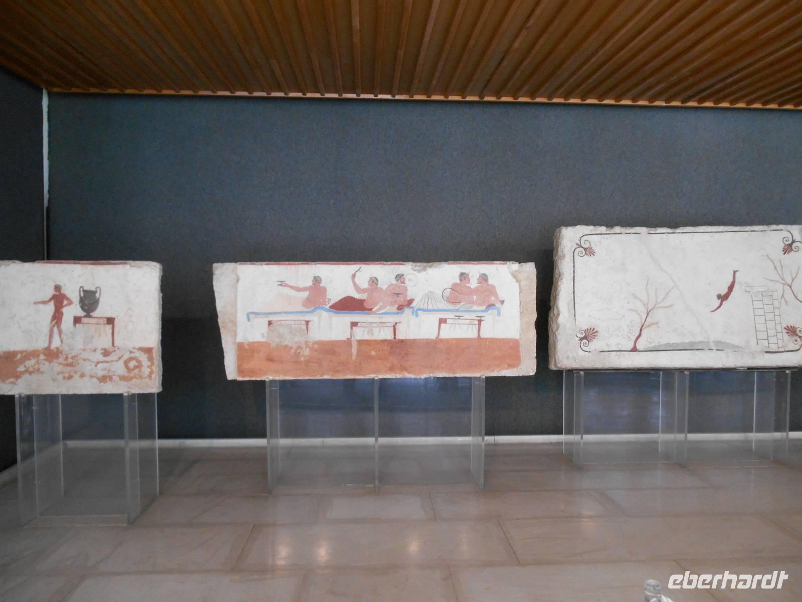 Heute fuhren wir zur Abwechslung mal in Richtung Süden - es ging an Salerno vorbei nach Paestum! Der Wettergott war zum Glück auch heute wieder auf unserer Seite - die Sonne lachte...! Unseren örtlichen Reiseleiter Angelo trafen wir vor Ort. Zuerst ging es zur Büffel-Farm "Vannulo" unweit von Paestum. Hier konnten wir zuschauen, wie echter Büffel-Mozzarrella hergestellt wird bzw. erhielten wissenswerte Informationen zu diesem Prozess. Selbst eine Verkostung durfte nicht fehlen! Die weißen in der Molke schwimmenden Frischkäse sind hier in der Ebene von Paestum ganz echter Mozzarella aus Büffelmilch, egal ob pflaumengroße "Bocconcini" oder kiloschwer zu Zöpfen als "treccia" verflochten. Büffel-Mozzarella ist fetter und saftiger, hat anders als das Konkurrenzprodukt aus Kuhmilch eine zarte Außenhaut mit etwas Biss. Kenner nennen das dann "croccante". Geformt wird von Hand mit einem Griff wie Gurgelumdrehen (ital. "mozzare"), daher der Name. Genug Kulinarisches für heute, Hauptanziehungspunkt heute war natürlich Paestum - und dort die drei nahezu komplett erhaltenen griechischen Tempel nahe dem Meer. Das antike Paestum war eine der größten Griechen-Städte Süditaliens, wichtige Hafenstadt im Handel mit Etrurien und damals ein sicherer Schlüssel zum Reichtum. Die Stadt wurde schließlich von den Lucaniern erobert, später wurde der Stadtstaat römische Kolonie und danach ländlicher; die Fernhandelswege hatten sich verlagert. Paestum erlebte allerdings keinen Niedergang wie die meisten Städte Großgriechenlands; Eilkuriere brachten Rosen, Spargel und Artischocken aus Paestum nach Rom und Neapel. Erst im beginnenden Mittelalter verödete die Stadt durch Malaria, Piraten- und Sarazeneneinfälle, der Hafen versandete, die Stadt wurde von Schilf und Sumpfwäldern überwuchert und geriet völlig in Vergessenheit. Ein Glück für die Tempel, denn sonst wären sie wie andere antike Bauwerke als Steinbruch genutzt worden. Der antike Fruchtbarkeitskult an die Göttermutter Hera (Symbol der Fruchtbarkeit: ein Granatapfel), der die meisten Tempel gewidmet waren, ging auf die Madonna über. Ihr Heiligtum ist in den Bergen bei Capaccio, wohin die letzten Bewohner Paestums abgewandert waren. Dort befindet sich die Kirche der Madonna del Granato, ein Ziel bäuerlicher Wallfahrten im Sommer. Am späten Nachmittag fuhren wir wieder zurück, vorbei an riesigen Landwirtschaftsflächen - hier werden vor allem Artischocken angebaut. Kurz nach Salerno hatten wir noch einmal einen kurzen Blick auf den südlichen Teil der Amalfiküste und letztendlich änderte sich die Landschaft vollständig. Wir nahmen die Autobahn und fuhren durch das Hinterland der Monti Lattari (Milchberge) zurück. Dieser letzte Abend in Agerola sollte etwas ganz besonderes werden - uns erwartete ein Gala-Dinner mit Musik & Tanz, ganz einfach ein gelungener Abschluss eines tollen Tages bzw. einer traumhaften Reise!