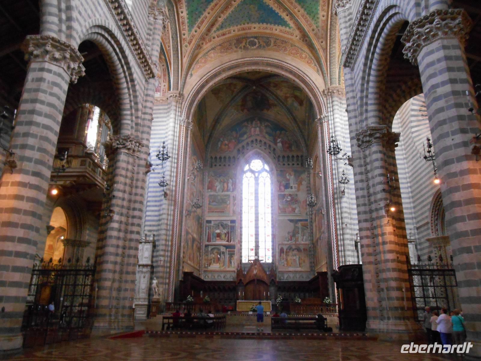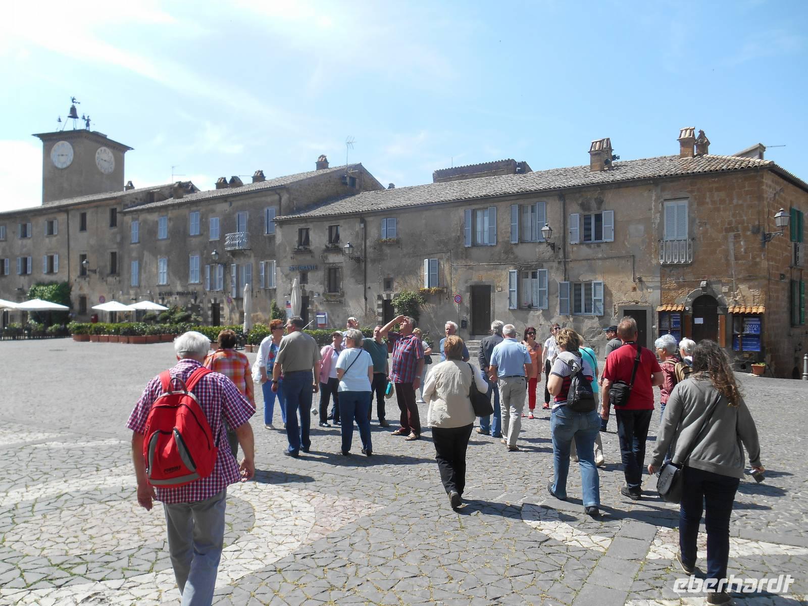 Nach einem für italienische Verhältnisse „reichhaltigen Frühstücksbuffet" mit Wurst und Käse - für einen Italiener völlig unnormal, wie man bereits am Morgen so viel essen kann - fuhren wir weiter in Richtung Süden. An Verona vorbei ging es nun durch die weitläufige Po-Ebene; natürlich überquerten wir dabei auch den Po, der der Ebene den Namen gab. Der Po ist mit 652 Kilometern der längste Fluss Italiens; er entspringt in den Kottischen Alpen und mündet südlich von Venedig ins Adriatische Meer. Wenig später erreichten wir Modena, hier endet nun übrigens nach insgesamt 333 Kilometern auch erst die Brennerautobahn! Am Südrand der Po-Ebene entlang bis Bologna, der Hauptstadt der Region Emilia-Romagna, führte uns unser Weg hinein in den tosco-emilianisch-romagnolischen Apennin. Der Scheitelpunkt der Autobahn liegt auf über 700 Metern. In den Apennin erreichten wir dann auch etwa 40 Kilometer nördlich von Florenz eine der bekanntesten Regionen Italiens - die Toskana! Florenz ließen wir leider nur links liegen, aber wir hatten heute schließlich auch noch einiges vor. Wir genossen die Fahrt durch die sanft gewellte Hügellandschaft der Toskana, fuhren vorbei an Arezzo und Montepulciano in die Region Umbrien hinein. Umbrien ist eine der wenigen Binnenregionen Italiens und wird oft auch als das „grüne Herz Italiens" bezeichnet. Unser Ziel war Orvieto, einzigartig auf einem 300 Meter hohen vulkanischen Tuff-Felsen gelegen! Gemeinsam fuhren wir mit einer Funicolare in die Altstadt von Orvieto hinauf und lauschten den interessanten Erklärungen unseres charmanten Stadtführers Marco. Die unter den Etruskern bedeutende Stadt nahm als Zufluchtsort von Papst Klemens VII. während der Plünderung Roms (Sacco di Roma, 1527) eine herausragende Stellung ein. Heute gehört Orvieto mit seinen herrlichen Baudenkmälern zu den interessantesten Städten Mittelitaliens. Wahrzeichen ist der Dom - mit seinem Bau wurde 1290 begonnen zur Aufbewahrung der Reliquien des Blutwunders von Bolsena. Die Errichtung des Bauwerks erforderte bis zur Vollendung im Jahr 1600 die Zusammenarbeit von ungefähr hundert Architekten, Bildhauern, Malern und Mosaiklegern. Die Fassade des Doms ist die kühnste und farbenprächtigste der italienischen Gotik. Mit vielen schönen Eindrücken im Gepäck erreichten wir am Abend die Hauptstadt Italiens - Rom! Gegen 19 Uhr kamen wir im Hotel „Oly", unserem Quartier für die nächsten drei Nächte, an. Hier begrüßten wir auch weitere 14 Fluggäste und somit war unsere Gruppe mit nunmehr insgesamt 39 Personen komplett. Unser Abendessen nahmen wir heute gemeinsam im Hotel ein.