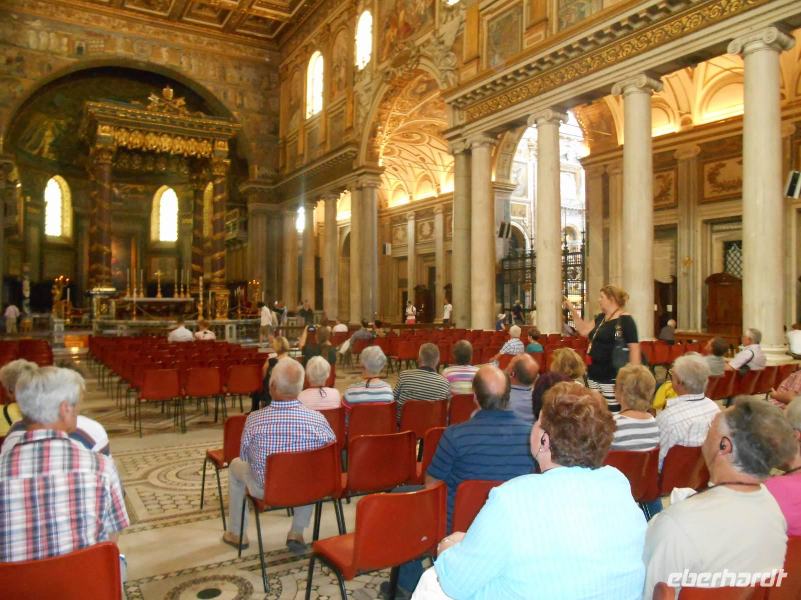 Das Frühstück im Hotel war zwar nicht so üppig wie zu Hause, aber das wussten wir bereits vorher und somit fuhren wir gut gelaunt mit unserem eigenen Reisebus in die Stadt hinein. Wir wurden für die nächsten Tage mit Audio-Geräten ausgestattet, damit wir die Führungen ganz intensiv erleben konnten. Unsere nette Stadtführerin Susanne erwartete uns bereits am Ostiense-Bahnhof und hier begann auch gleich der erste Teil unserer informativen Stadtrundfahrt - diese führte uns unter anderem vorbei an den Caracalla-Thermen, welche mehr als nur ein Badehaus waren, zum Circus Maximus. Es war das größte Stadium im antiken Rom. Fast ein ganzes Jahrtausend lang wurden dort beliebte Wagenrennen gehalten. An einem Punkt der Geschichte bot der Circus Platz für 250.000 Leute - ein Viertel von Roms Bevölkerung! Weiterhin sahen wir berühmte Plätze und Straßen der Stadt wie die Piazza Venezia mit dem Nationaldenkmal, die Via Nazionale und die elegante Via Veneto, bevor wir das Olympiastadion von 1960 etwas außerhalb der Innenstadt erreichten. Nachdem wir auch noch Sehenswürdigkeiten wie die Engelsburg und die Tiberinsel vom Bus aus sahen, stiegen wir in der Nähe des Kapitolshügels aus, um diesen zu Fuß zu erklimmen und von dort aus einen Blick auf das Forum Romanum zu werfen. Von den hiesigen Kaiserforen wurde nicht nur Rom, sondern das ganze Römische Reich regiert. Hier lag für fast 1.000 Jahre das Zentrum der Antike. Der Etruskerkönig Priscus hatte im 6. Jh. v. Chr. den Sumpf zwischen Kapitol, Palatin und Esquilin entwässert und als „Cloaca Maxima", die erste große Kläranlage der Antike, dem Tiber zugeführt. Das Forum Romanum, ursprünglich als Vesta-Heiligtum gedacht, entwickelte sich schließlich vom Viehmarkt zur politischen Arena. So langsam bekamen wir Hunger und unser Bus brachte uns daher in die Nähe der Kirche Santa Maria Maggiore, wo wir erst einmal eine Mittagspause einlegten. Jeder nutzte die Zeit ganz individuell, um ein Stück Pizza bzw. etwas Pasta in einer der zahlreichen kleinen Bars zu essen oder ganz einfach ein leckeres italienisches Eis zu schleckern! Gut gestärkt trafen wir uns wieder und besichtigten gemeinsam die Kirche Santa Maria Maggiore, eine der vier Patriarchalbasiliken Roms. Sie wurde unter Papst Sixtus III. errichtet, nachdem 431 das Konzil von Ephesus Maria, die Mutter Jesu, als Gottes Gebärerin verkündet hatte und dadurch die Marienverehrung aufgeblüht war. Anschließend führte uns unsere Rundfahrt mit dem Bus zu einer weiteren wichtigen Kirche Roms - der Lateransbasilika, welche eine der ältesten Kirchen Roms ist. Sie ist die eigentliche Kathedrale des Papstes und gilt als Mutter und Haupt aller Kirchen der Welt. Im Lauf der Jahrzehnte wurde die Basilika beschädigt und wieder gebaut, das jetzige Aussehen der Basilika San Giovanni im Lateran ist Borrominis Werk. Eine letzte kurze Fahrt mit unserem Bus führte uns zum Oppio-Hügel, wo wir der Kirche San Pietro in Vincoli (St. Peter in Ketten) einen Besuch abstatteten. Diese beherbergt nämlich eine große Berühmtheit - das Grabmal Julius II., welches von Michelangelo geschaffen wurde. Im Grabmal sind die Statuen von Rachel, Lea und Mose zu sehen. Vor allem die Moses-Statue gilt als wichtiges Werk Michelangelos. Mose ist dargestellt als Rückkehrer vom Berg Sinai mit den Gesetzestafeln, im Moment als er die Israeliten beim Tanz um das goldene Kalb entdeckt. Der Name der Kirche stammt übrigens - wie es zumindest heißt - von den Ketten, in denen Petrus bis zu seiner Befreiung in Jerusalem gefesselt war. Außerdem soll Petrus diese sie im Mamertinischen Kerker Roms getragen haben. Diese Ketten werden in einer Glasvitrine unter dem Altar der Kirche aufbewahrt. Nun war es aber genug mit Kirchen für heute - ein letzter Höhepunkt unserer Reise stand am Ende des heutigen Besichtigungsprogramms auf dem Programm - das Kolosseum! Kaiser Vespasian begann den Bau 72 n. Chr., sein Sohn Titus weihte die Arena nach nur achtjähriger Bauzeit mit hunderttägigen Festspielen ein. Unzählige Tiere und Gladiatoren wurden geopfert. Sehr lebendig sind allerdings noch die Legionäre, mit denen man hier gegen ein Entgelt für ein Foto posieren kann. Hier hatten wir zum Glück auch noch etwas Freizeit, um uns in den zahlreichen Straßencafés einen leckeren Cappuccino schmecken zu lassen - einfach himmlisch...! Andere Gäste, die noch etwas Energie übrig hatten, konnten jetzt noch das Kolosseum bzw. das Forum Romanum individuell besichtigen. Nach einem leckeren Abendessen in der Innenstadt kehrten wir gemeinsam gegen 21.30 Uhr zum Hotel zurück. Leider hatte der heutige Abend einen faden Beigeschmack, denn unser Reisebus wurde während unserem gemütlichen Abendessen aufgebrochen und unbekannte Täter entwendeten wahllos diverse Rucksäcke und Jacken - einfach unglaublich, aber wahr! Geschehen wie in einem schlechten Film, denn alles spielte sich bei Tageslicht ab! Glück im Unglück war die Tatsache, dass niemand Wertgegenstände im Bus zurück gelassen hatte.