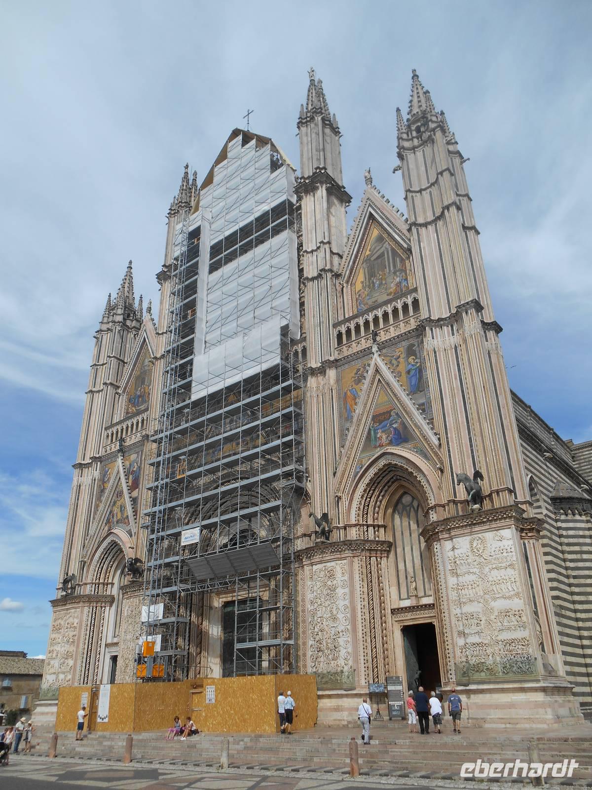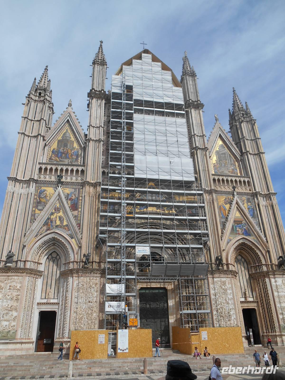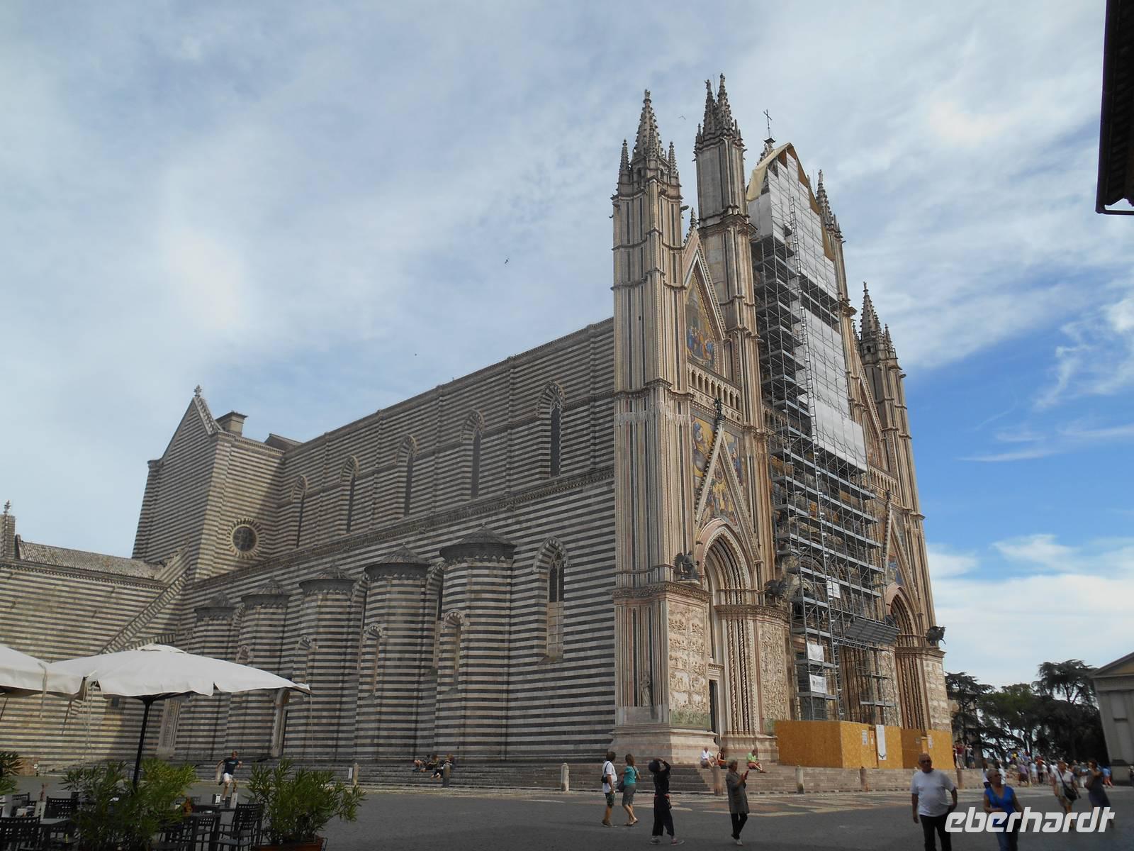 Nach einem für italienische Verhältnisse „reichhaltigen Frühstücksbuffet" mit Wurst und Käse - für einen Italiener völlig unnormal, wie man bereits am Morgen so viel essen kann- fuhren wir weiter in Richtung Süden. An Verona vorbei ging es nun durch die weitläufige Po-Ebene, natürlich überquerten wir dabei auch den Po, der der Ebene den Namen gab. Der Po ist mit 652 Kilometern der längste Fluss Italiens; er entspringt in den Kottischen Alpen und mündet südlich von Venedig ins Adriatische Meer. Wenig später erreichten wir Modena, hier endet nun übrigens nach insgesamt 333 Kilometern auch erst die Brennerautobahn! Am Südrand der Po-Ebene entlang bis Bologna, der Hauptstadt der Region Emilia-Romagna, führte uns unser Weg hinein in den tosco-emilianisch-romagnolischen Apennin. Der Scheitelpunkt der Autobahn liegt auf über 700 Metern. In den Apennin erreichten wir dann auch etwa 40 Kilometer nördlich von Florenz eine der bekanntesten Regionen Italiens - die Toskana! Florenz ließen wir leider nur links liegen, aber wir hatten heute schließlich auch noch einiges vor. Wir genossen die Fahrt durch die sanft gewellte Hügellandschaft der Toskana, fuhren vorbei an Arezzo und Montepulciano in die Region Umbrien hinein. Umbrien ist eine der wenigen Binnenregionen Italiens und wird oft auch als das „grüne Herz Italiens" bezeichnet. Unser Ziel war Orvieto, einzigartig auf einem 300 Meter hohen vulkanischen Tuff-Felsen gelegen! Gemeinsam fuhren wir mit einer Funicolare in die Altstadt von Orvieto hinauf und trafen dort unsere charmante Stadtführerin Isabella. Die unter den Etruskern bedeutende Stadt nahm als Zufluchtsort von Papst Klemens VII. während der Plünderung Roms (Sacco di Roma, 1527) eine herausragende Stellung ein. Heute gehört Orvieto mit seinen herrlichen Baudenkmälern zu den interessantesten Städten Mittelitaliens. Wahrzeichen ist der Dom - mit seinem Bau wurde 1290 begonnen zur Aufbewahrung der Reliquien des Blutwunders von Bolsena. Die Errichtung des Bauwerks erforderte bis zur Vollendung im Jahr 1600 die Zusammenarbeit von ungefähr hundert Architekten, Bildhauern, Malern und Mosaiklegern. Die Fassade des Doms ist die kühnste und farbenprächtigste der italienischen Gotik. Mit vielen schönen Eindrücken im Gepäck erreichten wir am Abend die Hauptstadt Italiens - Rom! Gegen 19 Uhr kamen wir im Hotel „Oly", unserem Quartier für die nächsten drei Nächte, an. Hier begrüßten wir auch weitere 17 Fluggäste und somit war unsere Gruppe mit nunmehr insgesamt 36 Personen komplett. Unser Abendessen nahmen wir heute gemeinsam im Hotel ein.