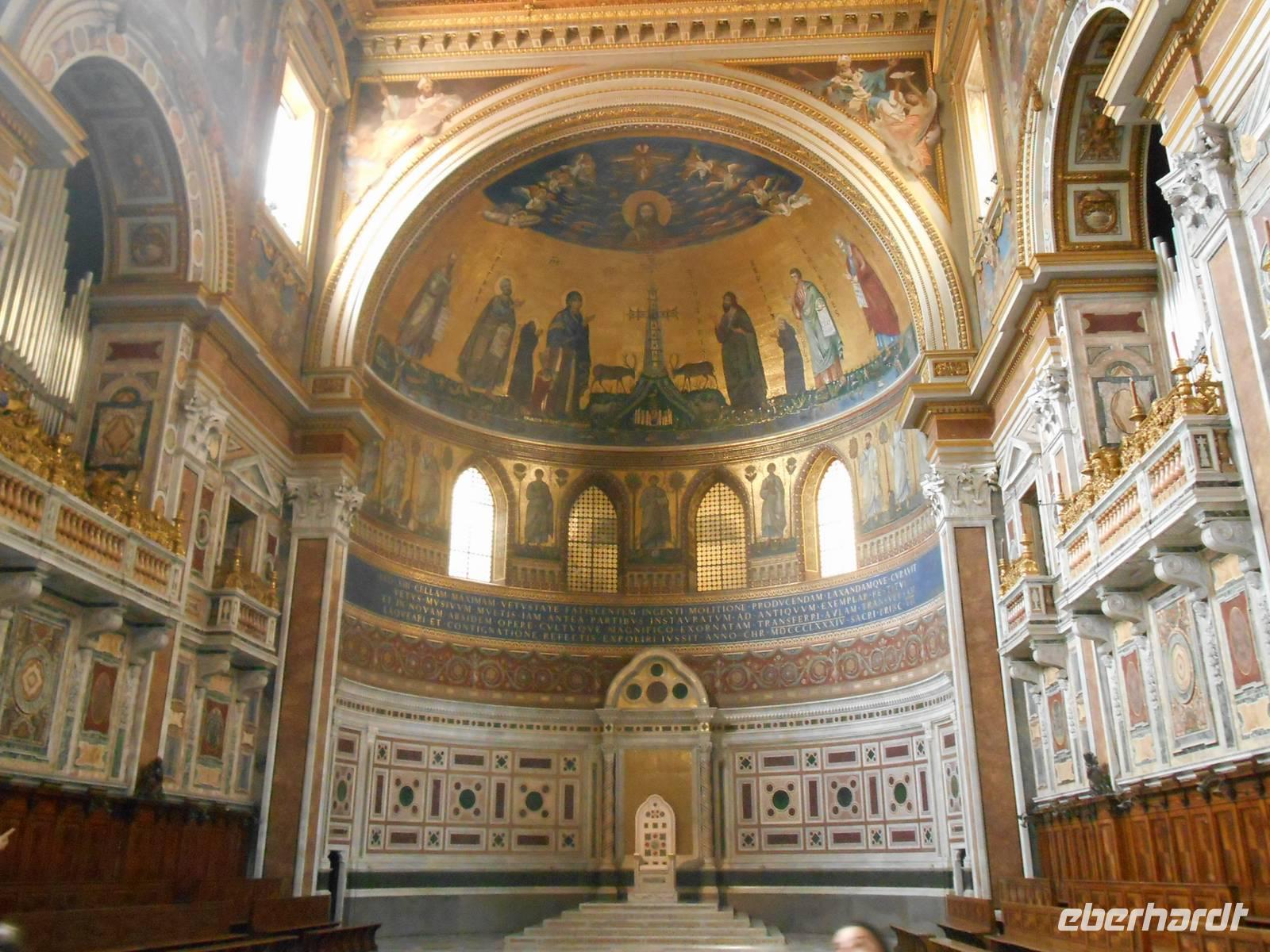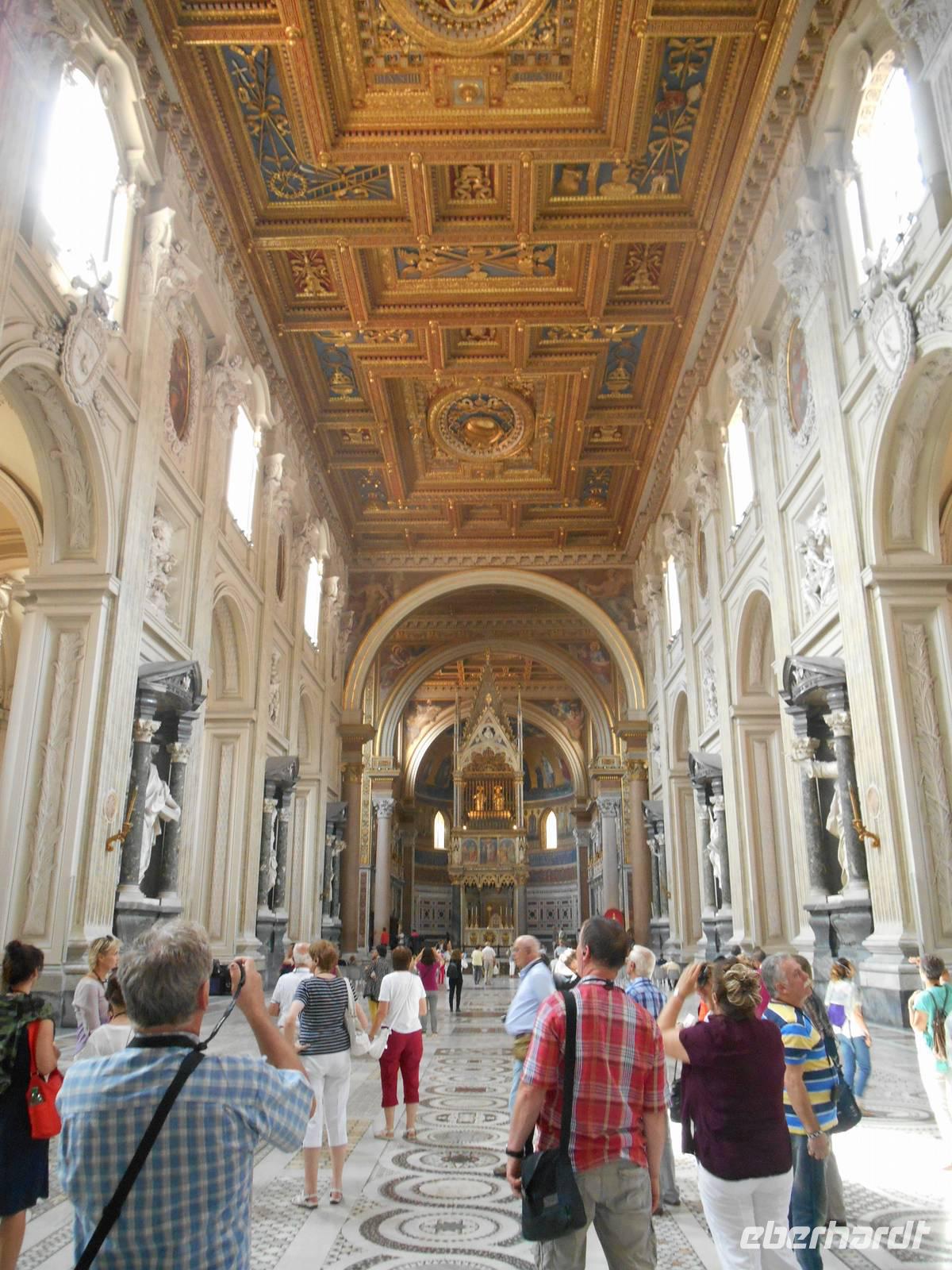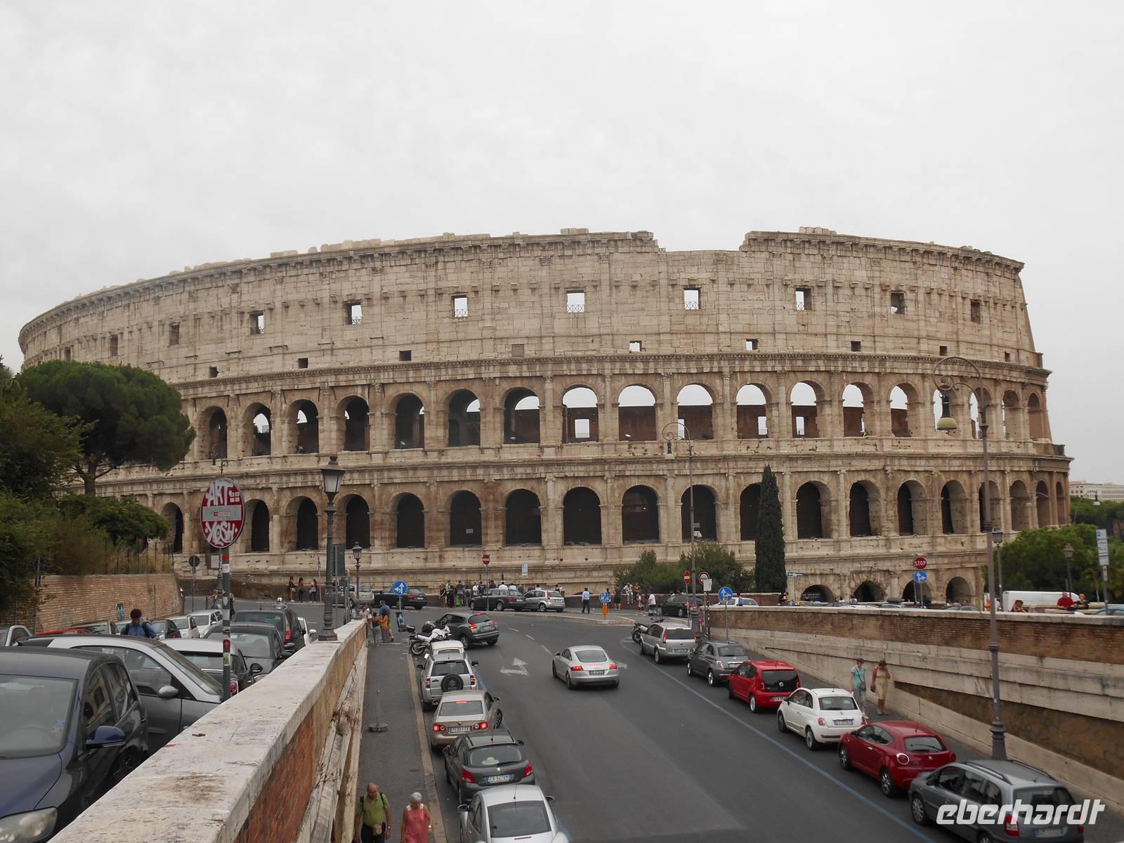 Das Frühstück im Hotel war zwar nicht so üppig wie zu Hause, aber das wussten wir bereits vorher und somit fuhren wir gut gelaunt mit unserem eigenen Reisebus in die Stadt hinein. Wir wurden für die nächsten Tage mit Audio-Geräten ausgestattet, damit wir die Führungen ganz intensiv erleben konnten. Unsere nette Stadtführerin Sylvia erwartete uns bereits am Ostiense-Bahnhof und hier begann auch gleich der erste Teil unserer informativen Stadtrundfahrt - diese führte uns unter anderem vorbei an den Caracalla-Thermen, welche mehr als nur ein Badehaus waren, zum Circus Maximus. Es war das größte Stadium im antiken Rom. Fast ein ganzes Jahrtausend lang wurden dort beliebte Wagenrennen gehalten. An einem Punkt der Geschichte bot der Circus Platz für 250.000 Leute - ein Viertel von Roms Bevölkerung! Weiterhin sahen wir berühmte Plätze und Straßen der Stadt wie die Piazza Venezia mit dem Nationaldenkmal, die Via Nazionale, die elegante Via Veneto, die Engelsburg und die Tiberinsel. Ab und an stiegen wir aus unserem Bus aus und unternahmen kleine Spaziergänge, so zum Beispiel in der Nähe des Kapitolshügels, um diesen zu Fuß zu erklimmen und von dort aus einen Blick auf das Forum Romanum zu werfen. Von den hiesigen Kaiserforen wurde nicht nur Rom, sondern das ganze Römische Reich regiert. Hier lag für fast 1.000 Jahre das Zentrum der Antike. Der Etruskerkönig Priscus hatte im 6. Jh. v. Chr. den Sumpf zwischen Kapitol, Palatin und Esquilin entwässert und als „Cloaca Maxima", die erste große Kläranlage der Antike, dem Tiber zugeführt. Das Forum Romanum, ursprünglich als Vesta-Heiligtum gedacht, entwickelte sich schließlich vom Viehmarkt zur politischen Arena. So langsam bekamen wir Hunger und unser Bus brachte uns daher in die Nähe der Kirche Santa Maria Maggiore, wo wir erst einmal eine Mittagspause einlegten. Jeder nutzte die Zeit ganz individuell, um ein Stück Pizza bzw. etwas Pasta in einer der zahlreichen kleinen Bars zu essen oder ganz einfach ein leckeres italienisches Eis zu schleckern! Gut gestärkt trafen wir uns wieder und besichtigten gemeinsam die Kirche Santa Maria Maggiore, eine der vier Patriarchalbasiliken Roms. Sie wurde unter Papst Sixtus III. errichtet, nachdem 431 das Konzil von Ephesus Maria, die Mutter Jesu, als Gottes Gebärerin verkündet hatte und dadurch die Marienverehrung aufgeblüht war. Anschließend führte uns unsere Rundfahrt mit dem Bus zu einer weiteren wichtigen Kirche Roms - der Lateransbasilika, welche eine der ältesten Kirchen Roms ist. Sie ist die eigentliche Kathedrale des Papstes und gilt als Mutter und Haupt aller Kirchen der Welt. Im Lauf der Jahrzehnte wurde die Basilika beschädigt und wieder gebaut, das jetzige Aussehen der Basilika San Giovanni im Lateran ist Borrominis Werk. Eine letzte Fahrt mit unserem Bus führte uns zum Oppio-Hügel, wo wir der Kirche San Pietro in Vincoli (St. Peter in Ketten) einen Besuch abstatteten. Diese beherbergt nämlich eine große Berühmtheit - das Grabmal Julius II., welches von Michelangelo geschaffen wurde. Im Grabmal sind die Statuen von Rachel, Lea und Mose zu sehen. Vor allem die Moses-Statue gilt als wichtiges Werk Michelangelos. Mose ist dargestellt als Rückkehrer vom Berg Sinai mit den Gesetzestafeln, im Moment als er die Israeliten beim Tanz um das goldene Kalb entdeckt. Der Name der Kirche stammt übrigens - wie es zumindest heißt - von den Ketten, in denen Petrus bis zu seiner Befreiung in Jerusalem gefesselt war. Außerdem soll Petrus diese sie im Mamertinischen Kerker Roms getragen haben. Diese Ketten werden in einer Glasvitrine unter dem Altar der Kirche aufbewahrt. Nun war es aber genug mit Kirchen für heute - ein letzter Höhepunkt stand am Ende des heutigen Besichtigungsprogramms auf dem Programm - das Kolosseum! Kaiser Vespasian begann den Bau 72 n. Chr., sein Sohn Titus weihte die Arena nach nur achtjähriger Bauzeit mit hunderttägigen Festspielen ein. Unzählige Tiere und Gladiatoren wurden geopfert. Sehr lebendig sind allerdings noch die Legionäre, mit denen man hier gegen ein Entgelt für ein Foto posieren kann. Hier hatten wir zum Glück auch noch etwas Freizeit, um uns in den zahlreichen Straßencafés einen leckeren Cappuccino schmecken zu lassen - einfach himmlisch...! Andere Gäste, die noch etwas Energie übrig hatten, konnten jetzt noch das Kolosseum bzw. das Forum Romanum individuell besichtigen. Nach einem leckeren Abendessen in der Innenstadt kehrten wir gemeinsam gegen 21 Uhr zum Hotel zurück. Ein zwar anstrengender, aber auch sehr eindrucksvoller Tag ging nun zu Ende.