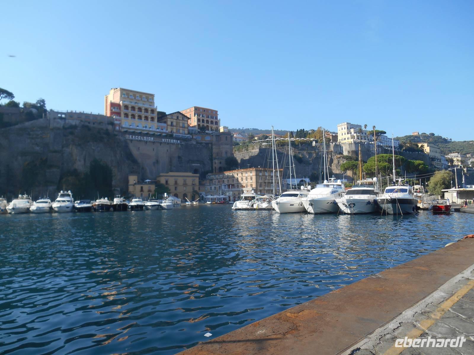 Da unser Bus nicht auf der Amalfiküsten-Straße fahren darf (er ist mit 13 Metern Länge nicht zugelassen), fuhren wir heute bei strahlendem Sonnenschein mit einem einheimischen Bus samt italienischen Buschauffeur Mario auf einer der schönsten Küstenstraßen Italiens - die Straße ist streckenweise in die fast senkrecht abbrechende Felsküste eingehauen. Auf beiden Seiten eines schmalen Tals steigen die Häuser den Berg hoch. Ihre Bauweise ist städtisch mit 3 - 5 Stockwerken, am Hang stehen sie übereinander gebaut. Einen längeren Aufenthalt legten wir in Amalfi ein, der Ort war im Mittelalter eine der reichen und mächtigen vier Seerepubliken (neben Pisa, Genua und Venedig). Die Amalfitaner wurden durch den Fernhandel mit dem Orient, Ägypten, Konstantinopel, Südfrankreich und Norditalien reich, hatten eigene Handelsniederlassungen und eigene Wohnviertel in vielen Städten des Orients und auch in Süditalien und Sizilien. Das Seebeben Ende des 14. Jahrhunderts, die korrupte Herrschaft des spanischen Vizekönigs in Neapel, die Türkengefahr und noch mehr die Verlagerung der Handelswege nach der Entdeckung Amerikas machten aus Amalfi ein armes, von der Außenwelt abgeschnittenes Nest hinter den Bergen. Erst die Entdeckung durch den Tourismus nach 1850 brachte Änderung. Wir hatten genügend Zeit, um den Ort ganz individuell zu entdecken. Besonders sehenswert ist übrigens der Dom; Fassade und Treppe sind nachempfunden, der Turm ist allerdings echt; es gibt eine schöne Bronzetür aus Konstantinopel, das Innere des Doms ist barockisiert. Am Nachmittag führte uns die Straße über Ravello nach Sorrent zurück, wo wir am Nachmittag noch Zeit für einen Bummel durch die malerischen Altstadtgassen hatten. Im Hotel zurück, entspannten sich einige Gäste am Hotel-Pool oder unternahmen einen kleinen Spaziergang hinunter zum Strand. Wir ließen diesen wunderschönen Tag mit einem Gläschen Limoncello ausklingen - gleichzeitig mussten wir uns an dieser Stelle auch von unseren lieben Fluggästen verabschieden!