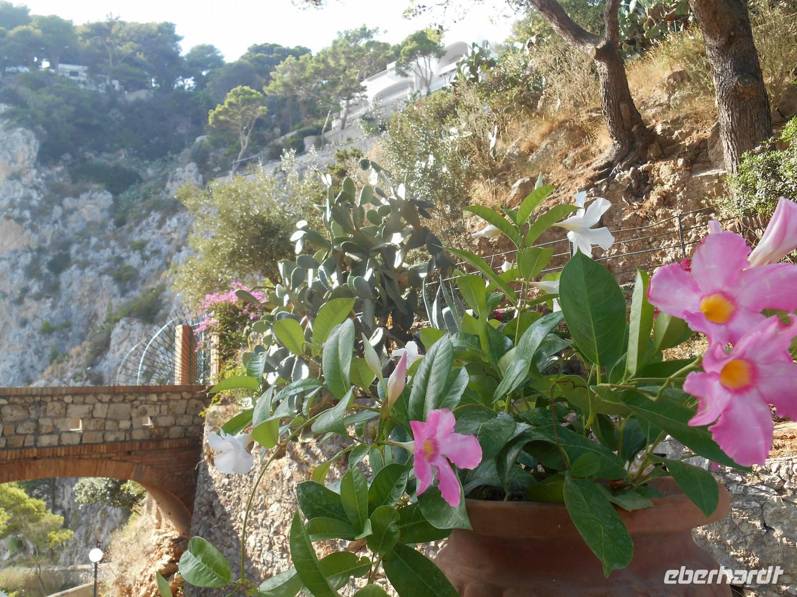 Ein weiterer Höhepunkt unserer Reise stand heute auf dem Programm. Wir fuhren mit 2 einheimischen Kleinbussen zum Hafen in Sorrent und nahmen von dort die Fähre zur Insel Capri. Die Überfahrt dauerte nur etwa 35 Minuten. Schon von weitem türmt sich die Insel wie unzugänglich auf. Zwei durch einen geschwungenen Sattel verbundenen Hochebenen, auf denen die Orte Capri und Anacapri liegen, ineinander geschachtelte Häuserkuben, überragt von gekalkten und bunt gekachelten Kuppeln. Für uns war klar - Capri ist der Kontrast zwischen intensivem Blau des Meers, den strahlend weißen Felswänden und dem tiefen Grün der Vegetation. Wir unternahmen eine Schifffahrt rund um die Insel - die Ausblicke faszinierten uns, schließlich hatten wir auch heute wieder tolles Wetter erwischt! Unser örtlicher Reiseleiter Antonio erzählte uns so manch nette Episode über die Insel. Bis auf einige Jahrhunderte, als die Präsenz von Piraten Vergnügungsreisen auf die Insel verbot, war Capri seit den Tagen des Augustus Ziel meist betuchter Reisender. Vielen gefiel die Kalkklippe im Meer so gut, dass sie zu Einheimischen wurden. Der erste „Prominente", der auf die Insel ausstieg, war der Nachfolger des vergöttlichten Augustus, Kaiser Tiberius, der die Insel zu einer riesigen Privatvilla umbaute; Mauerreste sind übrigens zum Teil noch deutlich zu sehen. Capri ist heute für das Mittelmeergebiet ein Botanischer Garten, auf so engem Raum lässt sich sonst nirgends die Vielfalt der mittelmeerischen Pflanzenwelt beobachten. Rund 1.000 Arten sind es, davon 150, die nur auf der Insel Capri vorkommen! Für die Geologen sei erwähnt, dass Capri nur die Fortsetzung der Amalfitanischen Halbinsel ist. Rund um die Insel sind über sechzig Höhlen und Grotten zu bewundern. Wir besuchten die beiden Inselorte, Capri und Anacapri - diese beiden Orte leben solange man weiß in Fehde; sie hatten sich voneinander isoliert, erst die im letzten Jahrhundert geschaffene Straßenverbindung brachte eine Veränderung. Wir fuhren in Minibussen auf den engen Straßen der Insel - sehr abenteuerlich! Am Abend fuhren wir dann mit der Fähre zurück auf das Festland nach Sorrent.