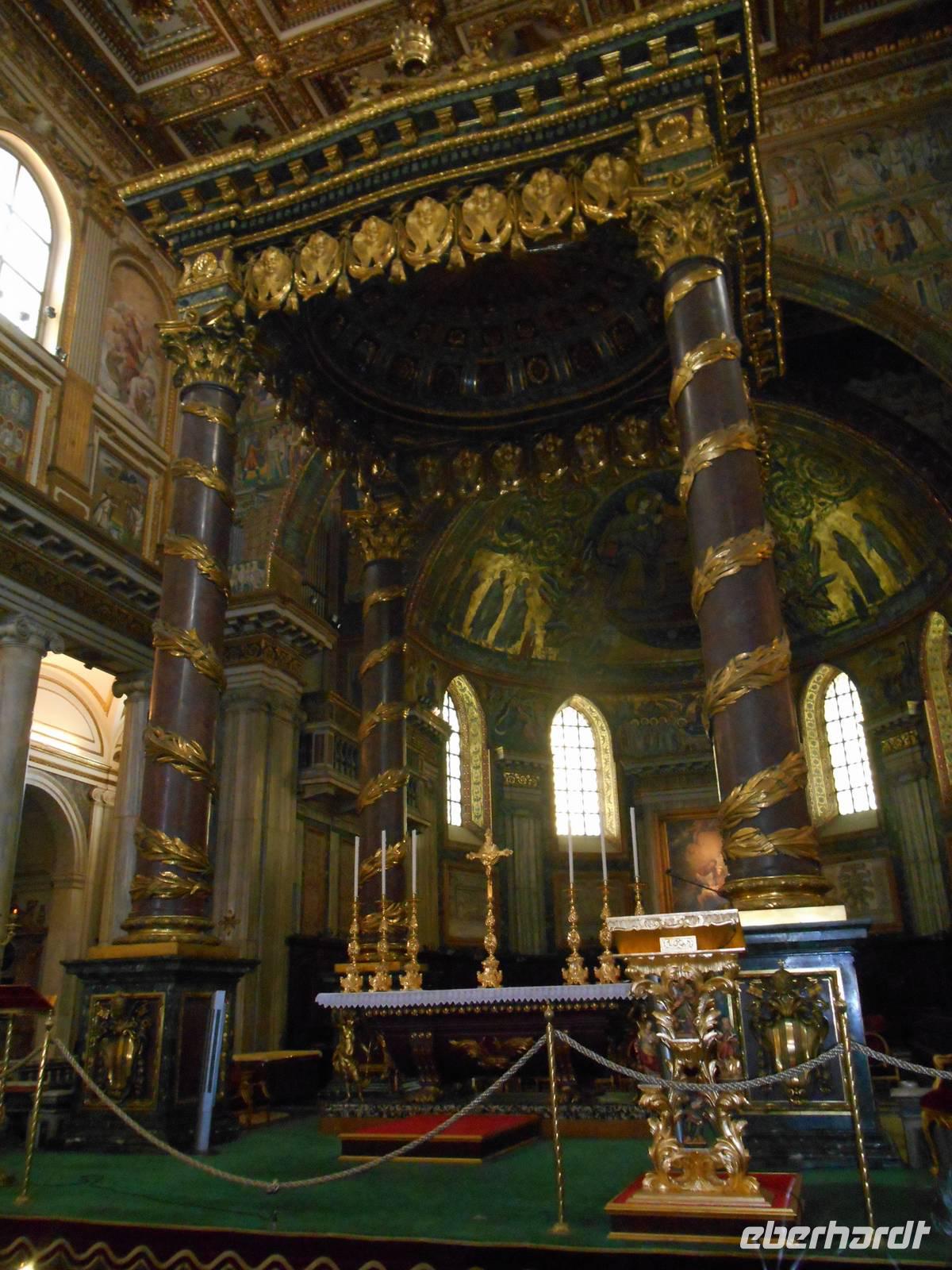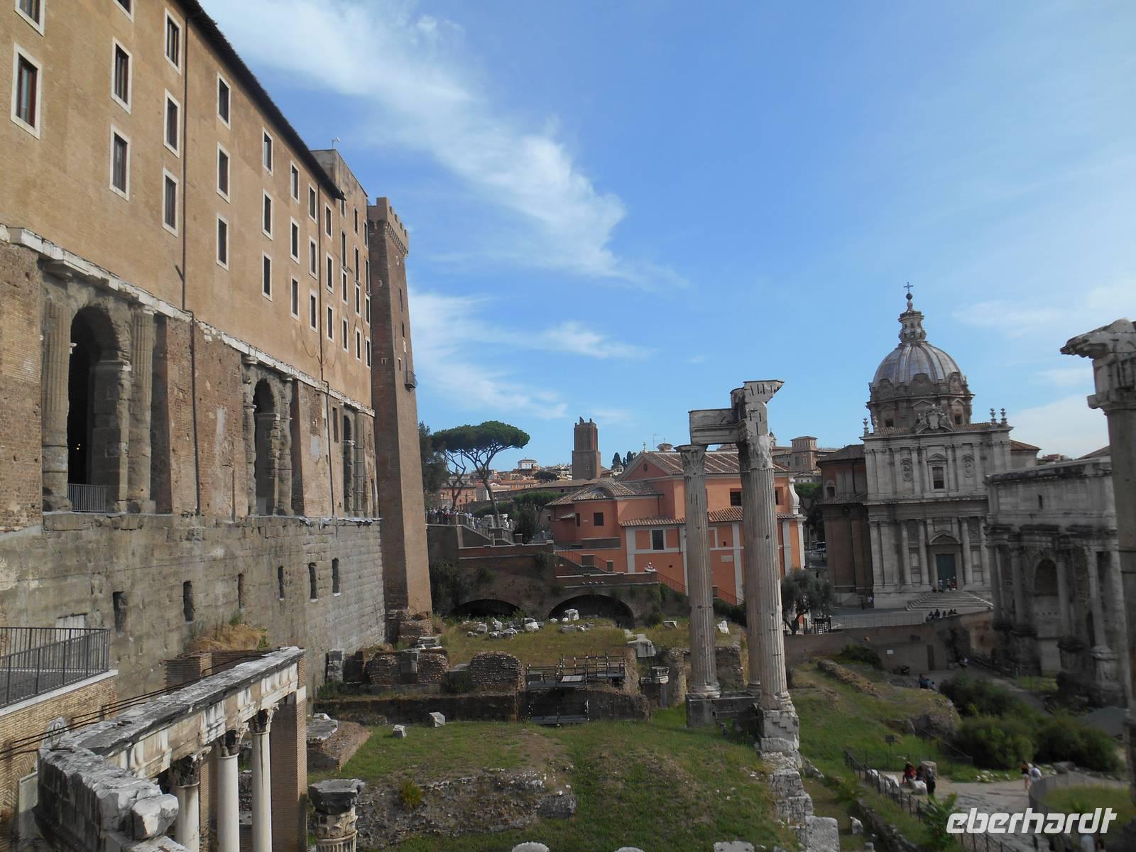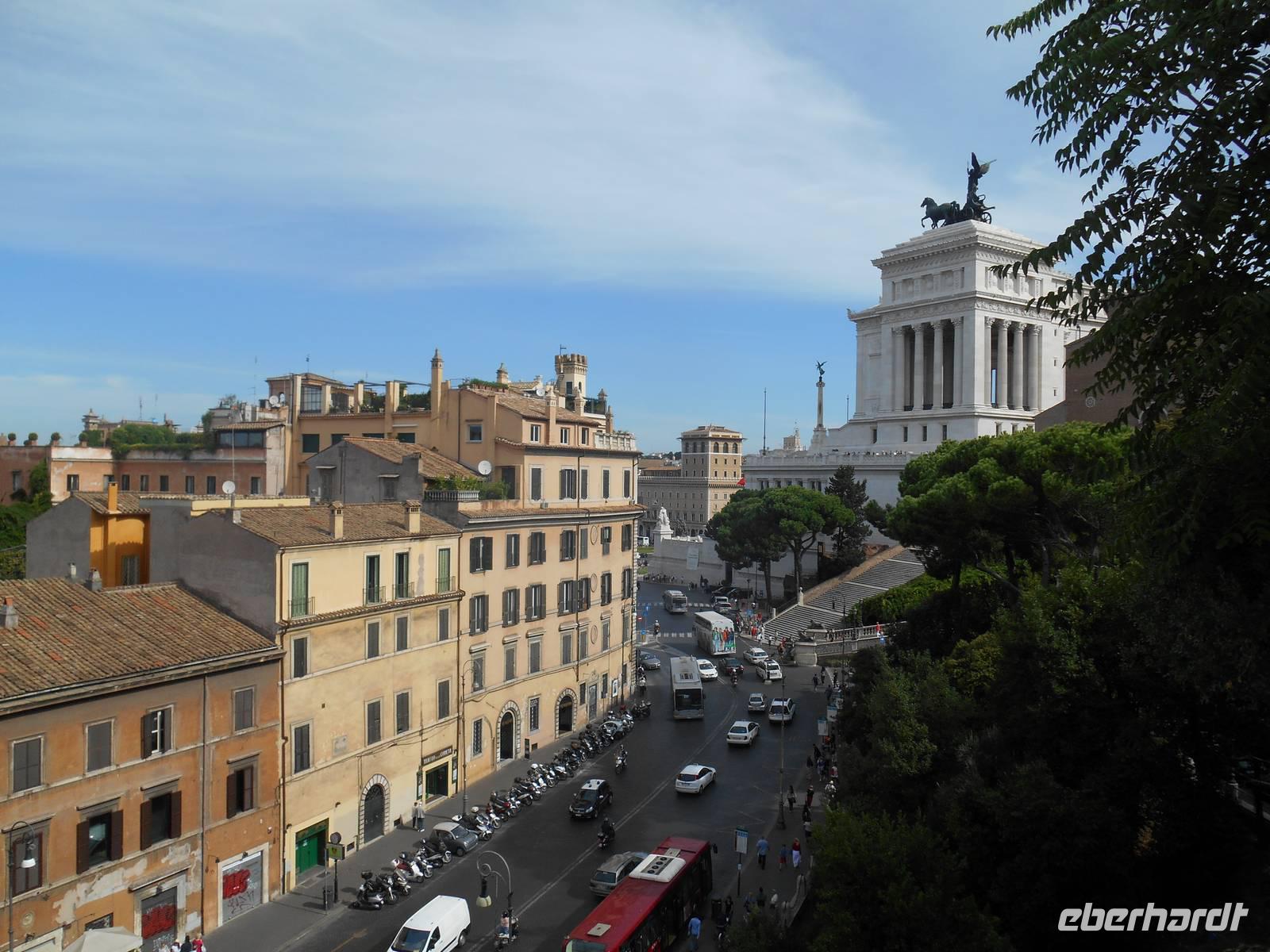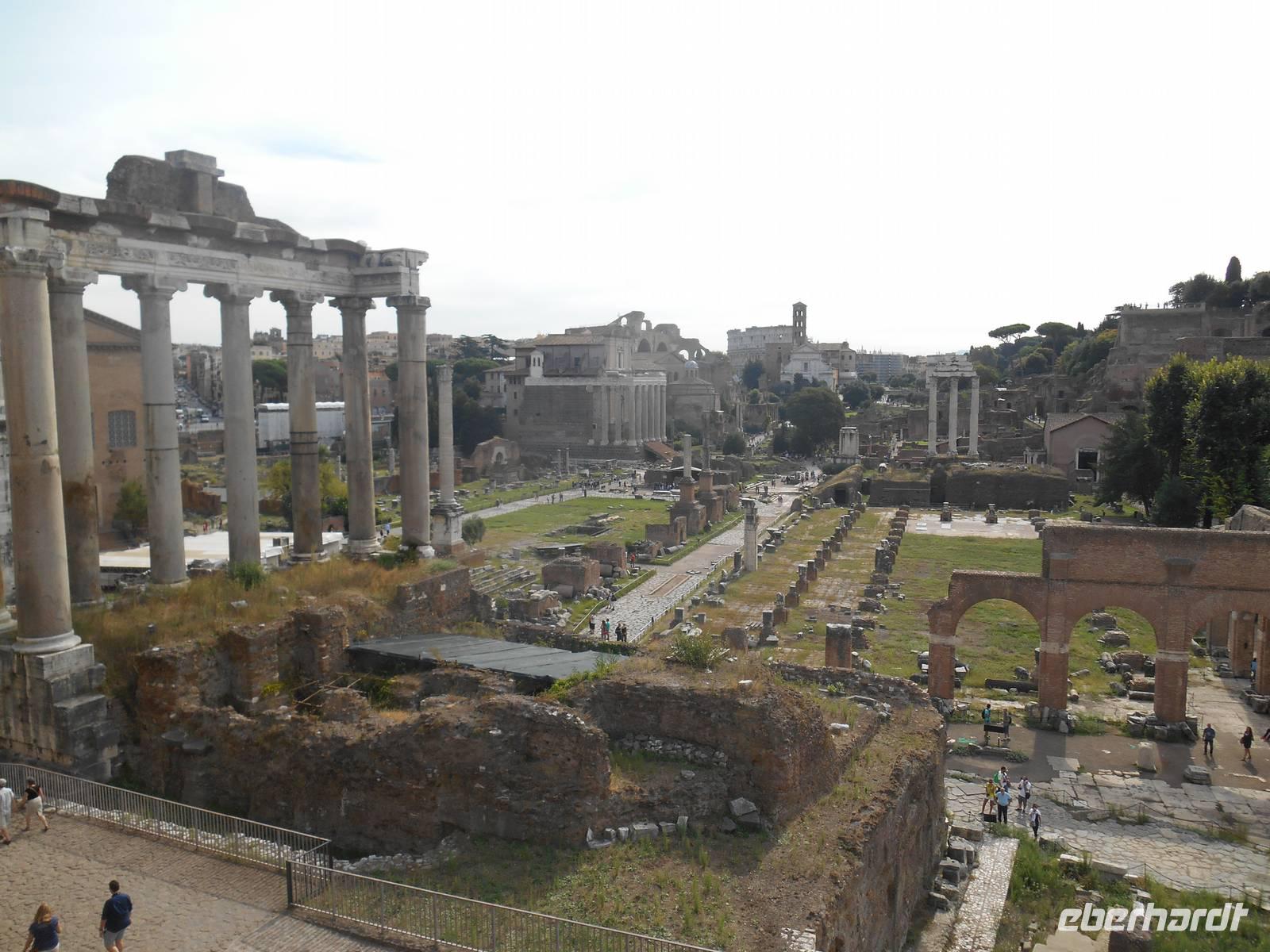 Das Frühstück im Hotel war zwar nicht so üppig wie zu Hause, aber das wussten wir bereits vorher und somit fuhren wir gut gelaunt mit unserem eigenen Reisebus in die Stadt hinein. Wir wurden für die nächsten Tage mit Audio-Geräten ausgestattet, damit wir die Führungen ganz intensiv erleben konnten. Unsere nette Stadtführerin Sylvia erwartete uns bereits am Ostiense-Bahnhof und hier begann auch gleich der erste Teil unserer informativen Stadtrundfahrt - diese führte uns unter anderem vorbei an den Caracalla-Thermen, welche mehr als nur ein Badehaus waren, zum Circus Maximus. Es war das größte Stadium im antiken Rom. Fast ein ganzes Jahrtausend lang wurden dort beliebte Wagenrennen gehalten. An einem Punkt der Geschichte bot der Circus Platz für 250.000 Leute - ein Viertel von Roms Bevölkerung! Weiterhin sahen wir berühmte Plätze und Straßen der Stadt wie die Piazza Venezia mit dem Nationaldenkmal, die Via Nazionale, die elegante Via Veneto, die Engelsburg und die Tiberinsel. Ab und an stiegen wir aus unserem Bus aus und unternahmen kleine Spaziergänge, so zum Beispiel in der Nähe des Kapitolshügels, um diesen zu Fuß zu erklimmen und von dort aus einen Blick auf das Forum Romanum zu werfen. Von den hiesigen Kaiserforen wurde nicht nur Rom, sondern das ganze Römische Reich regiert. Hier lag für fast 1.000 Jahre das Zentrum der Antike. Der Etruskerkönig Priscus hatte im 6. Jh. v. Chr. den Sumpf zwischen Kapitol, Palatin und Esquilin entwässert und als „Cloaca Maxima", die erste große Kläranlage der Antike, dem Tiber zugeführt. Das Forum Romanum, ursprünglich als Vesta-Heiligtum gedacht, entwickelte sich schließlich vom Viehmarkt zur politischen Arena. So langsam bekamen wir Hunger und unser Bus brachte uns daher in die Nähe der Kirche Santa Maria Maggiore, wo wir erst einmal eine Mittagspause einlegten. Jeder nutzte die Zeit ganz individuell, um ein Stück Pizza bzw. etwas Pasta in einer der zahlreichen kleinen Bars zu essen oder ganz einfach ein leckeres italienisches Eis zu schleckern! Gut gestärkt trafen wir uns wieder und besichtigten gemeinsam die Kirche Santa Maria Maggiore, eine der vier Patriarchalbasiliken Roms. Sie wurde unter Papst Sixtus III. errichtet, nachdem 431 das Konzil von Ephesus Maria, die Mutter Jesu, als Gottes Gebärerin verkündet hatte und dadurch die Marienverehrung aufgeblüht war. Anschließend führte uns unsere Rundfahrt mit dem Bus zu einer weiteren wichtigen Kirche Roms - der Lateransbasilika, welche eine der ältesten Kirchen Roms ist. Sie ist die eigentliche Kathedrale des Papstes und gilt als Mutter und Haupt aller Kirchen der Welt. Im Lauf der Jahrzehnte wurde die Basilika beschädigt und wieder gebaut, das jetzige Aussehen der Basilika San Giovanni im Lateran ist Borrominis Werk. Eine letzte Fahrt mit unserem Bus führte uns zum Oppio-Hügel, wo wir der Kirche San Pietro in Vincoli (St. Peter in Ketten) einen Besuch abstatteten. Diese beherbergt nämlich eine große Berühmtheit - das Grabmal Julius II., welches von Michelangelo geschaffen wurde. Im Grabmal sind die Statuen von Rachel, Lea und Mose zu sehen. Vor allem die Moses-Statue gilt als wichtiges Werk Michelangelos. Mose ist dargestellt als Rückkehrer vom Berg Sinai mit den Gesetzestafeln, im Moment als er die Israeliten beim Tanz um das goldene Kalb entdeckt. Der Name der Kirche stammt übrigens - wie es zumindest heißt - von den Ketten, in denen Petrus bis zu seiner Befreiung in Jerusalem gefesselt war. Außerdem soll Petrus diese sie im Mamertinischen Kerker Roms getragen haben. Diese Ketten werden in einer Glasvitrine unter dem Altar der Kirche aufbewahrt. Nun war es aber genug mit Kirchen für heute - ein letzter Höhepunkt stand am Ende des heutigen Besichtigungsprogramms auf dem Programm - das Kolosseum! Kaiser Vespasian begann den Bau 72 n. Chr., sein Sohn Titus weihte die Arena nach nur achtjähriger Bauzeit mit hunderttägigen Festspielen ein. Unzählige Tiere und Gladiatoren wurden geopfert. Sehr lebendig sind allerdings noch die Legionäre, mit denen man hier gegen ein Entgelt für ein Foto posieren kann. Hier hatten wir zum Glück auch noch etwas Freizeit, um uns in den zahlreichen Straßencafés einen leckeren Cappuccino schmecken zu lassen - einfach himmlisch...! Andere Gäste, die noch etwas Energie übrig hatten, konnten jetzt noch das Kolosseum bzw. das Forum Romanum individuell besichtigen. Nach einem leckeren Abendessen in der Innenstadt kehrten wir gemeinsam gegen 21 Uhr zum Hotel zurück. Ein zwar anstrengender, aber auch sehr eindrucksvoller Tag ging nun zu Ende.