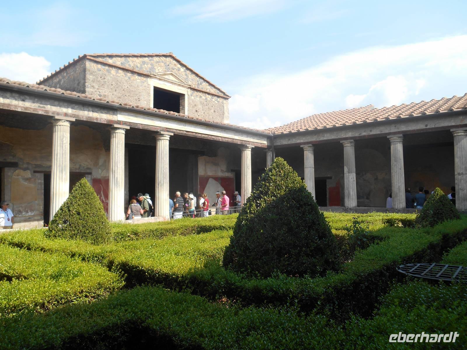 Heute hieß es „Arrividerci Roma" - wir fuhren weiter in den Süden und zwar in Richtung Neapel. Schon von weitem sahen wir, dass der heutige Vesuv eigentlich zwei Gipfel hat, nämliche den Monte Somma, den Rest des alten Vesuv, der beim Ausbruch 79 n. Chr. regelrecht explodiert ist und den 1.280 Meter hohen eigentlichen Gipfel des Vesuvs. Der Bus brachte uns bis auf knapp 1.000 m hinauf, die restlichen etwa 300 Höhenmeter mussten wir zu Fuß zurücklegen. Das erste Drittel war ziemlich steil, dann ging es gemächlicher voran, nach reichlich einer halben Stunde standen wir am Kraterrand. Der Berg scheint völlig zu ruhen, wir sahen nur ein paar Dampfquellen. Umso erstaunlicher ist für uns die Tatsache, dass dieser Vulkan ein Pulverfass ist - der letzte Ausbruch war 1944, das ist lange her. Experten sagen, dass ein gewaltiger Gesteinspfropfen den Krater versperrt und die vulkanischen Kräfte sich somit aufstauen, je länger der Berg ruhig bleibt, desto heftiger wird eines Tages die Eruption sein. Etwa 700.000 Neapolitaner leben weniger als zehn Kilometer vom Krater entfernt, jedem ist die Gefahr bewusst, man verdrängt sie allerdings permanent. Die vulkanische Erde ist sehr fruchtbar und sichert den Bewohnern gute Einnahmen in der Landwirtschaft. Am frühen Nachmittag erreichten wir das nahe gelegene Pompei, wo wir unsere kompetente Reiseführerin Antonella trafen. Die archäologische Zone von Pompei ist heute ein riesiges Freilichtmuseum römischer Lebensweise. Pompei ist eine Stadt, die innerhalb von Stunden von ihren Bewohnern verlassen wurde und dann bis zu ihrer Ausgrabung keine Veränderung mehr erfuhr. Mit der Katastrophe des Jahres 79 hatte niemand gerechnet. Das schwere Erdbeben 16 Jahre zuvor signalisierte nach heutigen Erkenntnissen wahrscheinlich das Ende einer langen Ruhephase des Vulkans, denn auch in späterer Zeit waren Ausbruchsperioden fast immer von Erdbeben begleitet oder vorangekündigt. Das ausgegrabene Pompei zeigt deutliche Spuren des Erdbebens und überall in der Stadt weisen Mörtelhaufen und Baumaterial auf den noch andauernden Wiederaufbau hin. Es ist für uns heute unvorstellbar, aber man muss sich vorstellen, dass im Jahre 79 der obere Teil des Vesuvs unter dem Druck der aufsteigenden Gase regelrecht explodierte. Über dem Berg stand eine riesige, wie eine Pinie geformte Aschenwolke, die dann auf die Umgebung, besonders auf Pompei nieder regnete. Der Untergang Pompeis erfolgte keineswegs innerhalb von Minuten, sondern dauerte Stunden und Tage, so dass mit Sicherheit der größte Teil der Einwohner zumindest das nackte Leben retten konnte. Schließlich erstickten hochgiftige Gase und die sich meterhoch auftürmenden heißen Vulkanaschen alles Leben. Was jetzt noch an lebenden Wesen zurückgeblieben war, wurde von der Asche wie von einer Gussform eingehüllt, Fleisch und Knochen verbrannten und wurden von ätzenden, scharfen Mineralsalzen zerfressen - ein Hohlraum entstand. Während der Ausgrabungen wurden viele dieser Hohlräume mit Gips ausgegossen und wir haben heute ein makaber-plastisches Bild des Todeskampfes der Zurückgebliebenen: Hunde, Gefangene, Zögernde, die noch möglich viel von ihrem Besitz retten wollten, wahrscheinlich auch Plünderer. Pompei ist einzigartig - wir gingen durch Straßen, an Geschäften, Restaurants und Bädern vorbei, bis wir schließlich das Freudenhaus erreichten; hier war leider zu viel Andrang und somit gingen wir nicht hinein - ja, es ist nicht umsonst das älteste Gewerbe der Welt und selbst bei den Römern gab es bereits diese Etablissements. Nach dieser interessanten Führung in Pompei brachen wir nach Piano di Sorrento auf, wo wir bereits im Hotel „Albatros" erwartet wurden. Die Anfahrt zum Hotel wurde leider durch die vielen parkenden Autos in den engen Straßen erschwert! Nachdem alle Gäste ihre Zimmer bezogen hatten, brachen wir ins Hinterland von Sorrent auf, wo wir unser heutiges Abendessen in einem Landgut, dem Agriturismo „La Sorgent", einnahmen. Die Fahrt dorthin mit einem 13-Meter langen Reisebus gestaltete sich recht abenteuerlich, aber immerhin kamen wir nach etwa 40 Minuten Fahrtzeit an. Das typische Landgut ist seit 3 Generationen in Familienbesitz und hat eine Fläche von 2 Hektar; der Garten ist auf Terrassen verteilt und liegt an den Hügeln von Sorrent. Der Anbau besteht aus Zitronen, Orangen, Mandarinen, Oliven, Trauben und Walnüssen. Das Unternehmen und der Bauernhof mit Kühen erzeugen außerdem besten Mozzarella-Käse. Die Hausherrin Maria empfing uns herzlich und zeigte uns einige Dinge zur Herstellung ihrer in Handarbeit gefertigten Produkte. Schließlich konnen wir die verschiedenen Produkte des Bauernhofes verkostern - übrigens sehr lecker...! Die hausgemachte Produkten Produkte umfassen insbesondere gewürzten Ricotta-Käse, im Holzofen gebackenes Bauernbrot, Salami, Bauchspeck, Tomaten, eingelegte Auberginen in Olivenöl, Limoncello (Zitronenlikör), Zitronencreme, Zitronen- und Orangenmarmelade und Olivenöl. Satt und zufrieden fuhren wir gegen 22 Uhr zum Hotel zurück und ein wiederum langer und erlebnisreicher Tag ging hiermit zu Ende.