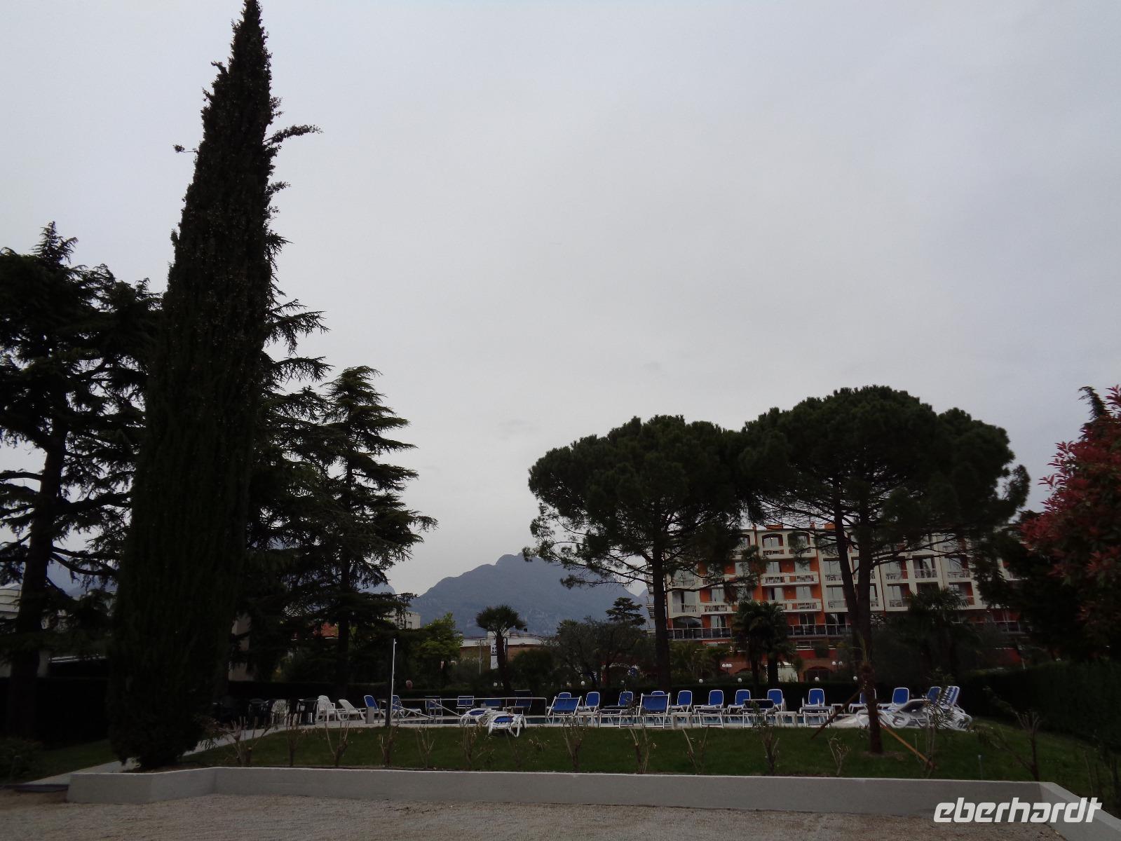 Nachdem unsere Reisegruppe mit 31 Gästen vorerst komplett war, führte uns die Fahrt vorbei an Bayreuth, Nürnberg, Ingolstadt und München in Richtung Inntal. Gegen Mittag passierten wir bereits die Innbrücke zwischen Kiefersfelden und Kufstein und damit auch die deutsch-österreichische Grenze. Durch das wunderschöne Inntal und vorbei an Innsbruck ging es nun hinauf zum Brennerpass, den mit 1.375 Metern niedrigsten Übergang über die Hauptkette der Alpen und seit 1919 (Frieden von St. Germain) die österreichisch-italienische Grenze. Jetzt fuhren wir durch das Südtiroler Eisacktal, vorbei an zahlreichen Burgen hinunter nach Bozen. Weiter in Richtung Süden und durch das Etschtal, teilweise auch parallel zur Südtiroler Weinstraße kamen wir zur sogenannten „Salurner Klause" - dies ist eine Engstelle des Etschtales und gleichzeitig die Grenze zwischen Südtirol und dem Trentino; des Weiteren auch eine Sprachgrenze. In Südtirol ist Deutsch neben dem Italienischen und Ladinischen eine Amtssprache, im Trentino hingegen wir nur Italienisch gesprochen. Nun fuhren wir noch an Trient vorbei und letztendlich verließen wir bei Rovereto die Brennerautobahn, wir wollten ja erst einmal zum Gardasee zur Zwischenübernachtung! Gegen 18 Uhr kamen wir in unserem Hotel „Gardesana" in Riva del Garda an. Dieses Hotel liegt nur etwa 50 Meter vom Ufer des Gardasees entfernt unweit des Zentrums von Riva del Garda. Das verlockte natürlich so manchen zu einem kleinen abendlichen Spaziergang. Zum Abendessen ließen wir uns ein leckeres 3-Gang-Menü schmecken und natürlich durfte hier die typische italienische Pasta nicht fehlen! Dazu ein Glas Hauswein und müde fielen wir alle ins Bett.