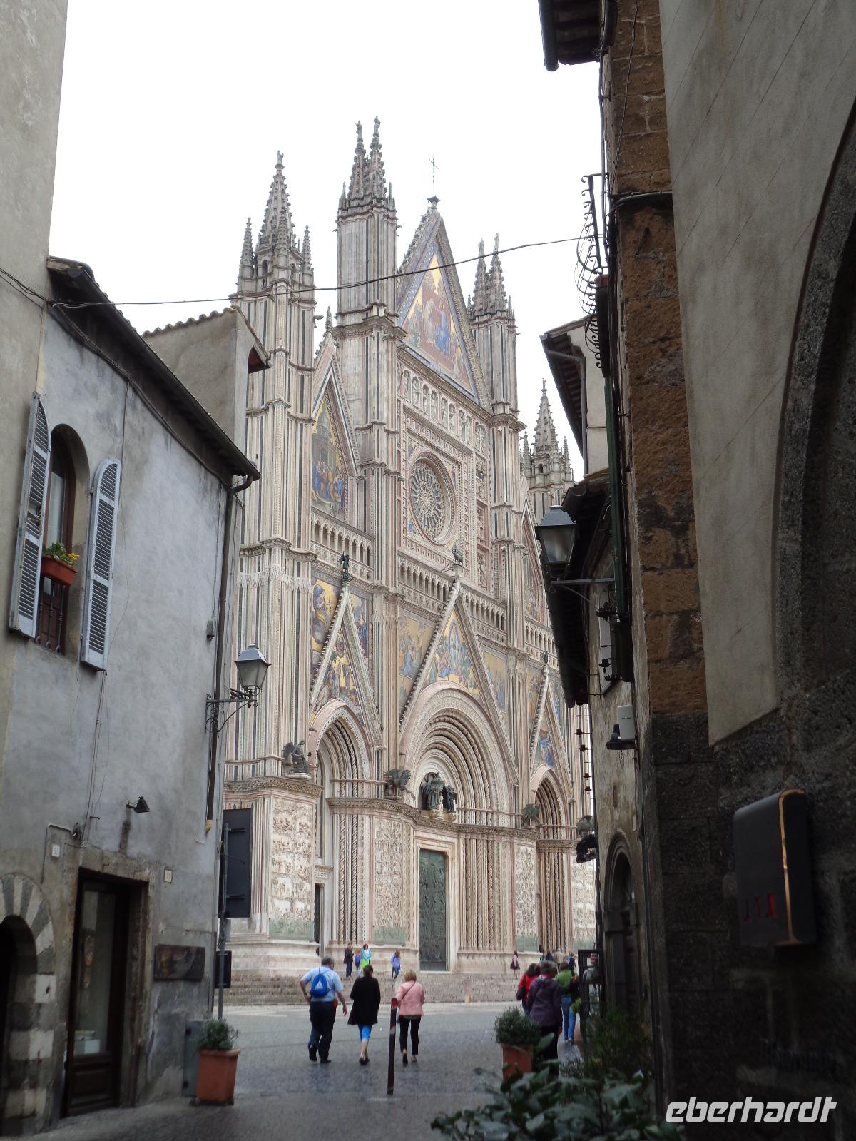 Nach einem für italienische Verhältnisse „reichhaltigen Frühstücksbuffet" mit Wurst und Käse - für einen Italiener völlig unnormal, wie man bereits am Morgen so viel essen kann- fuhren wir weiter in Richtung Süden. An Verona vorbei ging es nun durch die weitläufige Po-Ebene, natürlich überquerten wir dabei auch den Po, der der Ebene den Namen gab. Der Po ist mit 652 Kilometern der längste Fluss Italiens; er entspringt in den Kottischen Alpen und mündet südlich von Venedig ins Adriatische Meer. Wenig später erreichten wir Modena, hier endet nun übrigens nach insgesamt 333 Kilometern auch erst die Brennerautobahn! Am Südrand der Po-Ebene entlang bis Bologna, der Hauptstadt der Region Emilia-Romagna, führte uns unser Weg hinein in den tosco-emilianisch-romagnolischen Apennin. Der Scheitelpunkt der Autobahn liegt auf über 700 Metern. In den Apennin erreichten wir dann auch etwa 40 Kilometer nördlich von Florenz eine der bekanntesten Regionen Italiens - die Toskana! Florenz ließen wir leider nur links liegen, aber wir hatten heute schließlich auch noch einiges vor. Wir genossen die Fahrt durch die sanft gewellte Hügellandschaft der Toskana, fuhren vorbei an Arezzo und Montepulciano in die Region Umbrien hinein. Umbrien ist eine der wenigen Binnenregionen Italiens und wird oft auch als das „grüne Herz Italiens" bezeichnet. Unser Ziel war Orvieto, einzigartig auf einem 300 Meter hohen vulkanischen Tuff-Felsen gelegen! Gemeinsam mit unserem charmanten Stadtführer Marco fuhren wir mit einer Funicolare in die Altstadt von Orvieto hinauf. Die unter den Etruskern bedeutende Stadt nahm als Zufluchtsort von Papst Klemens VII. während der Plünderung Roms (Sacco di Roma, 1527) eine herausragende Stellung ein. Heute gehört Orvieto mit seinen herrlichen Baudenkmälern zu den interessantesten Städten Mittelitaliens. Wahrzeichen ist der Dom - mit seinem Bau wurde 1290 begonnen zur Aufbewahrung der Reliquien des Blutwunders von Bolsena. Die Errichtung des Bauwerks erforderte bis zur Vollendung im Jahr 1600 die Zusammenarbeit von ungefähr hundert Architekten, Bildhauern, Malern und Mosaiklegern. Die Fassade des Doms ist die kühnste und farbenprächtigste der italienischen Gotik. Mit vielen schönen Eindrücken im Gepäck erreichten wir am Abend die Hauptstadt Italiens - Rom! Gegen 19 Uhr kamen wir im NH Hotel „Midas", unserem Quartier für die nächsten drei Nächte, an. Hier begrüßten wir auch weitere 4 Fluggäste und somit war unsere Gruppe mit nunmehr insgesamt 35 Personen komplett. Unser Abendessen nahmen wir heute gemeinsam im Hotel ein.