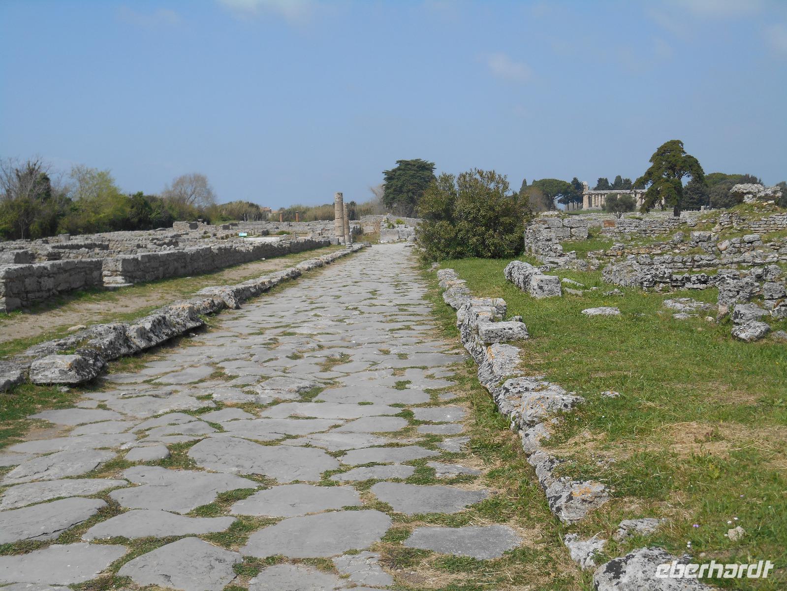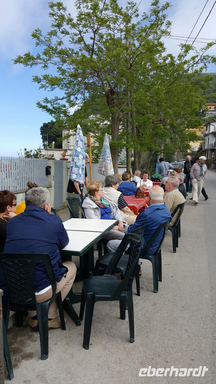 Heute fuhren wir in Richtung Süden - es ging an Salerno vorbei nach Paestum! Der Wettergott war auch wieder voll auf unserer Seite - blauer Himmel und Sonnenschein...! Unseren örtlichen Reiseleiter Angelo trafen wir gut gelaunt vor Ort. Zuerst ging es zur Büffel-Farm „Vannulo" unweit von Paestum. Hier konnten wir zuschauen, wie echter Büffel-Mozzarrella hergestellt wird bzw. erhielten wissenswerte Informationen zu diesem Prozess. Selbst eine Verkostung durfte nicht fehlen! Die weißen in der Molke schwimmenden Frischkäse sind hier in der Ebene von Paestum ganz echter Mozzarella aus Büffelmilch, egal ob pflaumengroße „Bocconcini" oder kiloschwer zu Zöpfen als „treccia" verflochten. Büffel-Mozzarella ist fetter und saftiger, hat anders als das Konkurrenzprodukt aus Kuhmilch eine zarte Außenhaut mit etwas Biss. Kenner nennen das dann „croccante". Geformt wird von Hand mit einem Griff wie Gurgelumdrehen (ital. „mozzare"), daher der Name. Mittlerweile wird hier sogar Schokolade aus Büffelmilch produziert, auch diese neue Spezialität des Hauses durften wir natürlich probieren - einfach köstlich! Genug Kulinarisches für heute, der heutige Hauptanziehungspunkt war Paestum - und dort die drei nahezu komplett erhaltenen griechischen Tempel nahe dem Meer. Das antike Paestum war eine der größten Griechen-Städte Süditaliens, wichtige Hafenstadt im Handel mit Etrurien und damals ein sicherer Schlüssel zum Reichtum. Die Stadt wurde schließlich von den Lucaniern erobert, später wurde der Stadtstaat römische Kolonie und danach ländlicher; die Fernhandelswege hatten sich verlagert. Paestum erlebte allerdings keinen Niedergang wie die meisten Städte Großgriechenlands; Eilkuriere brachten Rosen, Spargel und Artischocken aus Paestum nach Rom und Neapel. Erst im beginnenden Mittelalter verödete die Stadt durch Malaria, Piraten- und Sarazeneneinfälle, der Hafen versandete, die Stadt wurde von Schilf und Sumpfwäldern überwuchert und geriet völlig in Vergessenheit. Ein Glück für die Tempel, denn sonst wären sie wie andere antike Bauwerke als Steinbruch genutzt worden. Der antike Fruchtbarkeitskult an die Göttermutter Hera (Symbol der Fruchtbarkeit: ein Granatapfel), der die meisten Tempel gewidmet waren, ging auf die Madonna über. Ihr Heiligtum ist in den Bergen bei Capaccio, wohin die letzten Bewohner Paestums abgewandert waren. Dort befindet sich die Kirche der Madonna del Granato, ein Ziel bäuerlicher Wallfahrten im Sommer. Am späten Nachmittag fuhren wir wieder zurück, vorbei an riesigen Landwirtschaftsflächen - hier werden vor allem Artischocken angebaut. Kurz nach Salerno hatten wir noch einmal einen kurzen Blick auf den südlichen Teil der Amalfiküste und letztendlich änderte sich die Landschaft vollständig. Wir nahmen die Autobahn und fuhren durch das Hinterland der Monti Lattari (Milchberge) zurück.