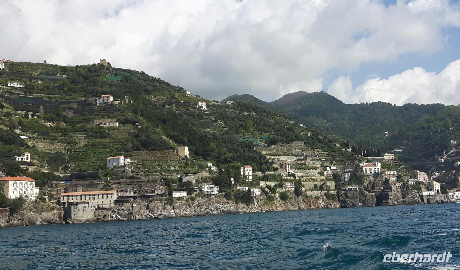 Steile Abgründe, bezaubernde Buchten, Ortschaften, die zwischen Felsen und Meer schweben - das ist der unwiderstehliche Zauber der Amalfitanischen Küste, die sich unterhalb der Bergkette der Monti Lat