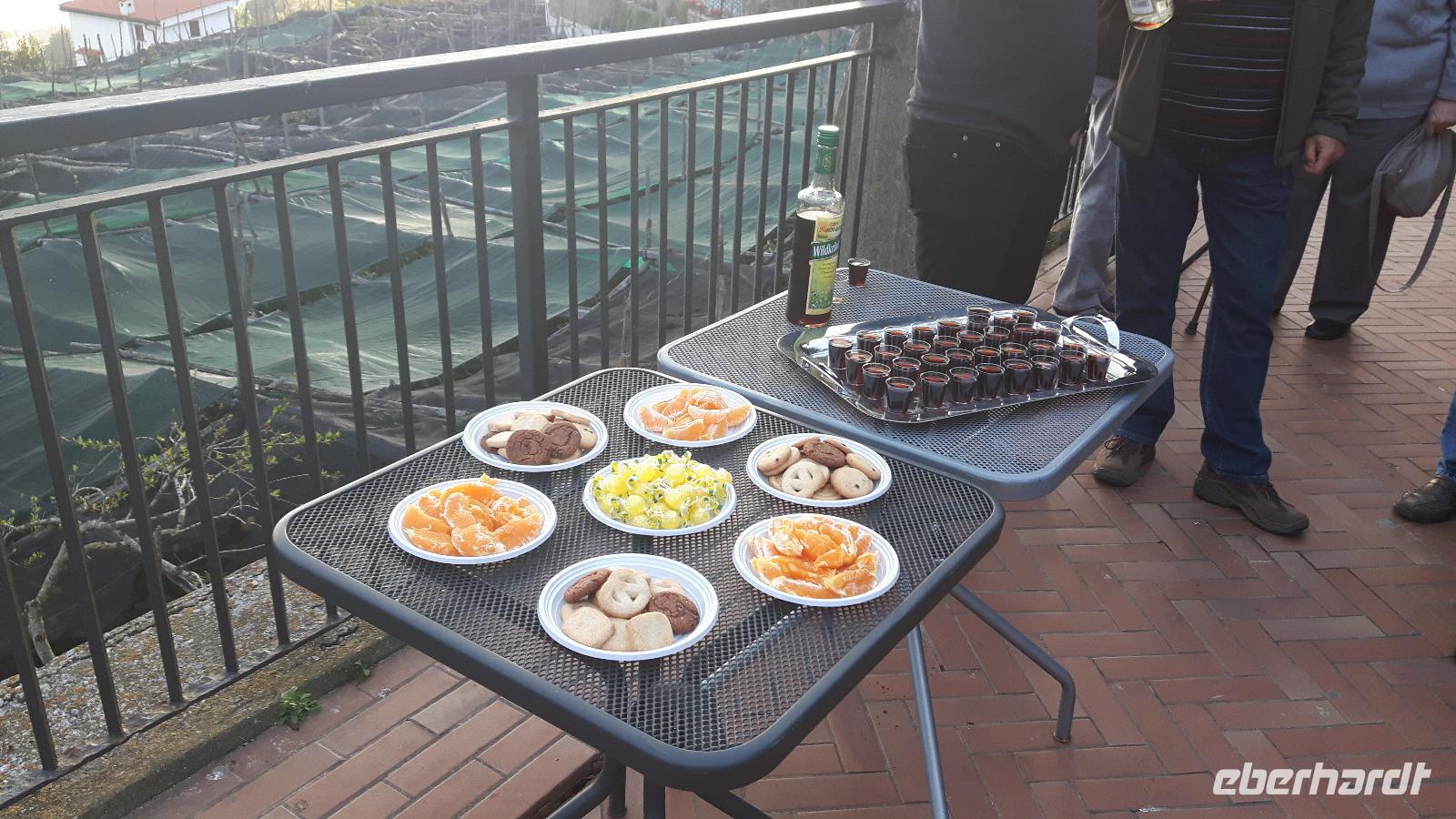 Da unser Bus nicht auf der Amalfiküsten-Straße fahren darf (er ist mit 13 Metern Länge nicht zugelassen), fuhren wir heute mit einem einheimischen Bus samt italienischen Buschauffeur Liberato und unserer humorvollen Reiseleiterin Ida auf einer der schönsten Küstenstraßen Italiens - die Straße ist streckenweise in die fast senkrecht abbrechende Felsküste eingehauen. Auf beiden Seiten eines schmalen Tals steigen die Häuser den Berg hoch. Ihre Bauweise ist städtisch mit 3 - 5 Stockwerken, am Hang stehen sie übereinander gebaut. Einen längeren Aufenthalt legten wir in Amalfi ein, der Ort war im Mittelalter eine der reichen und mächtigen vier Seerepubliken (neben Pisa, Genua und Venedig). Die Amalfitaner wurden durch den Fernhandel mit dem Orient, Ägypten, Konstantinopel, Südfrankreich und Norditalien reich, hatten eigene Handelsniederlassungen und eigene Wohnviertel in vielen Städten des Orients und auch in Süditalien und Sizilien. Das Seebeben Ende des 14. Jahrhunderts, die korrupte Herrschaft des spanischen Vizekönigs in Neapel, die Türkengefahr und noch mehr die Verlagerung der Handelswege nach der Entdeckung Amerikas machten aus Amalfi ein armes, von der Außenwelt abgeschnittenes Nest hinter den Bergen. Erst die Entdeckung durch den Tourismus nach 1850 brachte Änderung. Wir hatten genügend Zeit, um den Ort ganz individuell zu entdecken. Besonders sehenswert ist übrigens der Dom; Fassade und Treppe sind nachempfunden, der Turm ist allerdings echt; es gibt eine schöne Bronzetür aus Konstantinopel, das Innere des Doms ist barockisiert. Am Nachmittag führte uns die Straße über Agerola und Sorrent nach Termini zurück, wo wir am Nachmittag noch Zeit für den Besuch einer italienischen Bauernfamilie hatten und uns mit kulinarischen Produkten aus deren eigener Herstellung versorgen konnten - es gab unter anderem Olivenöl, Limoncello, Wein und Marmelade. Wir ließen diesen wunderschönen Tag vor dem Abendessen mit einem Gläschen Kräuterschnaps ausklingen - gleichzeitig mussten wir uns an dieser Stelle auch so langsam von unseren lieben Fluggästen verabschieden! Ein leckeres Abendessen mit musikalischer Unterhaltung rundete schließlich diesen letzten gemeinsamen Abend ab.