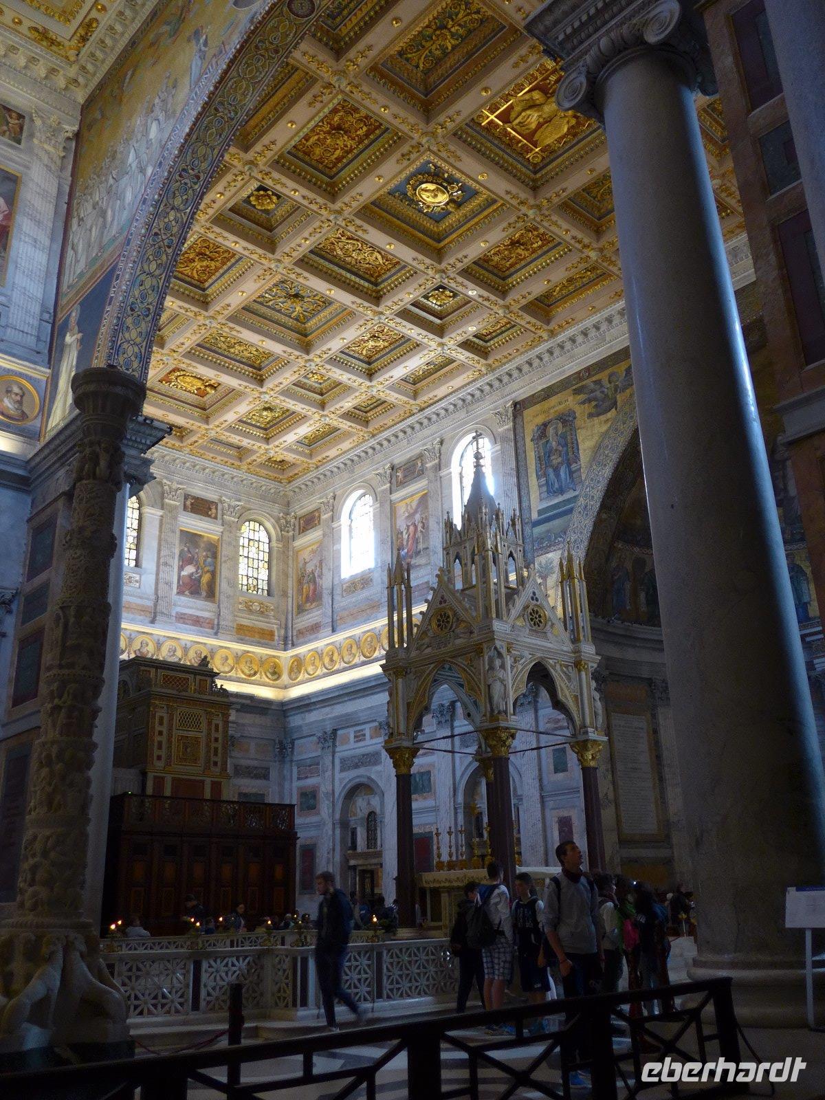 Rom - quer durch die Jahrhunderte war das Programm für den ersten Tag. Ausgerüstet mit Funk und einer fachkundigen Führung wurde die Tiber-Metropole mit dem Bus und zu Fuß erkundet. Dabei steuerten wir die wichtigsten Sehenswürdigkeiten an. Ob St. Paul vor den Mauern (kleine Zugabe), Laterankirche, Forum Romanum, Kolosseum, Piazza Navona, Pantheon Trevi-Brunnen oder Spanische Treppe. An so manchen Orten konnte neben Faktenwissen auch so manches kurioses berichtet werden. Neben der Santa Maria Maggiore, mit ihrer wunderschönen goldenen Decke und den meisterhaften Mosaiken, war natürlich der Besuch des Petersdoms ein einmaliges Erlebnis. Ist sie doch die größte Kirche der Christenheit und dies wir jedem, der sie zum ersten Mal betritt, sofort bewusst. Nicht immer ging es im Vatikanstaat so friedlich zu, wie heute. Vor so mancher kriegerischen Auseinandersetzung musste der Papst fliehen. Ein sicherer Ort dabei war immer die Engelsburg. Wer kennt nicht den Thriller von Dan Brown „Illuminati". Dem geheimen Verbindungsgang zwischen Vatikan und Engelsburg wurde im gleichnamigen Film sogar eine Filmszene gewidmet. Einige nutzten die Freizeit u. besuchten dieses Schutz- u. Ausweichquartier, das eigentlich als Grabmal für Kaiser Hadrian konzipiert. Als gelungener Ausklang jeden Tages haben wir die römische Küche in typischen Restaurants kennengelernt. In bleibender Erinnerung wird noch lange der Abend mit Erlebnisgastronomie bleiben. Höhepunkt mit vielen bekannten italienischen Arien war die Live-Rasur des Figaros aus der gleichnamigen Oper Figaros Hochzeit.