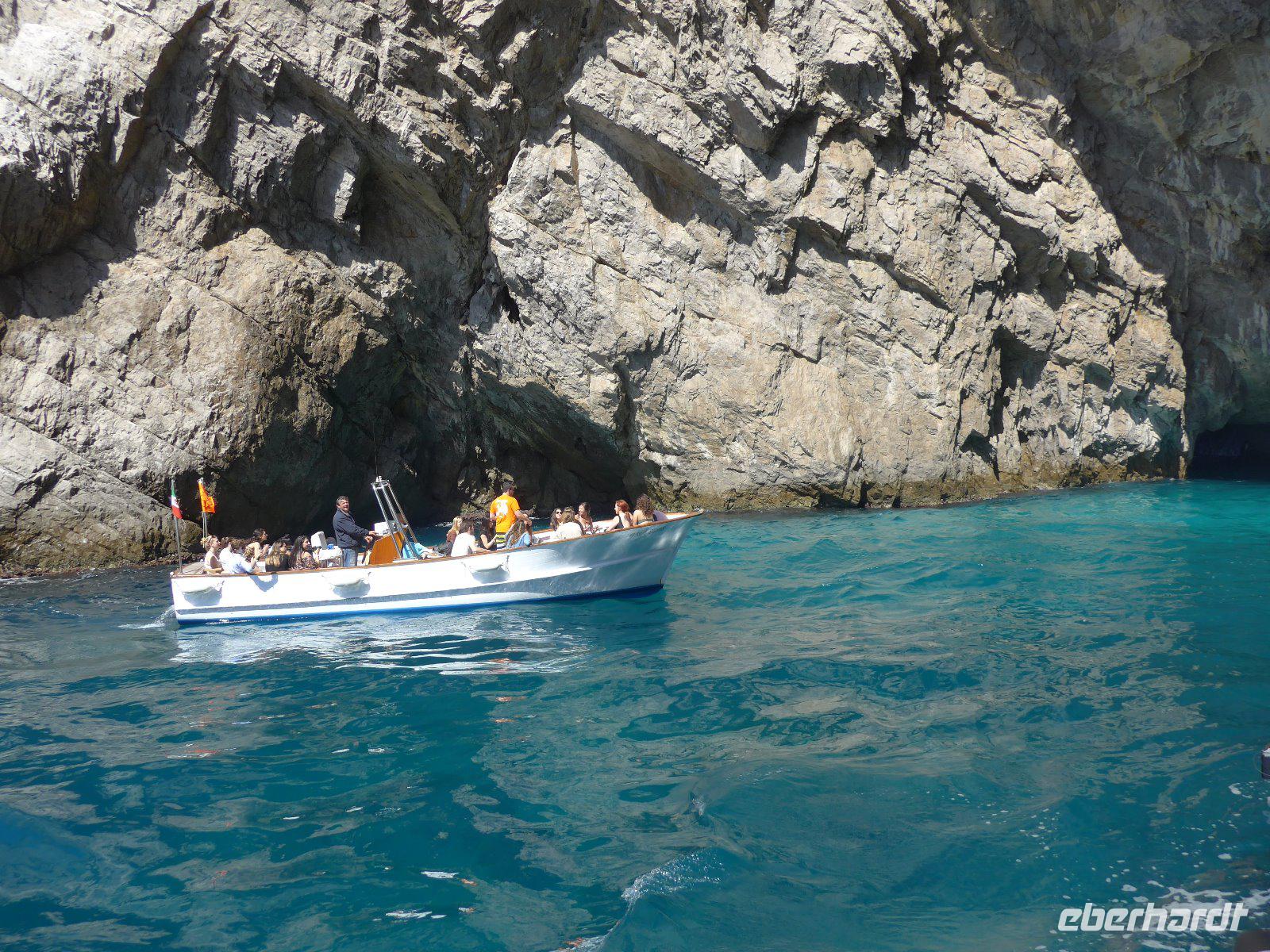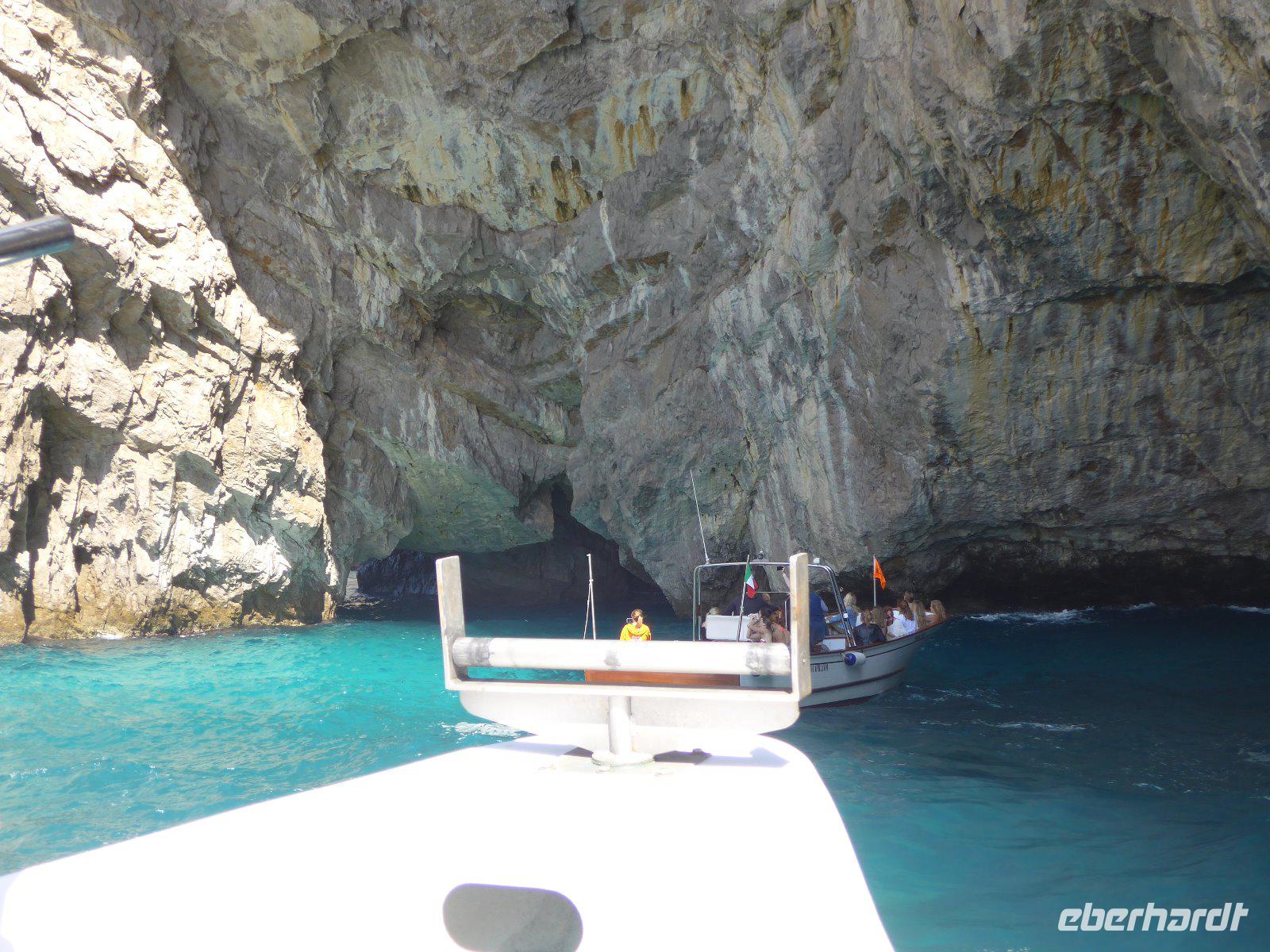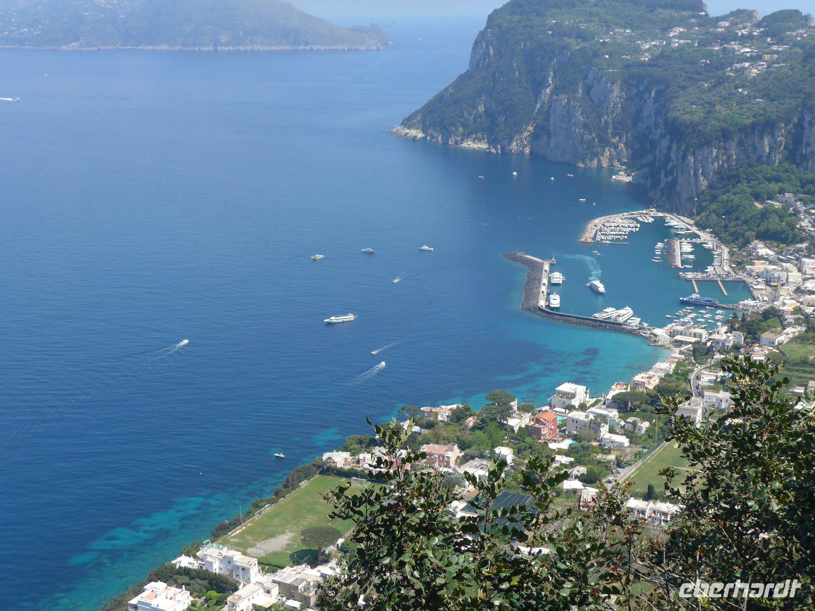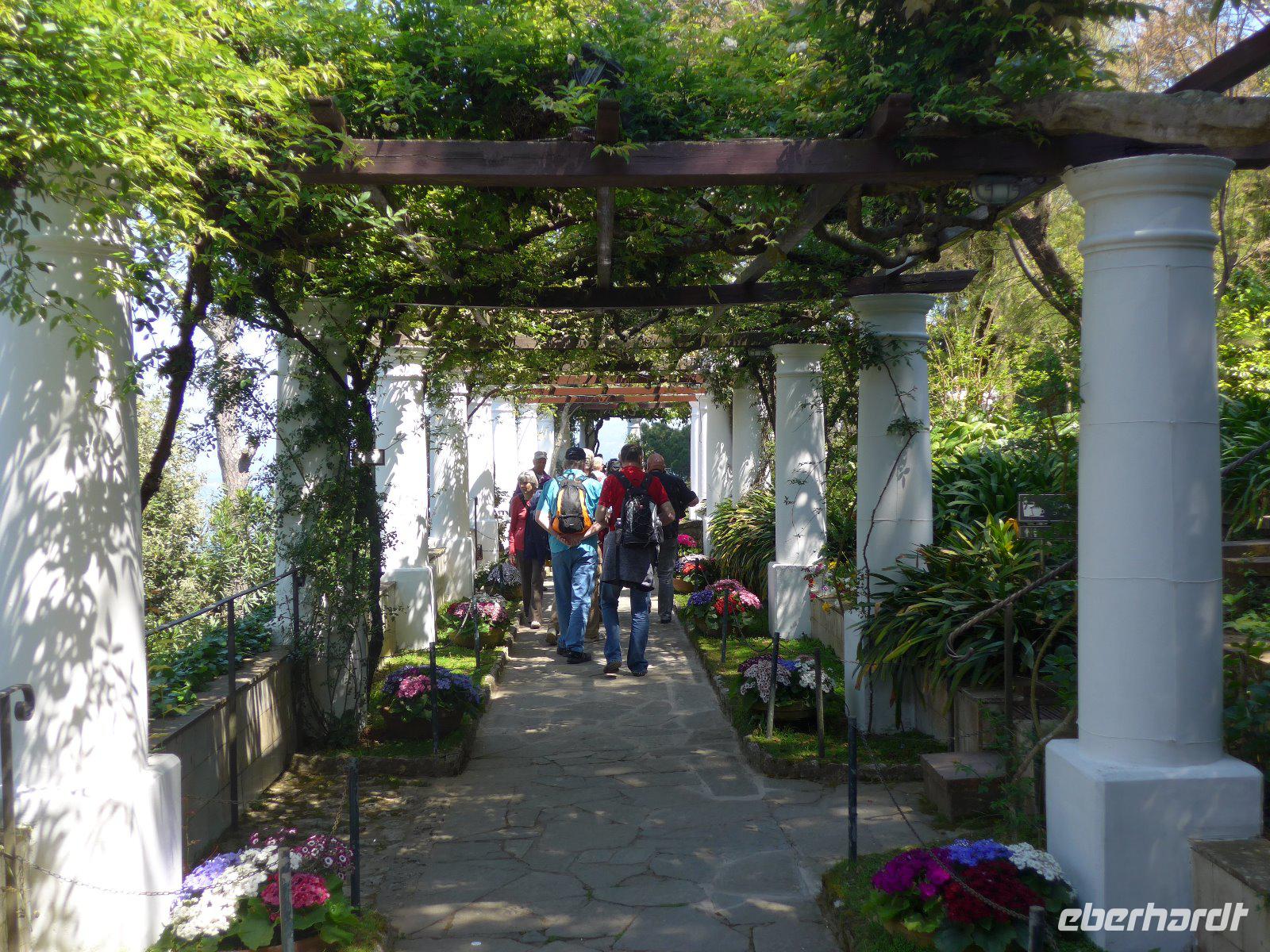 Jeder verbindet mit dieser Insel Capri etwas anderes. Ob es das Lied ist von der Sonne, die bei Capri rot im Meer versinkt oder einfach nur das Wassereis „Capri-Sonne". Vielleicht kommen auch die vielen Erinnerungen an die Fahrten mit dem Ford-Capri bei diesem Besuch zurück. Unsere Gruppe machte sich jedenfalls heute vom Sorrent aus auf, die Insel zu erobern. Mit der Fähre setzt man hinüber und bevor wir dort ankamen hieß es sich einreihen in den Strom der vielen Tagestouristen. Wegen zahlreicher Grotten und dem schönen Blick auf das Meer wird die Insel nicht umsonst auch die Diva des Mittelmeers genannt. Zunächst wird die Insel mit einem Boot umrundet. Dabei fehlte natürlich nicht die Blaue Grotte. Eines der vielen Bildmotive der Insel. Als nächstes steuerten wir Anacapri an. Nur mit Kleinbussen zu erreichen hatten wir nehmen der spannenden Fahrt immer wieder schöne Ausblicke aufs Meer. Eine Stelle wird sogar wegen der Enge u. dem sichtbaren Abgrund „Mama Mia" genannt. Angekommen war es gerade Recht zur Mittagspause, das wir in einem netten Lokal machten. Danach hatte man die Qual der Wahl. Entweder die schöne Aussicht an der höchsten Erhebung der Insel den Monte Solaro (598 Meter) genießen oder mit unser netten Diana die Villa von Axel Munthe zu genießen. Viele entschieden sich für Munthe. Ein toller Garten, der sich hinter hohen Mauern verbarg. Danach brachte uns der Kleinbuss nach Capri, wo wir entlang edler Geschäfte zu den Augustusgärten spazierten. Noch einen Blick auf die Straße, die Krupp bauen ließ und dann hieß es Abschied nehmen von der Diva des Mittelmeers und es ging wieder zurück zum Festland nach Sorrento. Gerade recht die rote Sonne live über Capri untergehen zu sehen. Ein schöner Ausflugstag mit vielen Eindrücken ging zu Ende.