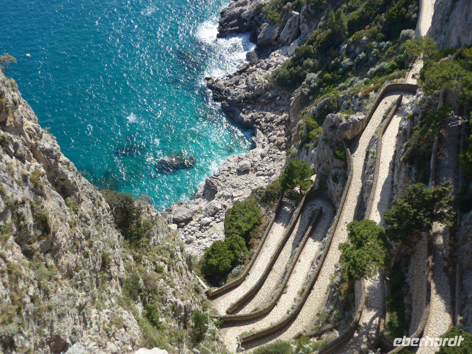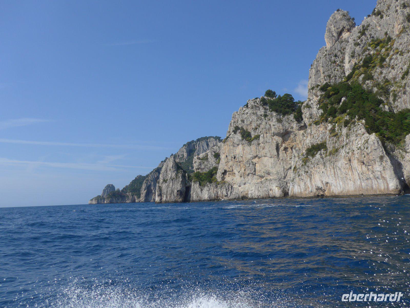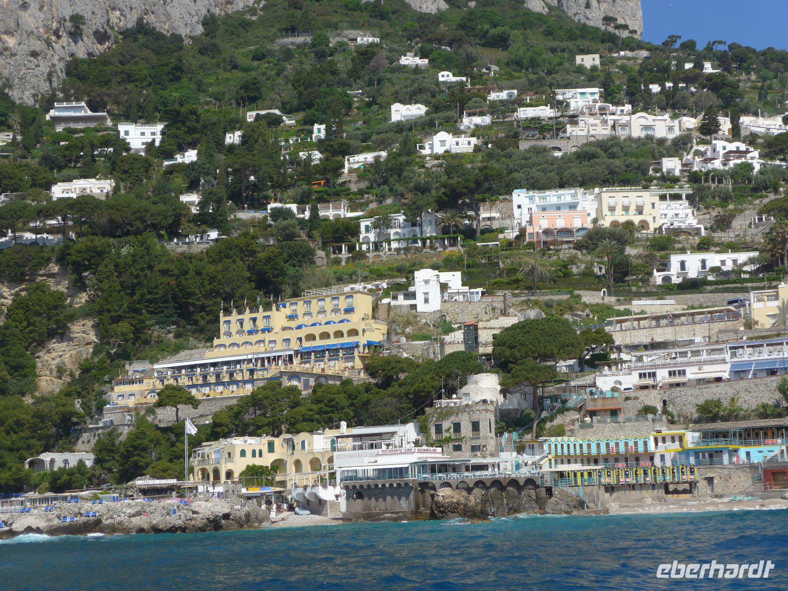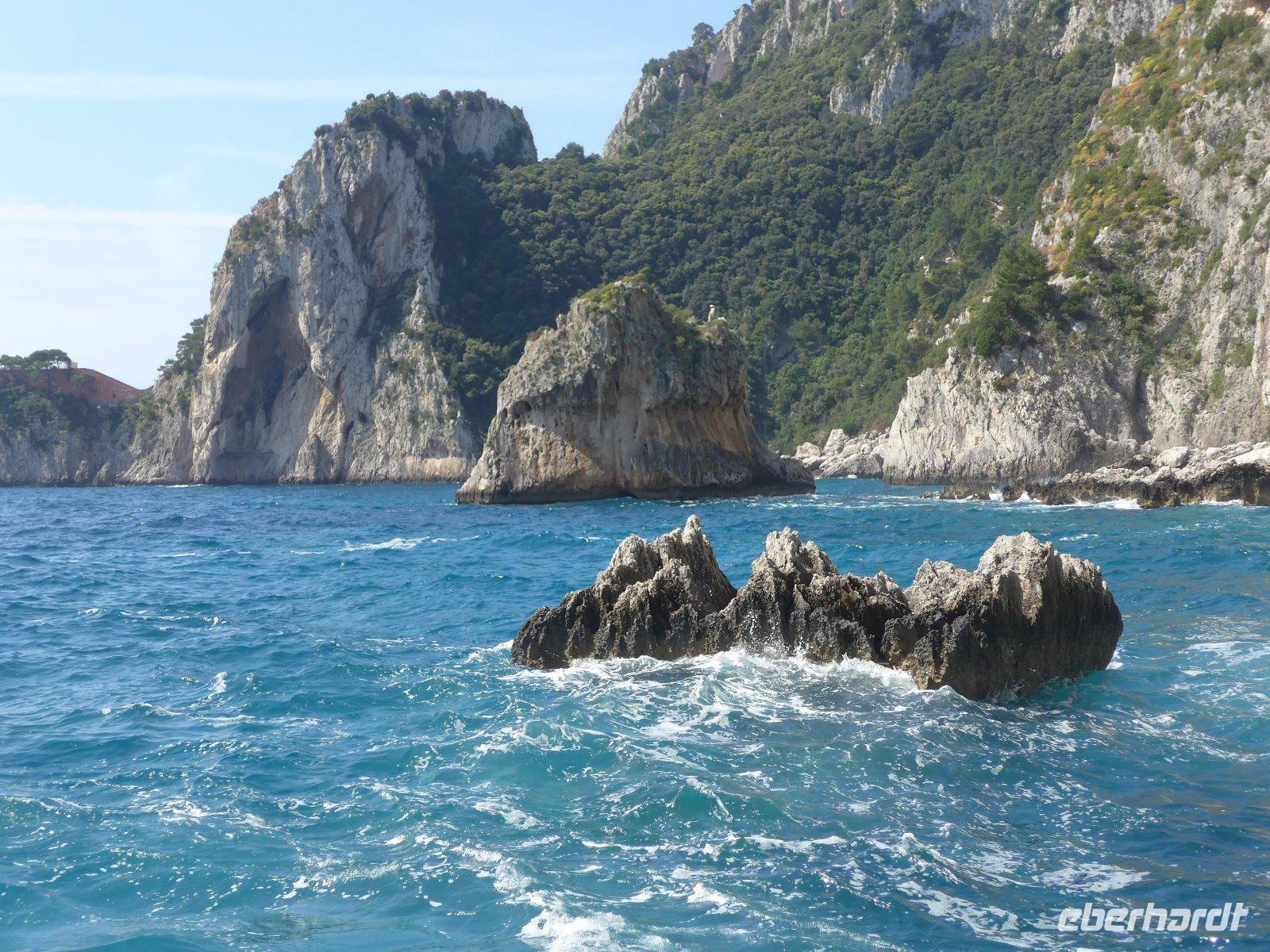 Jeder verbindet mit dieser Insel Capri etwas anderes. Ob es das Lied ist von der Sonne, die bei Capri rot im Meer versinkt oder einfach nur das Wassereis „Capri-Sonne". Vielleicht kommen auch die vielen Erinnerungen an die Fahrten mit dem Ford-Capri bei diesem Besuch zurück. Unsere Gruppe machte sich jedenfalls heute vom Sorrent aus auf, die Insel zu erobern. Mit der Fähre setzt man hinüber und bevor wir dort ankamen hieß es sich einreihen in den Strom der vielen Tagestouristen. Wegen zahlreicher Grotten und dem schönen Blick auf das Meer wird die Insel nicht umsonst auch die Diva des Mittelmeers genannt. Zunächst wird die Insel mit einem Boot umrundet. Dabei fehlte natürlich nicht die Blaue Grotte. Eines der vielen Bildmotive der Insel. Als nächstes steuerten wir Anacapri an. Nur mit Kleinbussen zu erreichen hatten wir nehmen der spannenden Fahrt immer wieder schöne Ausblicke aufs Meer. Eine Stelle wird sogar wegen der Enge u. dem sichtbaren Abgrund „Mama Mia" genannt. Angekommen war es gerade Recht zur Mittagspause, das wir in einem netten Lokal machten. Danach hatte man die Qual der Wahl. Entweder die schöne Aussicht an der höchsten Erhebung der Insel den Monte Solaro (598 Meter) genießen oder mit unser netten Diana die Villa von Axel Munthe zu genießen. Viele entschieden sich für Munthe. Ein toller Garten, der sich hinter hohen Mauern verbarg. Danach brachte uns der Kleinbuss nach Capri, wo wir entlang edler Geschäfte zu den Augustusgärten spazierten. Noch einen Blick auf die Straße, die Krupp bauen ließ und dann hieß es Abschied nehmen von der Diva des Mittelmeers und es ging wieder zurück zum Festland nach Sorrento. Gerade recht die rote Sonne live über Capri untergehen zu sehen. Ein schöner Ausflugstag mit vielen Eindrücken ging zu Ende.