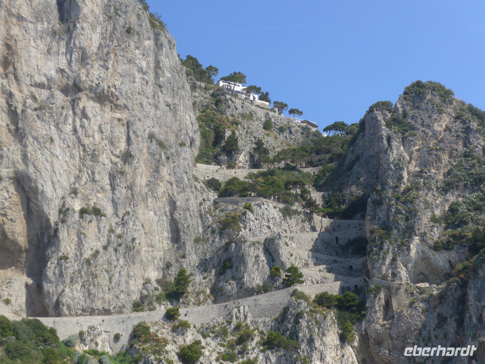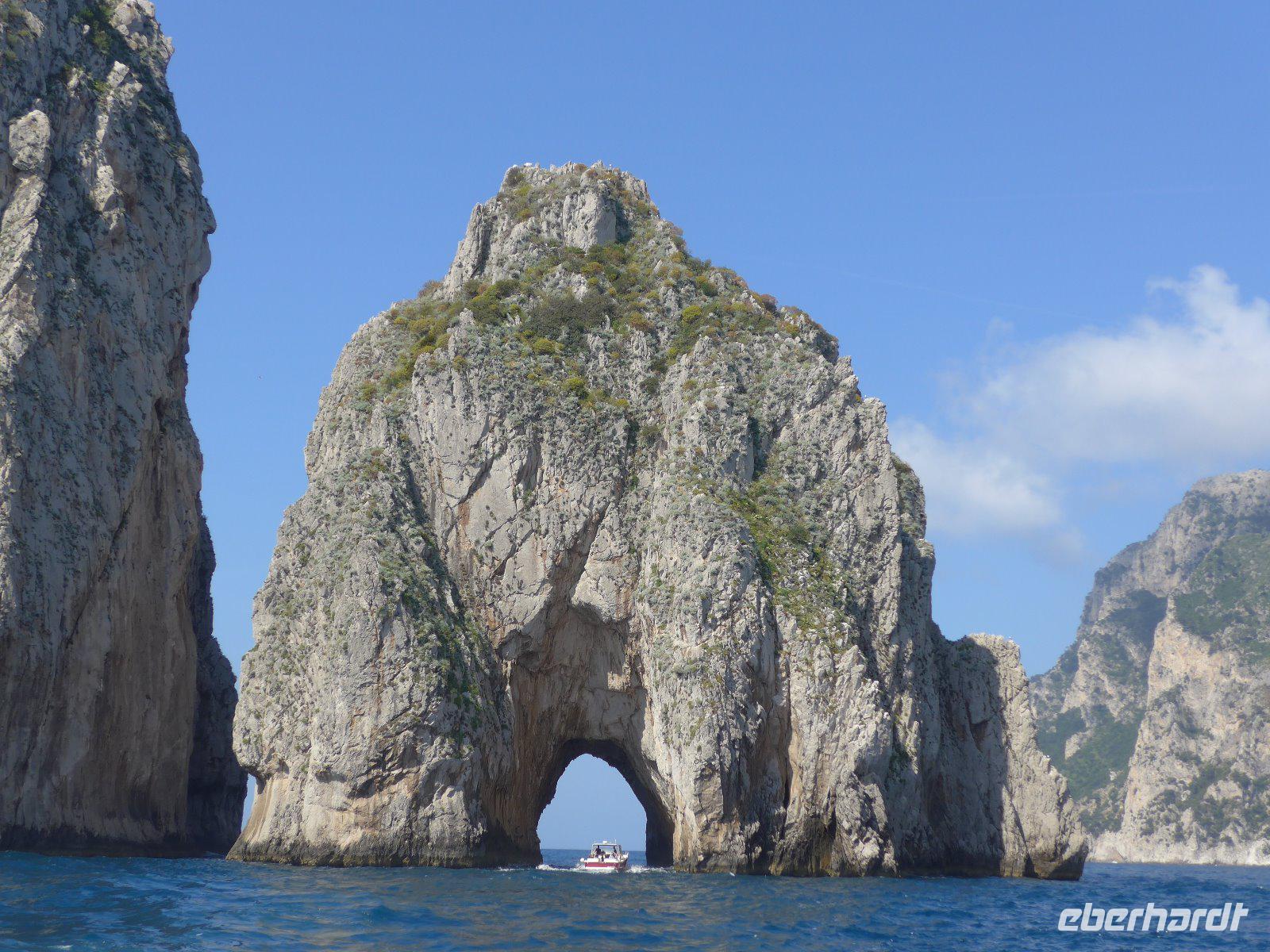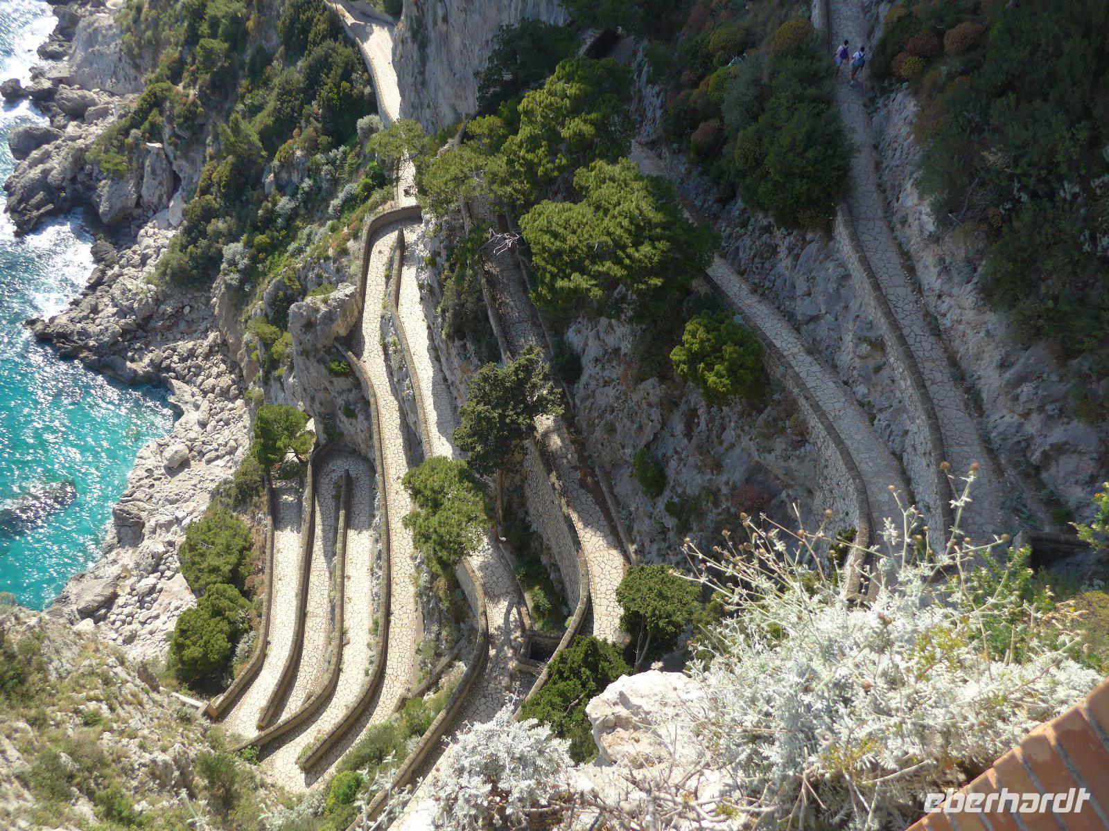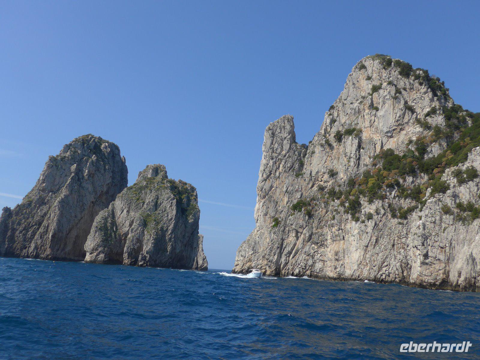 Jeder verbindet mit dieser Insel Capri etwas anderes. Ob es das Lied ist von der Sonne, die bei Capri rot im Meer versinkt oder einfach nur das Wassereis „Capri-Sonne". Vielleicht kommen auch die vielen Erinnerungen an die Fahrten mit dem Ford-Capri bei diesem Besuch zurück. Unsere Gruppe machte sich jedenfalls heute vom Sorrent aus auf, die Insel zu erobern. Mit der Fähre setzt man hinüber und bevor wir dort ankamen hieß es sich einreihen in den Strom der vielen Tagestouristen. Wegen zahlreicher Grotten und dem schönen Blick auf das Meer wird die Insel nicht umsonst auch die Diva des Mittelmeers genannt. Zunächst wird die Insel mit einem Boot umrundet. Dabei fehlte natürlich nicht die Blaue Grotte. Eines der vielen Bildmotive der Insel. Als nächstes steuerten wir Anacapri an. Nur mit Kleinbussen zu erreichen hatten wir nehmen der spannenden Fahrt immer wieder schöne Ausblicke aufs Meer. Eine Stelle wird sogar wegen der Enge u. dem sichtbaren Abgrund „Mama Mia" genannt. Angekommen war es gerade Recht zur Mittagspause, das wir in einem netten Lokal machten. Danach hatte man die Qual der Wahl. Entweder die schöne Aussicht an der höchsten Erhebung der Insel den Monte Solaro (598 Meter) genießen oder mit unser netten Diana die Villa von Axel Munthe zu genießen. Viele entschieden sich für Munthe. Ein toller Garten, der sich hinter hohen Mauern verbarg. Danach brachte uns der Kleinbuss nach Capri, wo wir entlang edler Geschäfte zu den Augustusgärten spazierten. Noch einen Blick auf die Straße, die Krupp bauen ließ und dann hieß es Abschied nehmen von der Diva des Mittelmeers und es ging wieder zurück zum Festland nach Sorrento. Gerade recht die rote Sonne live über Capri untergehen zu sehen. Ein schöner Ausflugstag mit vielen Eindrücken ging zu Ende.