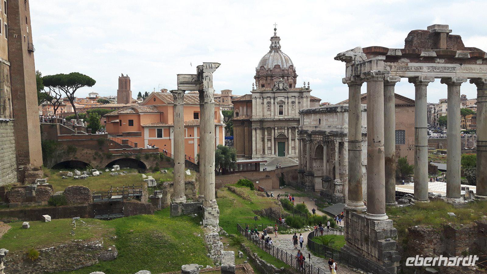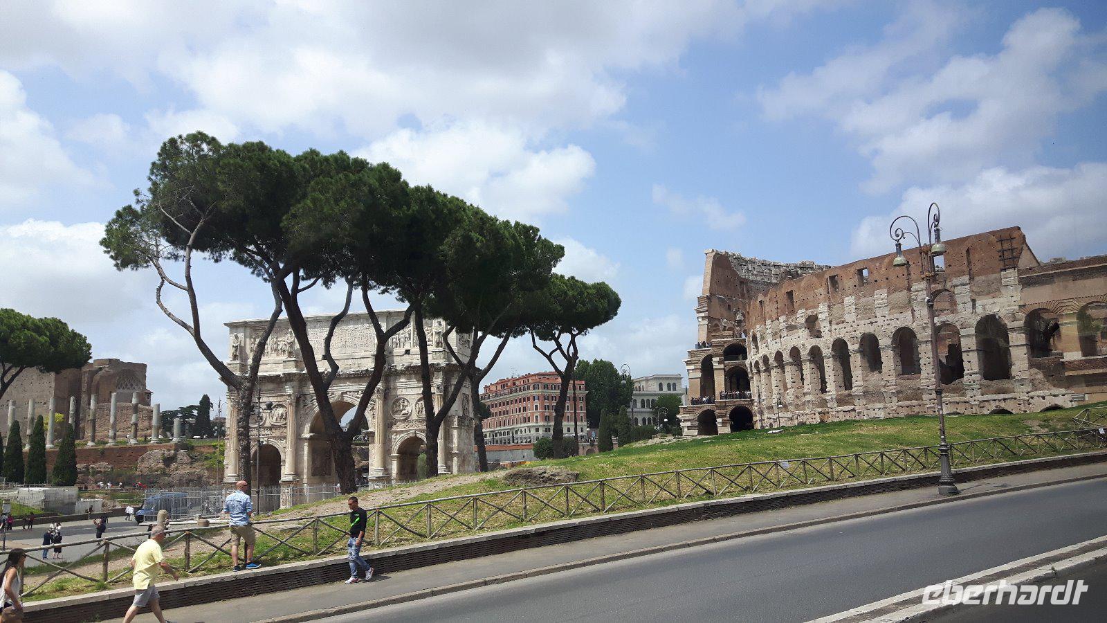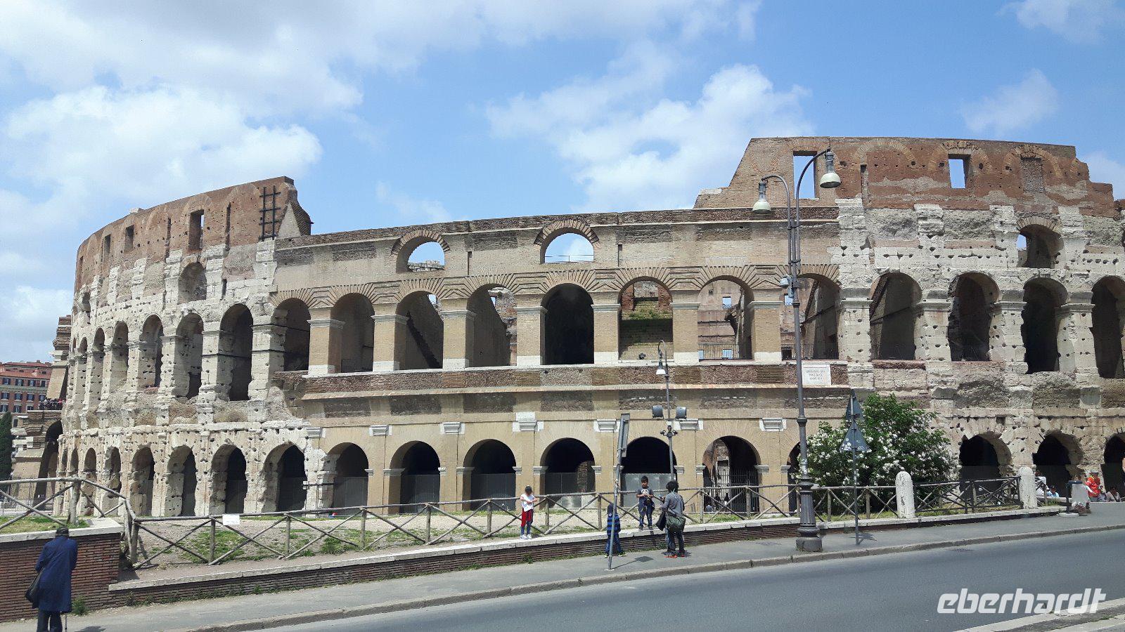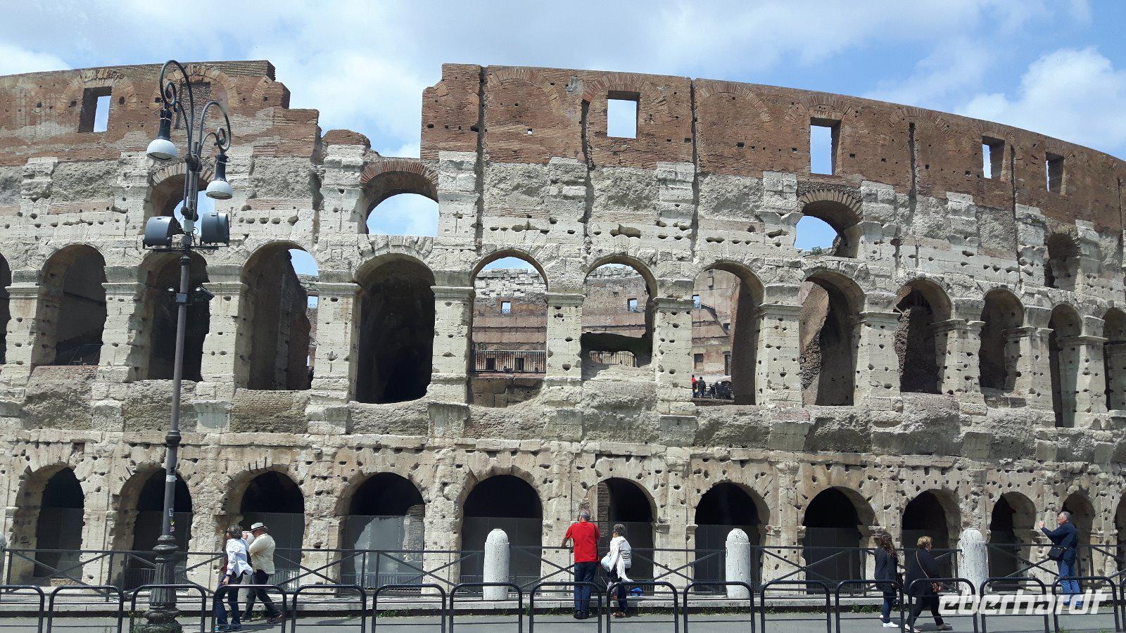 Das Frühstück im Hotel war zwar nicht ganz so üppig wie zu Hause, aber das wussten wir bereits vorher und somit fuhren wir gut gelaunt mit unserem eigenen Reisebus in die Stadt hinein. Unsere nette Stadtführerin Agnieszka erwartete uns bereits in der Nähe des Petersdomes und hier begann auch gleich die umfangreiche Stadtrundfahrt durch Rom! Diese führte uns unter anderem vorbei an berühmten Plätzen und Straßen der Stadt wie der Piazza Venezia mit dem Nationaldenkmal, der Via Nazionale und der eleganten Via Veneto. Einen kleinen Spaziergang unternahmen wir, um den Kapitolshügel zu erklimmen und von dort aus einen Blick auf das Forum Romanum zu werfen. Von den hiesigen Kaiserforen wurde nicht nur Rom, sondern das ganze Römische Reich regiert. Hier lag für fast 1.000 Jahre das Zentrum der Antike. Der Etruskerkönig Priscus hatte im 6. Jh. v. Chr. den Sumpf zwischen Kapitol, Palatin und Esquilin entwässert und als „Cloaca Maxima", die erste große Kläranlage der Antike, dem Tiber zugeführt. Das Forum Romanum, ursprünglich als Vesta-Heiligtum gedacht, entwickelte sich schließlich vom Viehmarkt zur politischen Arena. So langsam bekamen wir Hunger und unser Bus brachte uns daher zur faszinierenden Kirche Sankt Paul vor den Mauern, wo wir erst einmal eine Mittagspause einlegten. Jeder nutzte die Zeit ganz individuell, um ein Stück Pizza bzw. etwas Pasta in einer der Bars zu essen oder ganz einfach ein leckeres italienisches Eis zu schleckern! Die Kirche Sankt Paul vor den Mauern schauten wir uns natürlich auch etwas näher an, denn die Ausstattung mit den Deckengemälden einschließlich den Porträts aller Päpste sind wirklich sehenswert und auch das wiederentdeckte Paulusgrab hat eine gewisse Mystik. Gut gestärkt trafen wir uns alle am Bus wieder und setzten unsere Stadtrundfahrt fort. Es ging nun weiter vorbei an den Caracalla-Thermen, welche mehr als nur ein Badehaus waren, zum Circus Maximus. Dieses war das größte Stadium im antiken Rom. Fast ein ganzes Jahrtausend lang wurden dort beliebte Wagenrennen gehalten. An einem Punkt der Geschichte bot der Circus Platz für 250.000 Leute - ein Viertel von Roms Bevölkerung! Anschließend brachte uns unser Bus zu einer weiteren wichtigen Kirche Roms - der Kirche Santa Maria Maggiore, einer der vier Patriarchalbasiliken Roms! Sie wurde unter Papst Sixtus III. errichtet, nachdem 431 das Konzil von Ephesus Maria, die Mutter Jesu, als Gottes Gebärerin verkündet hatte und dadurch die Marienverehrung aufgeblüht war. Am Nachmittag stand ein letzter Höhepunkt des heutigen Besichtigungsprogramms auf dem Programm - das Kolosseum! Kaiser Vespasian begann den Bau 72 n. Chr., sein Sohn Titus weihte die Arena nach nur achtjähriger Bauzeit mit hunderttägigen Festspielen ein. Unzählige Tiere und Gladiatoren wurden geopfert. Sehr lebendig sind allerdings noch die Legionäre, mit denen man hier gegen ein Entgelt für ein Foto posieren kann. Hier hatten wir zum Glück auch noch etwas Freizeit, um uns in den zahlreichen Straßencafés einen leckeren Cappuccino schmecken zu lassen - einfach himmlisch...! Andere Gäste, die noch etwas Energie übrig hatten, konnten jetzt noch das Kolosseum bzw. das Forum Romanum individuell besichtigen. Nach einem leckeren Abendessen in der Innenstadt kehrten wir gemeinsam gegen 21 Uhr zum Hotel zurück. Ein zwar anstrengender, aber auch sehr eindrucksvoller Tag ging nunmehr zu Ende.