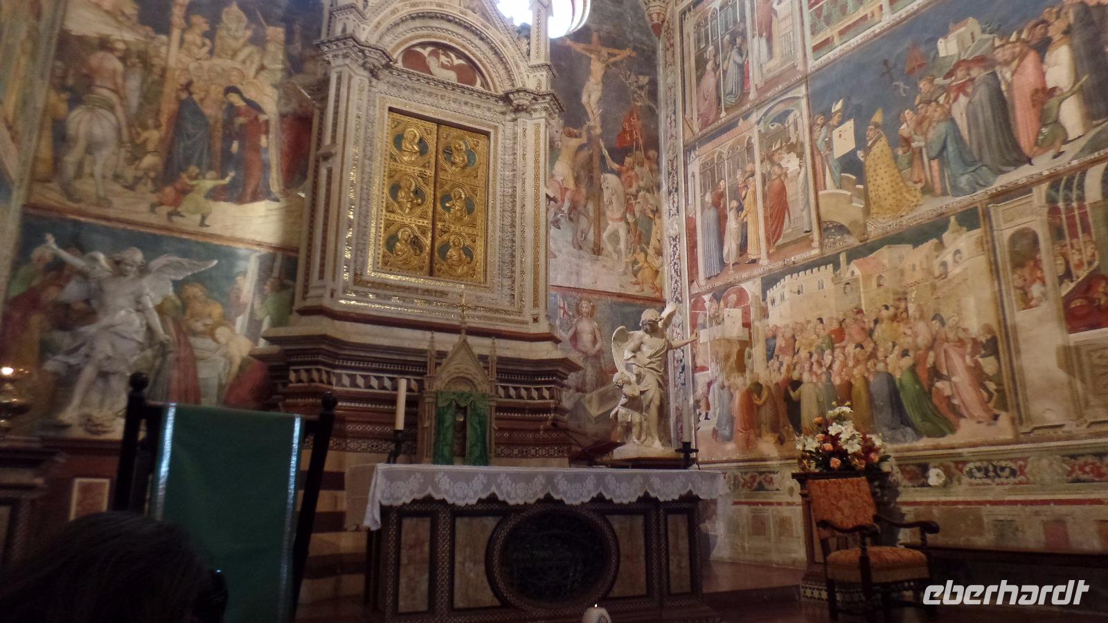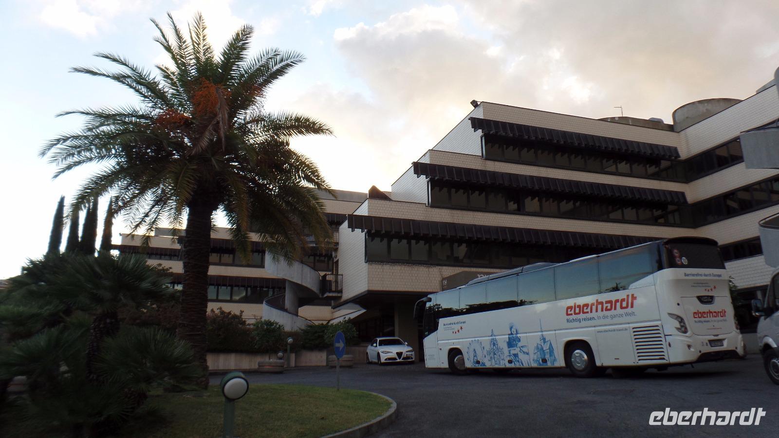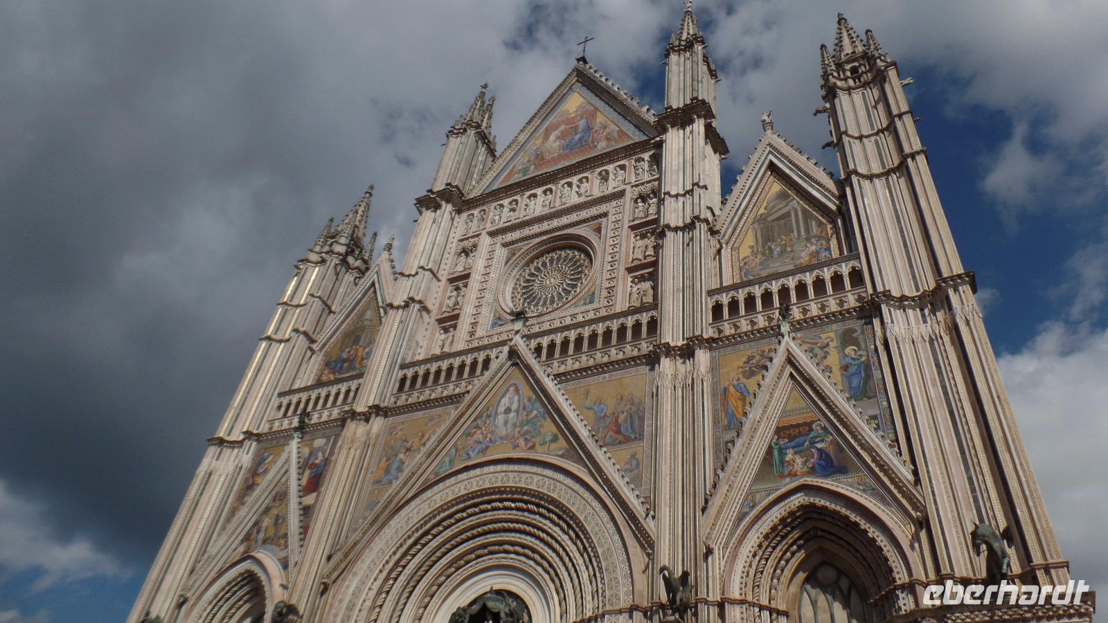 Zuerst fahren wir ein Stück durch Venetien und die Emilia-Romagna auf der Landstraße, ehe es nahe Ferrara auf die Autobahn geht. In Bologna erreichen wir die A1, die Sonnenautobahn. Sie bringt uns auf der neuen Teilstrecke durch den Toskanisch-Emilianischen Apennin. Wir umfahren Florenz und fahren weiter durch die herrliche Hügellandschaft der Toskana nach Orvieto in Umbrien. Mit Standseilbahn und Kleinbus erreichten wir den berühmten Dom und haben noch etwas Freizeit, ehe wir unsere Stadtführerin Chiara treffen. Sie macht uns mit der Geschichte vertraut und zeigt uns die architektonischen Details an der Fassade und im Dom und noch einige schöne Ecken in der Altstadt. Nach etwas Freizeit bummeln wir zur Bahn, und unser Bus bringt uns weiter nach Rom. Drei Nächte schlafen wir im Hotel NH Villa Carpegna Roma. Beim Abendessen können wir sechs weitere Gäste begrüßen, die heute mit dem Flieger angereist sind.