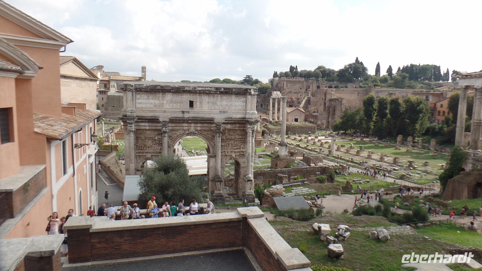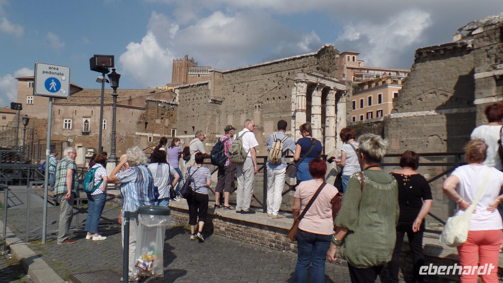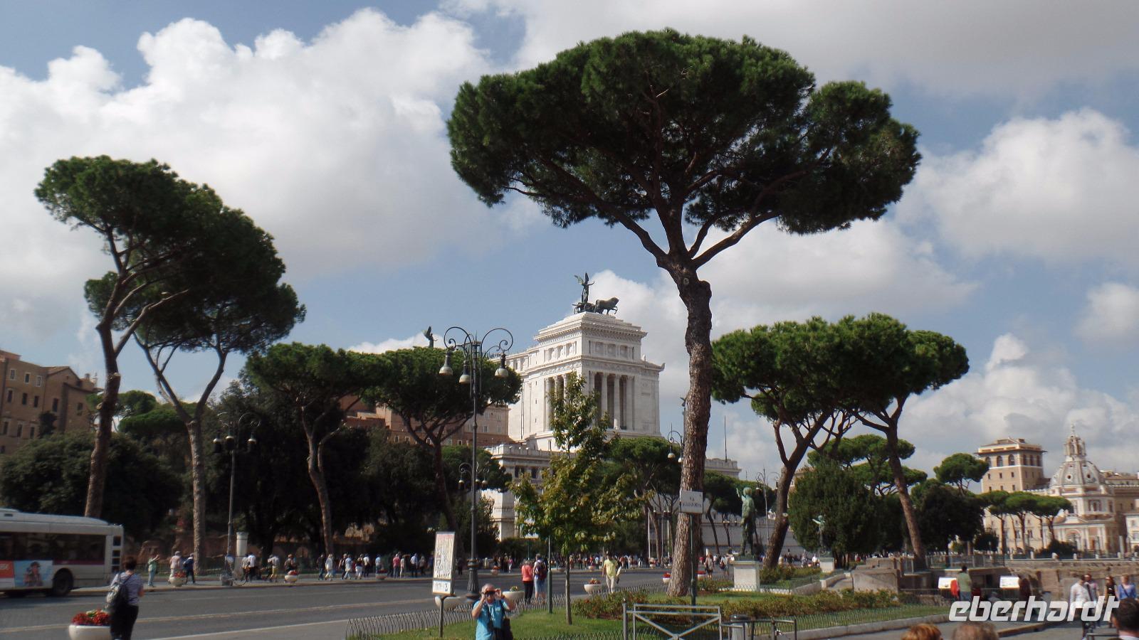 Wir treffen uns mit unserem Stadtführer Norbert Lupsa, der uns die nächsten zwei Tage sehr fachkundig in Rom herumführen wird. Bei einer kleinen Stadtrundfahrt können wir zuerst bequem viele der berühmten Sehenswürdigkeiten der Ewigen Stadt vom Bus aus bewundern. Norbert gibt uns sehr viele interessante Informationen über die Architektur und Geschichte der Stadt Rom und ihrer wunderbaren Bauwerke. Wir besuchen nach einer Mittagspause die Kirche Santa Maria Maggiore, eine der sieben Hauptkirchen von Rom. Dann geht es zu Fuß Richtung Piazza Venezia, vorbei an den Kaiserforen mit der Trajanssäule und den Trajansmärkten und an der "Hochzeitstorte", dem Vittoriano.
