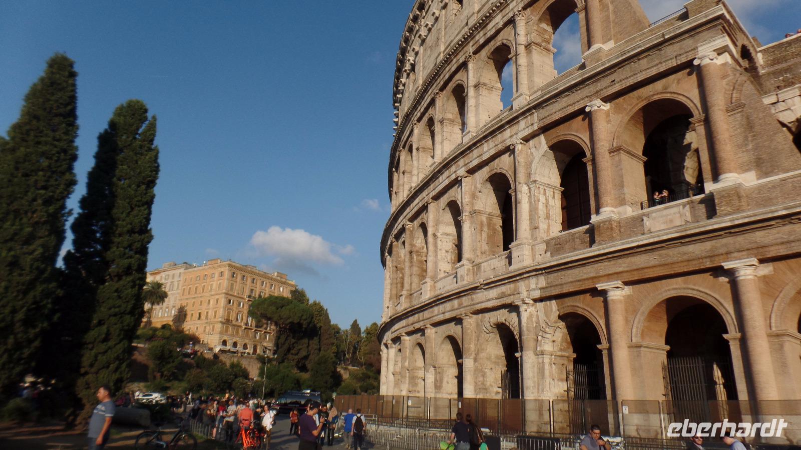 Wir besteigen den Capitolhügel mit dem von Michelangelo entworfenen Capitolsplatz, wo das Reiterstandbild von Marc Aurel die Jahrhunderte überstanden hat. Der Platz ist uns durch die italienische 50-Cent-Münze vertraut! Dort befinden sich die ersten Museen der Welt, die Capitolinischen Museen, das Rathaus und an der Ecke die Wölfin mit Romulus und Remus. Wir betrachten von oben das Forum Romanum und den Palatinhügel und bummeln zum Kolosseum. Hier haben wir ausreichend Freizeit, um das mächtige Bauwerk oder Forum Romanum zu besichtigen, ehe wir gemeinsam zum Abendessen ins römische Restaurant " La Terme del Colosseo" gehen. Hier erwartet uns eine Überraschung. Die leckeren Speisen werden uns mit tollem Gesang serviert. Unser Bus bringt uns ins Hotel zurück.