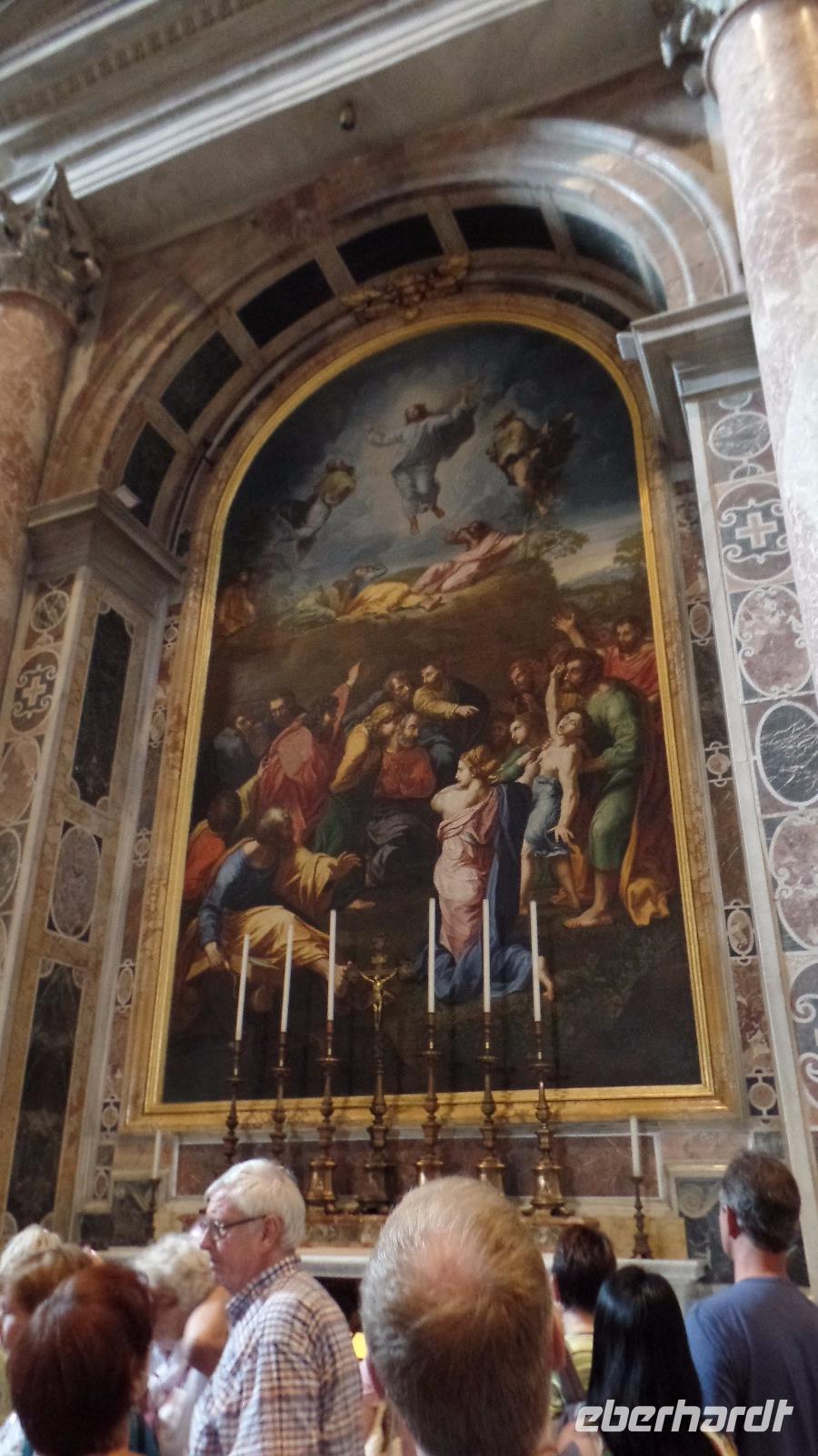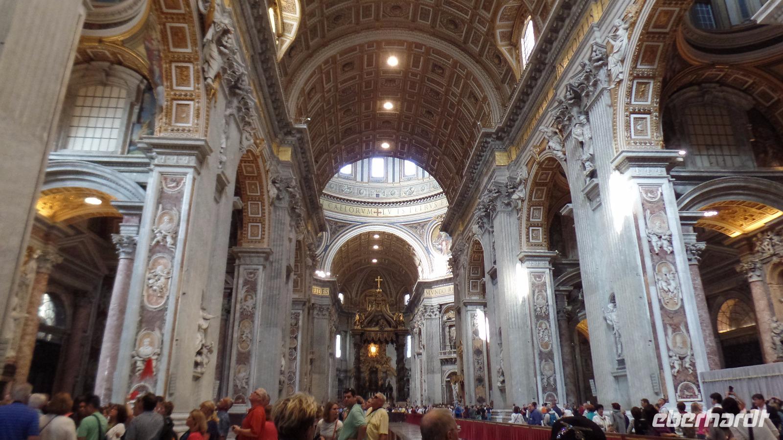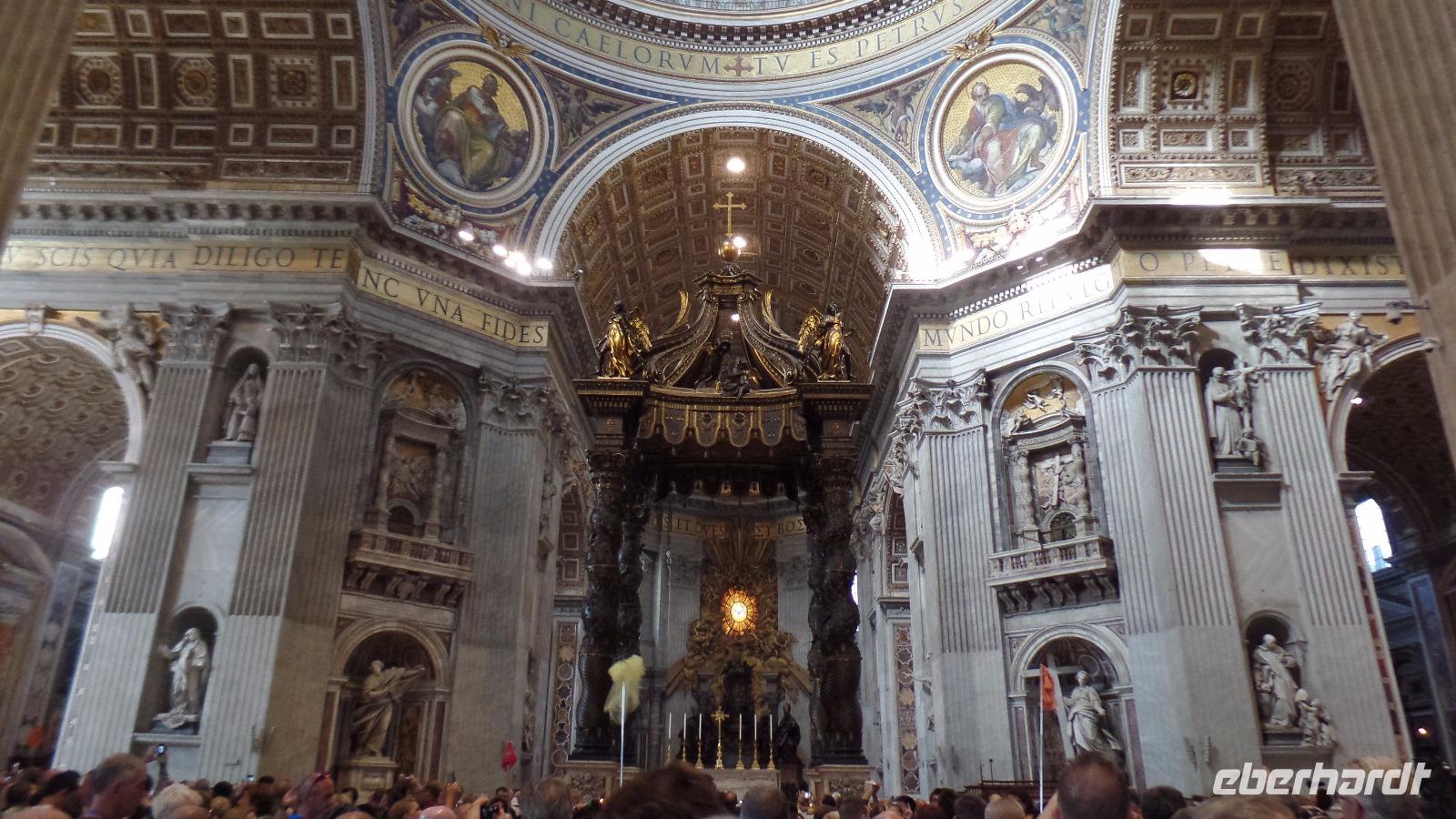 Mit einem öffentlichen Bus fahren wir heute zum Petersplatz. Merkwürdigerweise steht gar keine Warteschlange über den Platz, wir können gleich zu den Sicherheitskontrollen gelangen. Allerdings ziehen sich die Kontrollen doch hin. Wir treffen Norbert und er erklärt uns ausgiebig das Innere der größten Kirche der Christenheit. Wir betrachten die herrlichen Kunstwerke, allen voran die Pieta von Michelangelo.