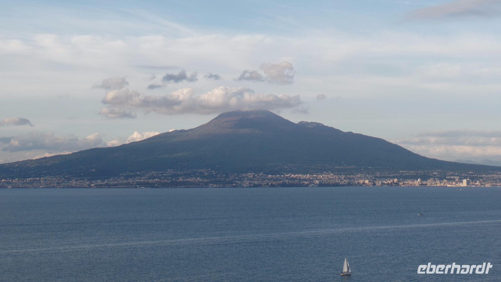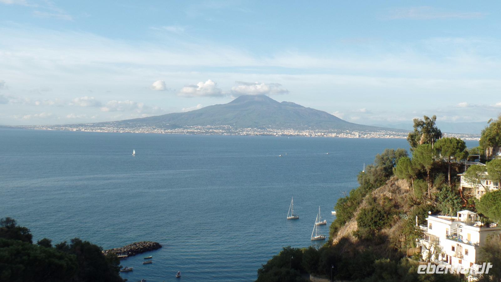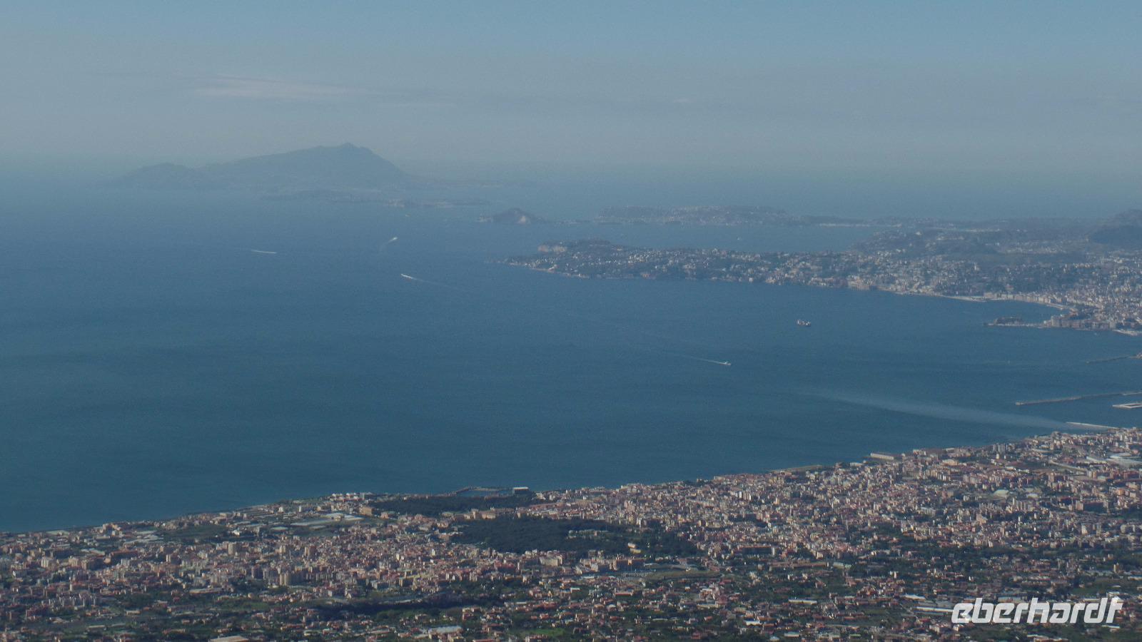 Die Auffahrt auf 1017 m Höhe ist schon ein Erlebnis. Bei der herrlich klaren Sicht können wir den ganzen Golf von Neapel überblicken, die Inseln Capri und Ischia, die sorrentinische Halbinsel.