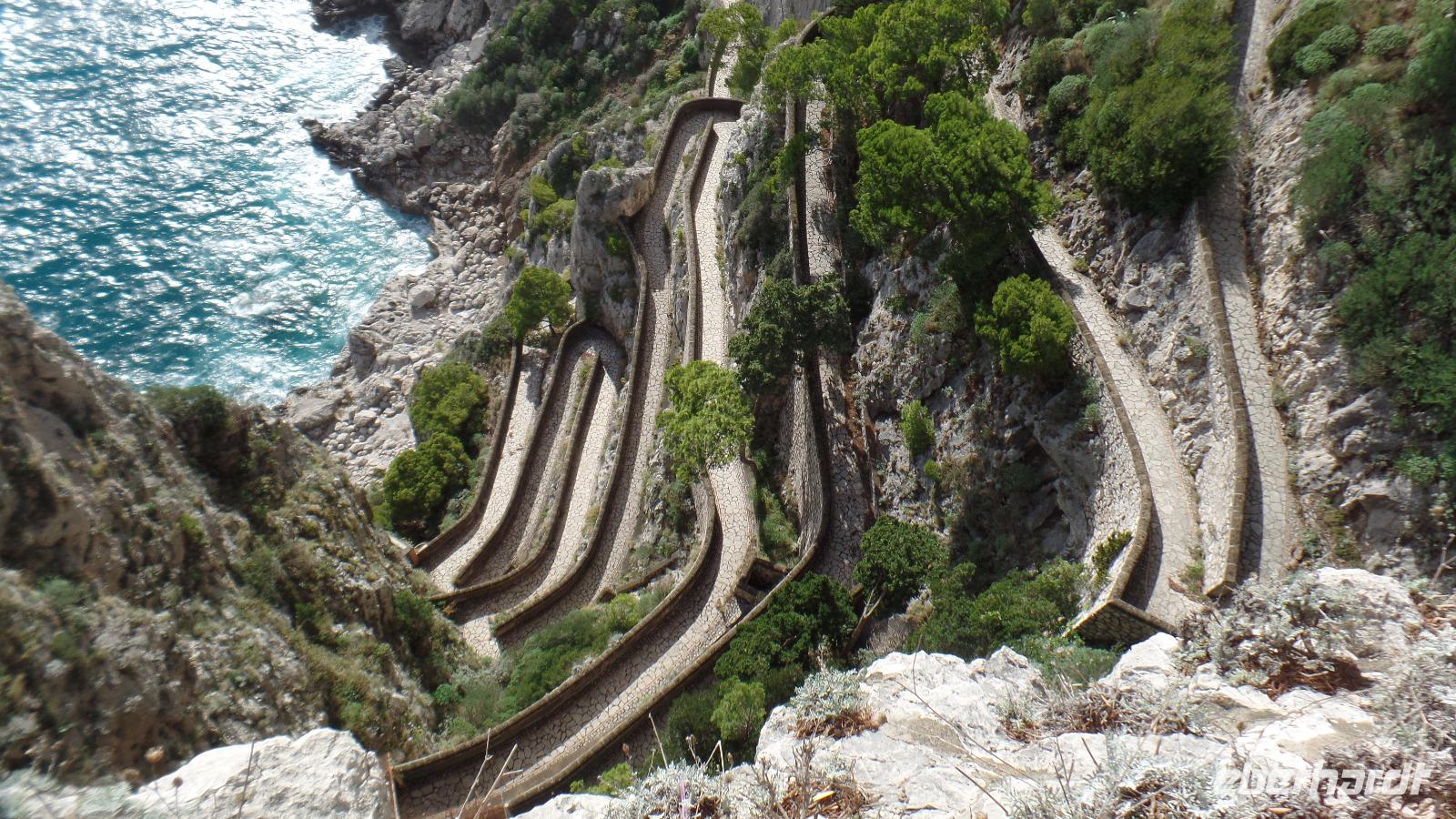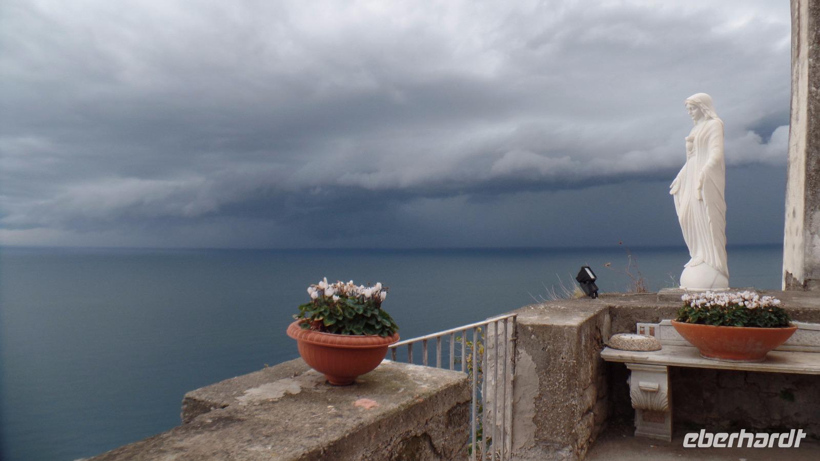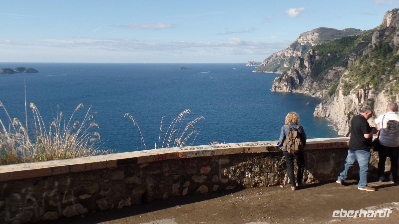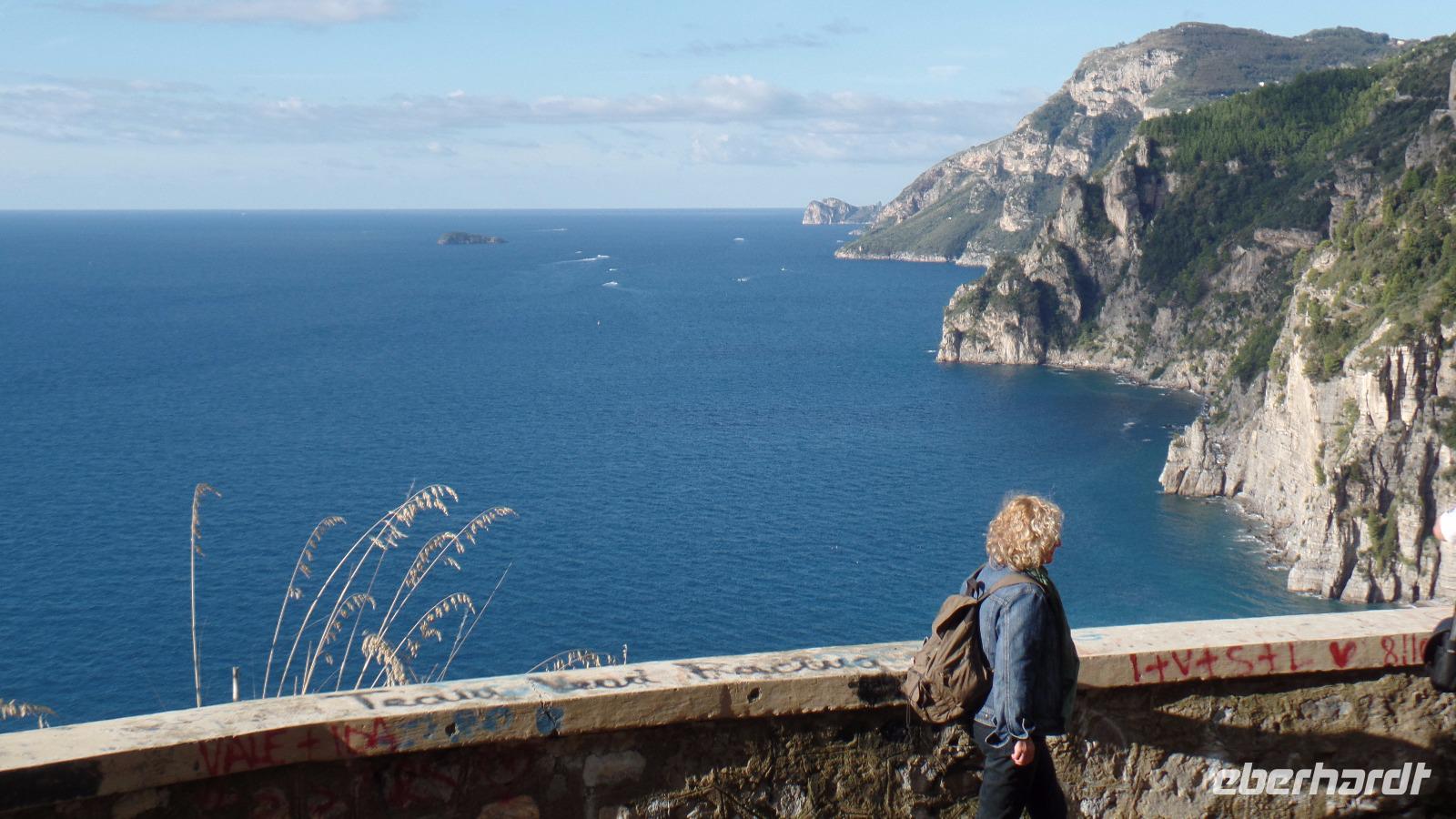 Die Auffahrt auf 1017 m Höhe ist schon ein Erlebnis. Bei der herrlich klaren Sicht können wir den ganzen Golf von Neapel überblicken, die Inseln Capri und Ischia, die sorrentinische Halbinsel.