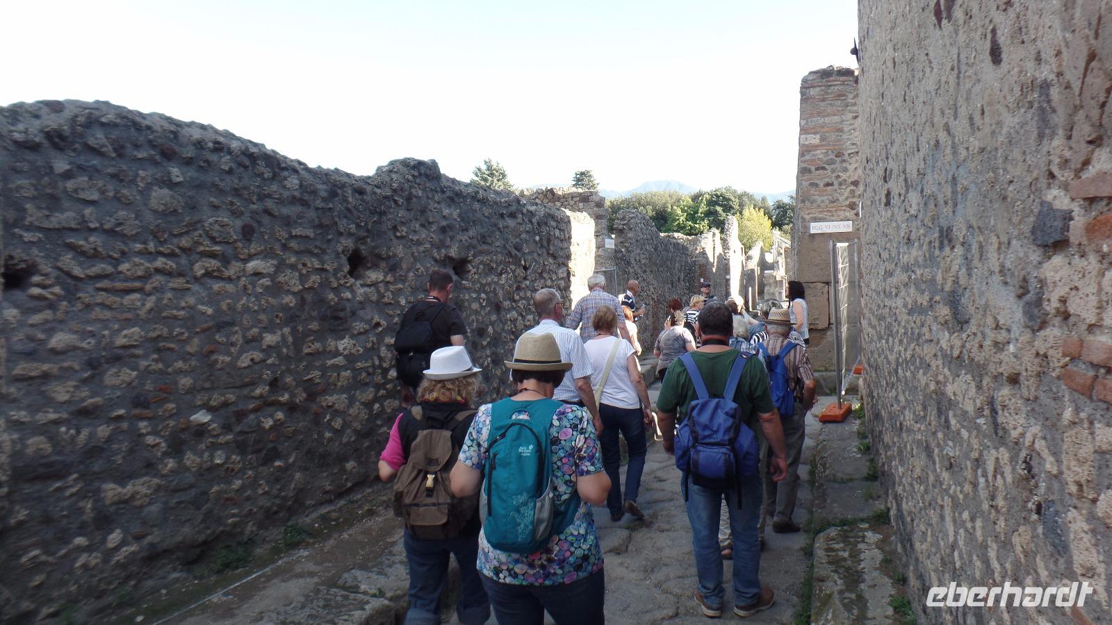 Unser nächstes Ziel ist Pompeji. Unser Führer Angelo zeigt uns die archäologischen Ausgrabungen und gibt uns sehr interessante umfangreiche Informationen zum Leben in der Stadt im ersten Jahrhundert.