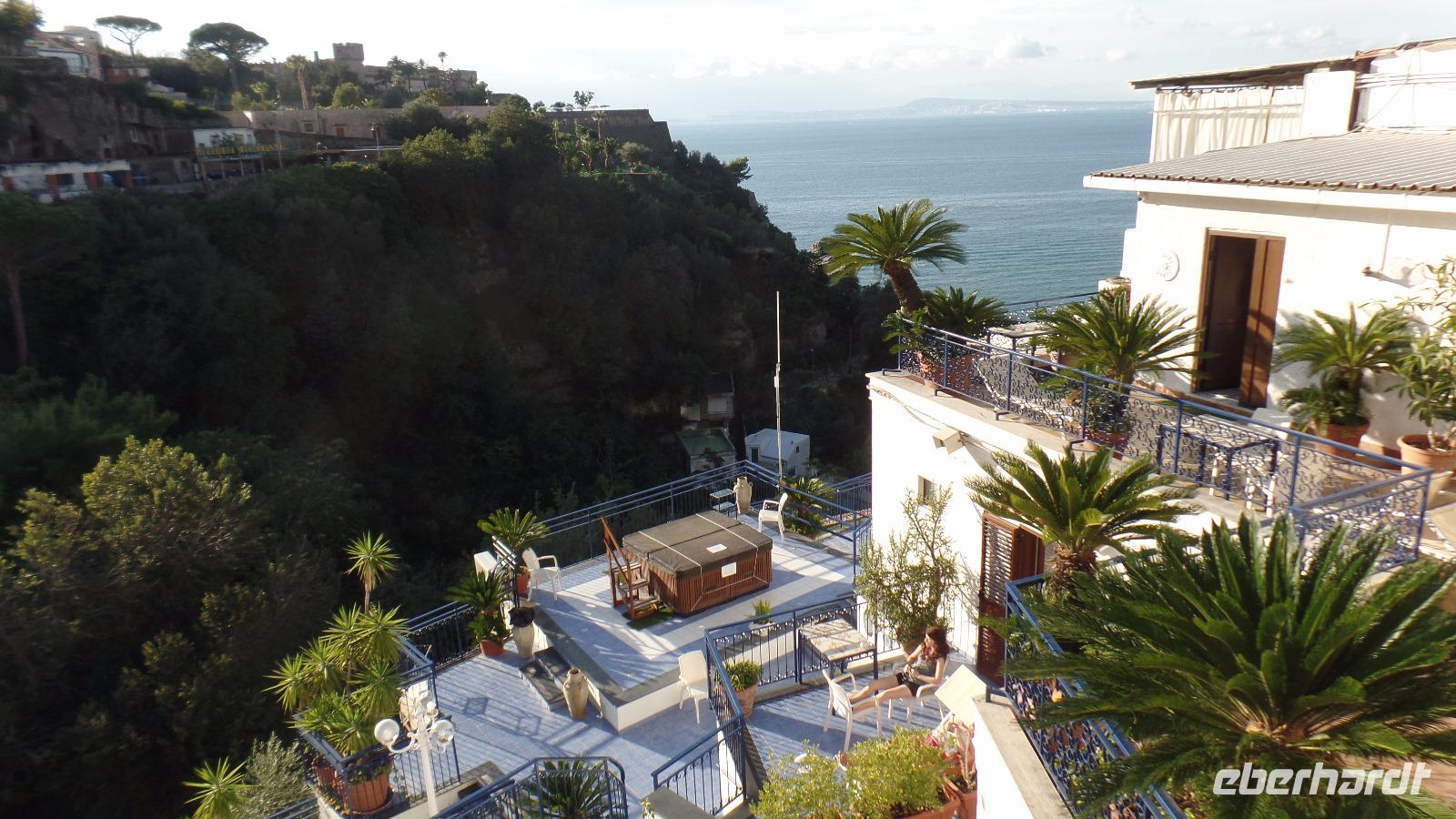 Petra organisiert uns in Sorrent einen Shuttlebus, so dass wir im Dunklen nicht die vielen Stufen in den Ort hinaufsteigen müssen. Unser Bus bringt uns ins Hotel zurück.
