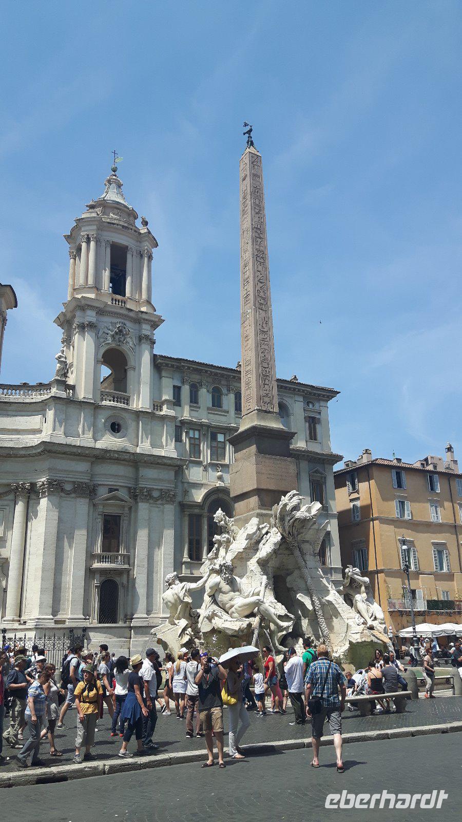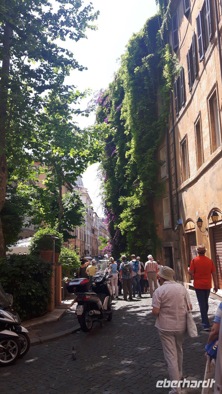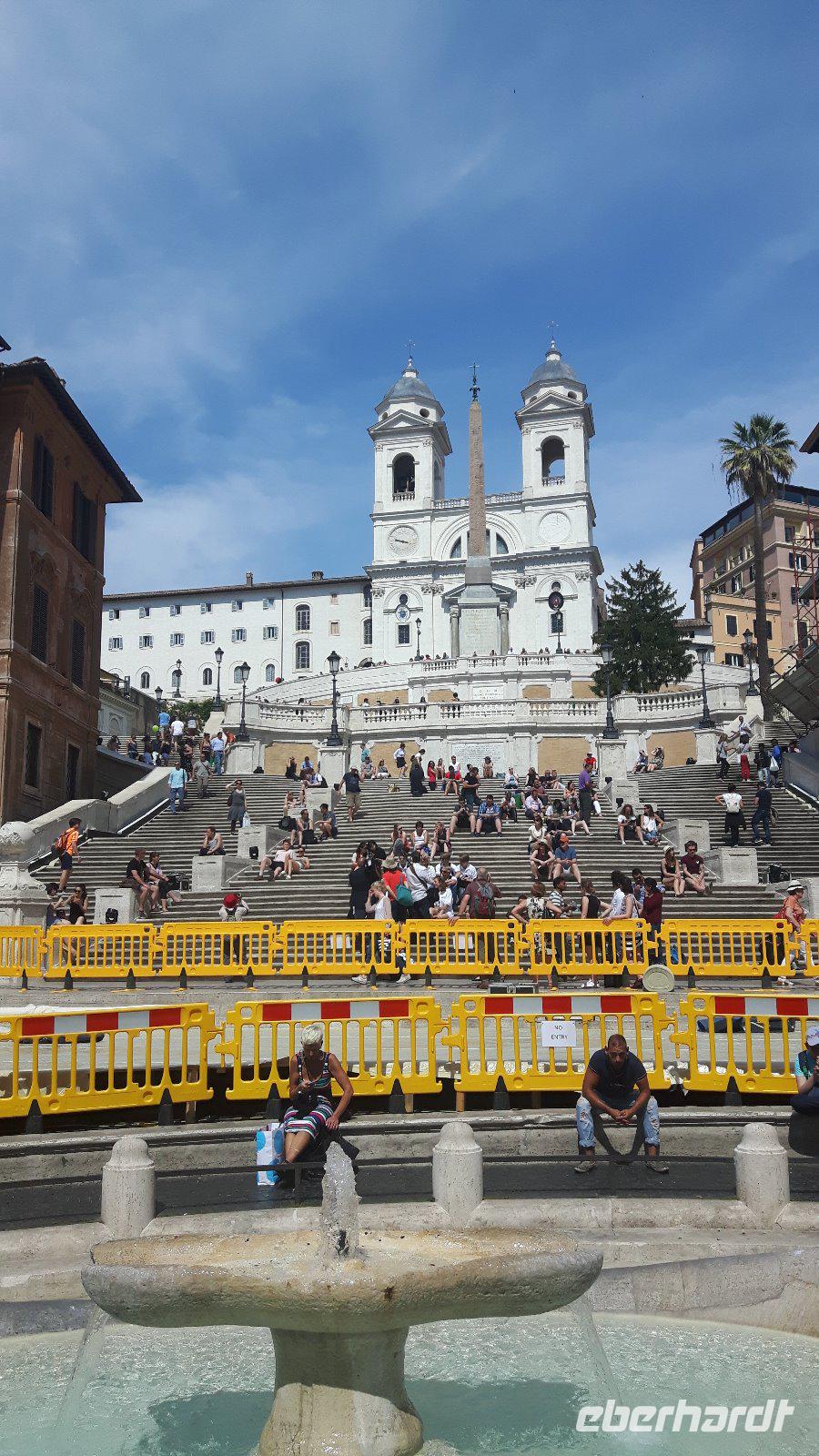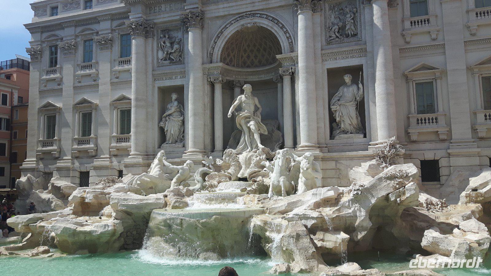Nach dem Frühstück fuhren wir gemeinsam mit den öffentlichen Verkehrsmitteln in die Stadt hinein. Wir testeten gleich beiden Metro-Linien Roms - ein echtes Abenteuer! Am Hauptbahnhof (Termini) mussten wir nämlich umsteigen und die Metro war derart überfüllt, dass wir nur in zwei Etappen an unser erstes Ziel des heutigen Tages gelangten. Zum Glück war unser Buschauffeur Maik mit von der Partie, was mir als Reiseleiterin die ganze Sache erleichterte. Freude machte sich breit, als wir wieder als Gruppe komplett waren und nach einem kleinen Spaziergang am Petersplatz, dem Zentrum der katholischen Christenheit, ankamen. Wenn man dann von hier nach ganz rechts oben schaut, sieht man das Arbeitszimmer des Papstes im letzten Stock des Apostolischen Palastes, zweites Fenster von rechts. Immer sonntags um zwölf Uhr spricht er hier das Angelus-Gebet. Auch die Schweizergarde ist unter den Kolonnaden des Bernini zu erspähen - ja, es sind immer noch echte Schweizer, und auch die Uniform ist noch die, welche Michelangelo entworfen hat. Die Perterskirche, die größte Kirche der Christenheit, befindet sich - und das ist schon etwas kurios - ebenfalls im kleinsten Staat der Welt, der mit seinen 44 Hektar Staatsgebiet nicht größer als ein mittlerer Bauernhof ist. Wir passierten zunächst ohne lange Wartezeiten die Sicherheitskontrolle und endlich war es dann soweit, wir waren in der gewaltige Peterskirche angekommen. Allein der Baldachin über dem Petrus-Grab ist genial! Der Petersdom ist bekannterweise die größte christliche Kirche der Welt und fasst Zehntausende von Menschen. Hier ist nach christlichen Überlieferungen der Apostel Petrus begraben und der Papst hält fast alle seiner Messen hier. Die Kirche beherbergt natürlich auch zahlreiche Kunstwerke, zum Beispiel die hinter Glas stehende „Pietà" von Michelangelo. Interessant ist auch die Statue des heiligen Petrus, deren Füße traditionsgemäß von den Pilgern geküsst werden. Jeder konnte sich nach den Erläuterungen von Sylvia selbst umschauen und nach etwas Freizeit am Petersplatz traf sich die Gruppe wieder und wir schlenderten weiter in Richtung Engelsburg, ursprünglich einem Grabmal für Kaiser Hadrian. Den heutigen Namen erhielt das ehemalige Hadrianeum, als im Papst Gregor der Große im 6. Jahrhundert eine göttliche Vision hatte und zwar erschien ihm ein Engel über dem Mausoleum und kündigte damit das Ende der damals herrschenden Pest an, indem er sein Schwert in die Scheide steckte. Heute ist die bronzene Engelsstatue auf der Spitze der Burg dargestellt. Weiter ging es über den Tiber bzw. die berühmte Engelsbrücke zur Piazza Navona, einem wunderschönen Platz inmitten der Stadt! Hier entstand einer der weltweit schönsten Barockbrunnen, der Vier-Ströme-Brunnen (Fontana dei Quattro Fiumi). Die vier megahaften Flussgötter symbolisieren die vier großen Flüsse: Donau, Ganges, Nil und Rio de la Plata. Weiter gelangten wir durch die engen Gassen der Altstadt zum Pantheon - ein Zylinder mit einer Kuppel drauf, die Konstruktion des Pantheons ist einfach total genial! Hier am Pantheon verbrachten wir auch unsere heutige Mittagspause, um uns etwas zu stärken. Satt und zufrieden erreichten wir nunmehr den berühmten und frisch renovierten Trevi-Brunnen. Roms beliebteste Wasserorgel steht auf einem kleinen Platz, umgeben von sechsstöckigen Palazzi. Mit dem Bau schufen sich die Barockpäpste 1750 ein letztes großes Denkmal, denn ihre Macht im Kirchenstaat schwand dahin. Meeresgott Ozeanus braust mit zwei Pferden durch einen Triumphbogen heran. Viele Gäste warfen Münzen in den Brunnen, um nach Rom zurückzukehren. Abschließend gelangten wir zur berühmten Spanischen Treppe. Die beschwingten Balustraden der Spanischen Treppe unter der französischen Kirche Trinita dei Monti sind das harmonische Ergebnis eines jahrzehntelangen Streits zwischen den Päpsten und der französischen Krone. Nach dieser auch heute eindrucksvollen Besichtigung verabschiedeten wir uns von Sylvia, die uns in den letzten zwei Tagen durch „IHRE STADT" geführt hat. Die anschließende Freizeit nutzten die Gäste schließlich für ausgiebige Spaziergänge in der Umgebung der berühmten Spanischen Treppe. Später, im Anschluß an ein typisches Pasta-Abendessen nahe der Engelsburg, ging es am Abend wiederum in diesmal nicht überfüllten öffentlichen Bussen und der Metro zum Hotel zurück.