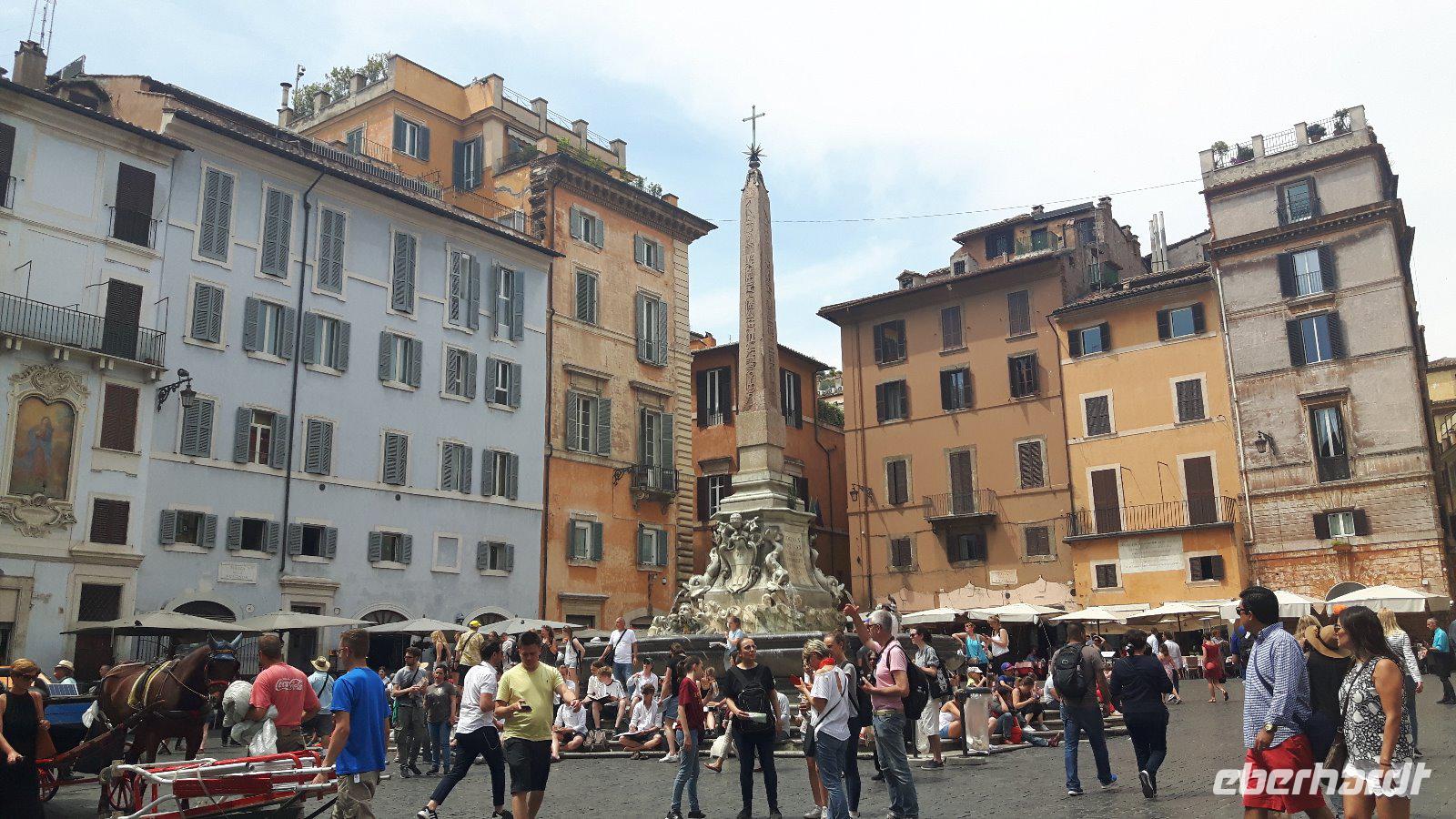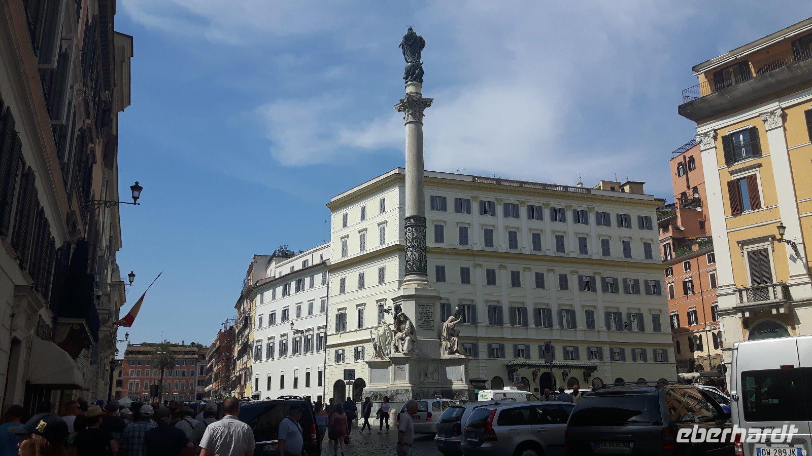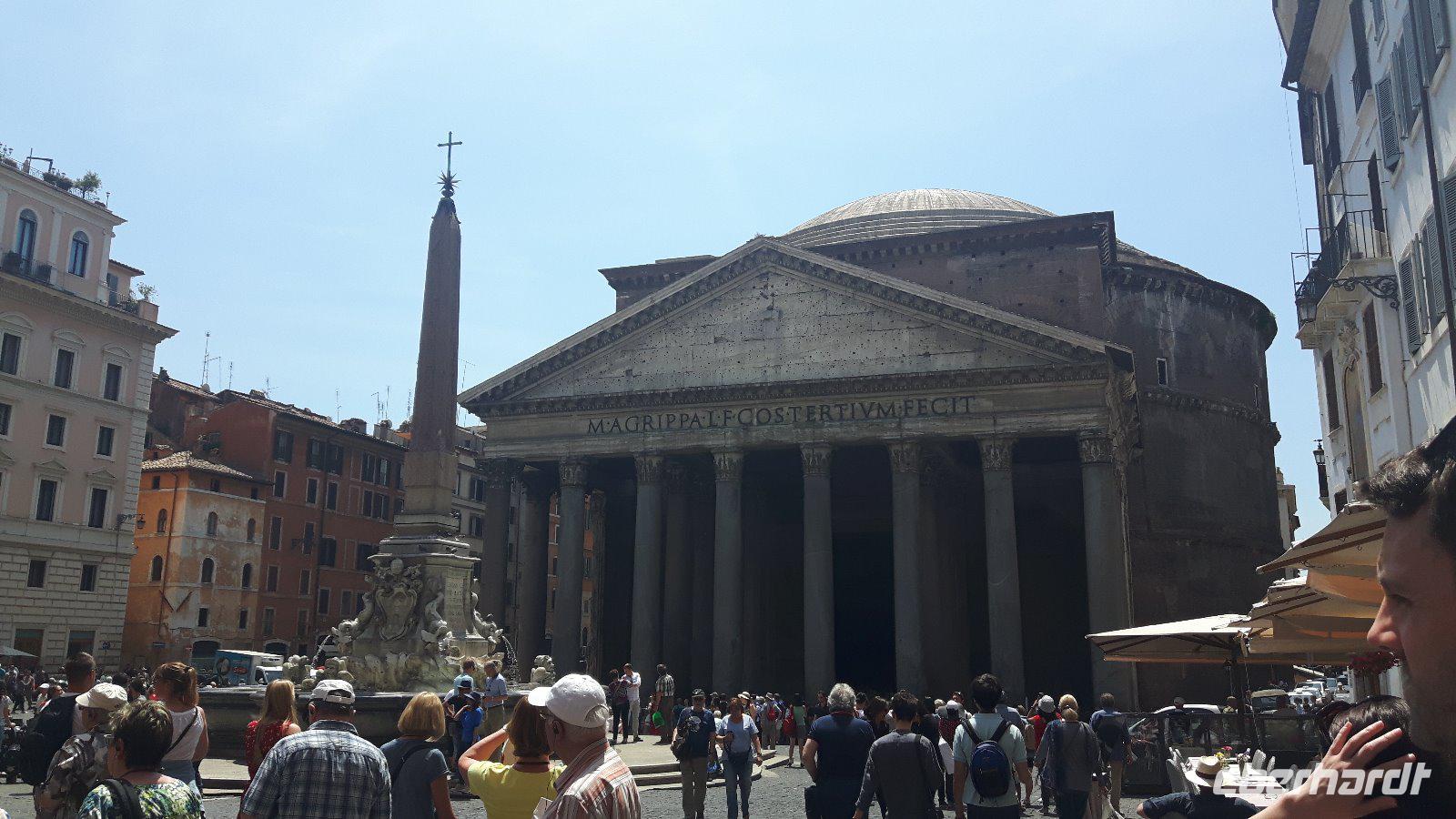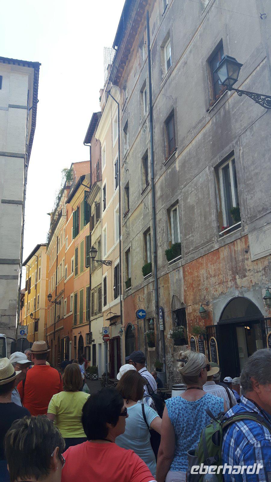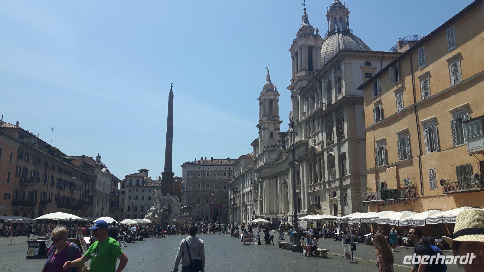 Nach dem Frühstück fuhren wir gemeinsam mit den öffentlichen Verkehrsmitteln in die Stadt hinein. Wir testeten gleich beiden Metro-Linien Roms - ein echtes Abenteuer! Am Hauptbahnhof (Termini) mussten wir nämlich umsteigen und die Metro war derart überfüllt, dass wir nur in zwei Etappen an unser erstes Ziel des heutigen Tages gelangten. Zum Glück war unser Buschauffeur Maik mit von der Partie, was mir als Reiseleiterin die ganze Sache erleichterte. Freude machte sich breit, als wir wieder als Gruppe komplett waren und nach einem kleinen Spaziergang am Petersplatz, dem Zentrum der katholischen Christenheit, ankamen. Wenn man dann von hier nach ganz rechts oben schaut, sieht man das Arbeitszimmer des Papstes im letzten Stock des Apostolischen Palastes, zweites Fenster von rechts. Immer sonntags um zwölf Uhr spricht er hier das Angelus-Gebet. Auch die Schweizergarde ist unter den Kolonnaden des Bernini zu erspähen - ja, es sind immer noch echte Schweizer, und auch die Uniform ist noch die, welche Michelangelo entworfen hat. Die Perterskirche, die größte Kirche der Christenheit, befindet sich - und das ist schon etwas kurios - ebenfalls im kleinsten Staat der Welt, der mit seinen 44 Hektar Staatsgebiet nicht größer als ein mittlerer Bauernhof ist. Wir passierten zunächst ohne lange Wartezeiten die Sicherheitskontrolle und endlich war es dann soweit, wir waren in der gewaltige Peterskirche angekommen. Allein der Baldachin über dem Petrus-Grab ist genial! Der Petersdom ist bekannterweise die größte christliche Kirche der Welt und fasst Zehntausende von Menschen. Hier ist nach christlichen Überlieferungen der Apostel Petrus begraben und der Papst hält fast alle seiner Messen hier. Die Kirche beherbergt natürlich auch zahlreiche Kunstwerke, zum Beispiel die hinter Glas stehende „Pietà" von Michelangelo. Interessant ist auch die Statue des heiligen Petrus, deren Füße traditionsgemäß von den Pilgern geküsst werden. Jeder konnte sich nach den Erläuterungen von Sylvia selbst umschauen und nach etwas Freizeit am Petersplatz traf sich die Gruppe wieder und wir schlenderten weiter in Richtung Engelsburg, ursprünglich einem Grabmal für Kaiser Hadrian. Den heutigen Namen erhielt das ehemalige Hadrianeum, als im Papst Gregor der Große im 6. Jahrhundert eine göttliche Vision hatte und zwar erschien ihm ein Engel über dem Mausoleum und kündigte damit das Ende der damals herrschenden Pest an, indem er sein Schwert in die Scheide steckte. Heute ist die bronzene Engelsstatue auf der Spitze der Burg dargestellt. Weiter ging es über den Tiber bzw. die berühmte Engelsbrücke zur Piazza Navona, einem wunderschönen Platz inmitten der Stadt! Hier entstand einer der weltweit schönsten Barockbrunnen, der Vier-Ströme-Brunnen (Fontana dei Quattro Fiumi). Die vier megahaften Flussgötter symbolisieren die vier großen Flüsse: Donau, Ganges, Nil und Rio de la Plata. Weiter gelangten wir durch die engen Gassen der Altstadt zum Pantheon - ein Zylinder mit einer Kuppel drauf, die Konstruktion des Pantheons ist einfach total genial! Hier am Pantheon verbrachten wir auch unsere heutige Mittagspause, um uns etwas zu stärken. Satt und zufrieden erreichten wir nunmehr den berühmten und frisch renovierten Trevi-Brunnen. Roms beliebteste Wasserorgel steht auf einem kleinen Platz, umgeben von sechsstöckigen Palazzi. Mit dem Bau schufen sich die Barockpäpste 1750 ein letztes großes Denkmal, denn ihre Macht im Kirchenstaat schwand dahin. Meeresgott Ozeanus braust mit zwei Pferden durch einen Triumphbogen heran. Viele Gäste warfen Münzen in den Brunnen, um nach Rom zurückzukehren. Abschließend gelangten wir zur berühmten Spanischen Treppe. Die beschwingten Balustraden der Spanischen Treppe unter der französischen Kirche Trinita dei Monti sind das harmonische Ergebnis eines jahrzehntelangen Streits zwischen den Päpsten und der französischen Krone. Nach dieser auch heute eindrucksvollen Besichtigung verabschiedeten wir uns von Sylvia, die uns in den letzten zwei Tagen durch „IHRE STADT" geführt hat. Die anschließende Freizeit nutzten die Gäste schließlich für ausgiebige Spaziergänge in der Umgebung der berühmten Spanischen Treppe. Später, im Anschluß an ein typisches Pasta-Abendessen nahe der Engelsburg, ging es am Abend wiederum in diesmal nicht überfüllten öffentlichen Bussen und der Metro zum Hotel zurück.