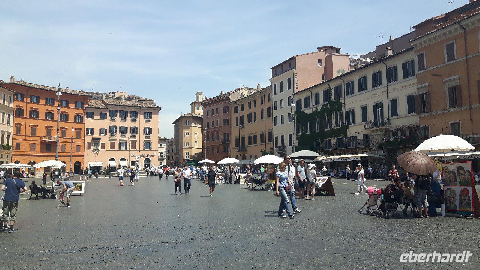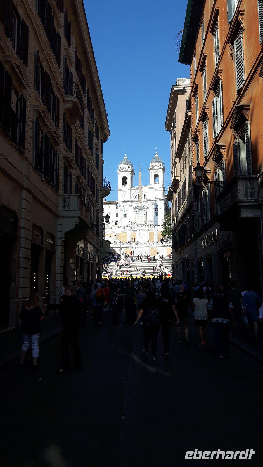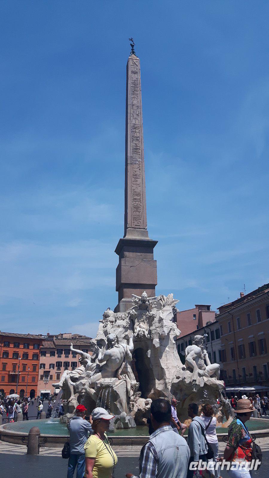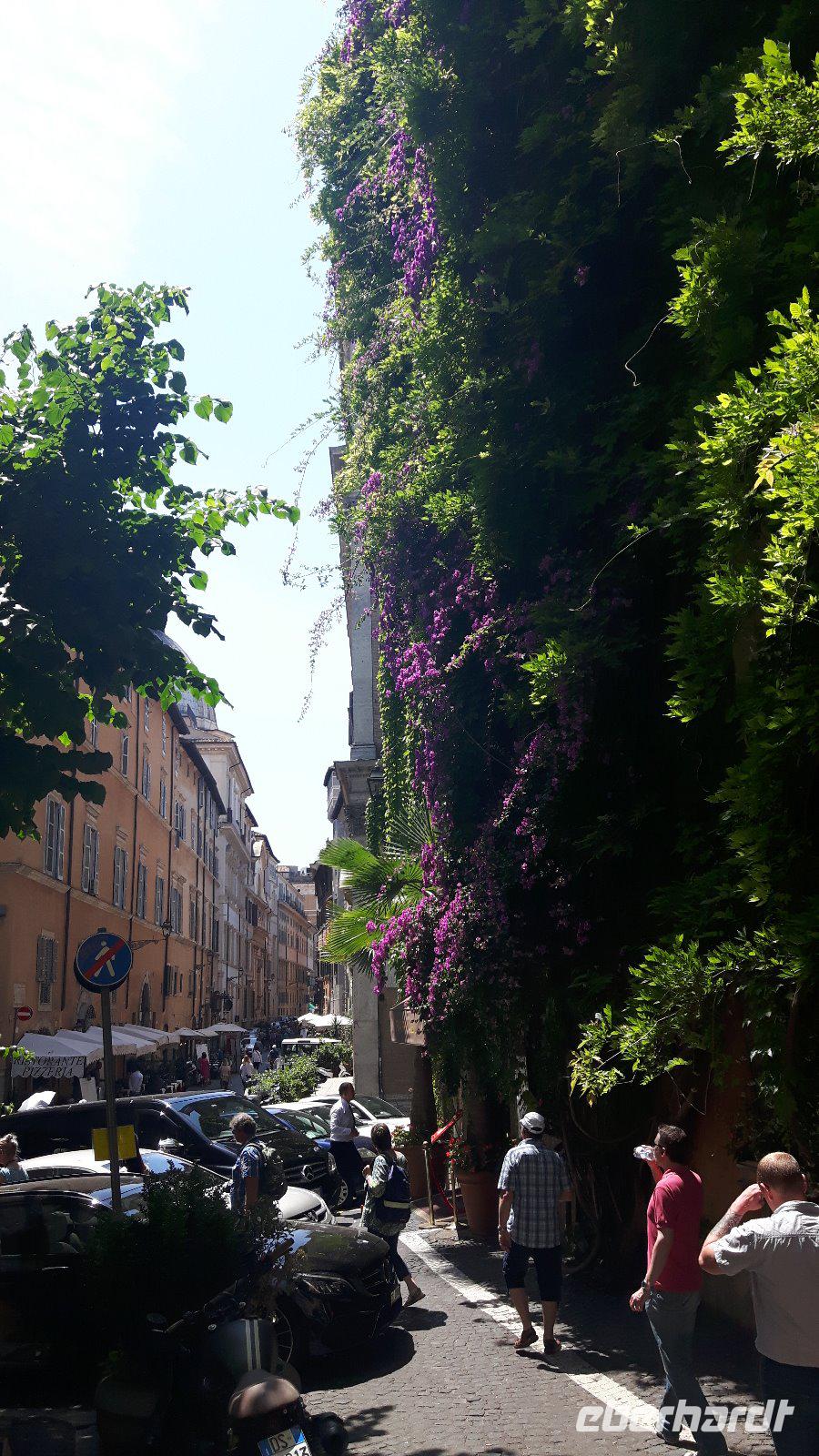 Nach dem Frühstück fuhren wir gemeinsam mit den öffentlichen Verkehrsmitteln in die Stadt hinein. Wir testeten gleich beiden Metro-Linien Roms - ein echtes Abenteuer! Am Hauptbahnhof (Termini) mussten wir nämlich umsteigen und die Metro war derart überfüllt, dass wir nur in zwei Etappen an unser erstes Ziel des heutigen Tages gelangten. Zum Glück war unser Buschauffeur Maik mit von der Partie, was mir als Reiseleiterin die ganze Sache erleichterte. Freude machte sich breit, als wir wieder als Gruppe komplett waren und nach einem kleinen Spaziergang am Petersplatz, dem Zentrum der katholischen Christenheit, ankamen. Wenn man dann von hier nach ganz rechts oben schaut, sieht man das Arbeitszimmer des Papstes im letzten Stock des Apostolischen Palastes, zweites Fenster von rechts. Immer sonntags um zwölf Uhr spricht er hier das Angelus-Gebet. Auch die Schweizergarde ist unter den Kolonnaden des Bernini zu erspähen - ja, es sind immer noch echte Schweizer, und auch die Uniform ist noch die, welche Michelangelo entworfen hat. Die Perterskirche, die größte Kirche der Christenheit, befindet sich - und das ist schon etwas kurios - ebenfalls im kleinsten Staat der Welt, der mit seinen 44 Hektar Staatsgebiet nicht größer als ein mittlerer Bauernhof ist. Wir passierten zunächst ohne lange Wartezeiten die Sicherheitskontrolle und endlich war es dann soweit, wir waren in der gewaltige Peterskirche angekommen. Allein der Baldachin über dem Petrus-Grab ist genial! Der Petersdom ist bekannterweise die größte christliche Kirche der Welt und fasst Zehntausende von Menschen. Hier ist nach christlichen Überlieferungen der Apostel Petrus begraben und der Papst hält fast alle seiner Messen hier. Die Kirche beherbergt natürlich auch zahlreiche Kunstwerke, zum Beispiel die hinter Glas stehende „Pietà" von Michelangelo. Interessant ist auch die Statue des heiligen Petrus, deren Füße traditionsgemäß von den Pilgern geküsst werden. Jeder konnte sich nach den Erläuterungen von Sylvia selbst umschauen und nach etwas Freizeit am Petersplatz traf sich die Gruppe wieder und wir schlenderten weiter in Richtung Engelsburg, ursprünglich einem Grabmal für Kaiser Hadrian. Den heutigen Namen erhielt das ehemalige Hadrianeum, als im Papst Gregor der Große im 6. Jahrhundert eine göttliche Vision hatte und zwar erschien ihm ein Engel über dem Mausoleum und kündigte damit das Ende der damals herrschenden Pest an, indem er sein Schwert in die Scheide steckte. Heute ist die bronzene Engelsstatue auf der Spitze der Burg dargestellt. Weiter ging es über den Tiber bzw. die berühmte Engelsbrücke zur Piazza Navona, einem wunderschönen Platz inmitten der Stadt! Hier entstand einer der weltweit schönsten Barockbrunnen, der Vier-Ströme-Brunnen (Fontana dei Quattro Fiumi). Die vier megahaften Flussgötter symbolisieren die vier großen Flüsse: Donau, Ganges, Nil und Rio de la Plata. Weiter gelangten wir durch die engen Gassen der Altstadt zum Pantheon - ein Zylinder mit einer Kuppel drauf, die Konstruktion des Pantheons ist einfach total genial! Hier am Pantheon verbrachten wir auch unsere heutige Mittagspause, um uns etwas zu stärken. Satt und zufrieden erreichten wir nunmehr den berühmten und frisch renovierten Trevi-Brunnen. Roms beliebteste Wasserorgel steht auf einem kleinen Platz, umgeben von sechsstöckigen Palazzi. Mit dem Bau schufen sich die Barockpäpste 1750 ein letztes großes Denkmal, denn ihre Macht im Kirchenstaat schwand dahin. Meeresgott Ozeanus braust mit zwei Pferden durch einen Triumphbogen heran. Viele Gäste warfen Münzen in den Brunnen, um nach Rom zurückzukehren. Abschließend gelangten wir zur berühmten Spanischen Treppe. Die beschwingten Balustraden der Spanischen Treppe unter der französischen Kirche Trinita dei Monti sind das harmonische Ergebnis eines jahrzehntelangen Streits zwischen den Päpsten und der französischen Krone. Nach dieser auch heute eindrucksvollen Besichtigung verabschiedeten wir uns von Sylvia, die uns in den letzten zwei Tagen durch „IHRE STADT" geführt hat. Die anschließende Freizeit nutzten die Gäste schließlich für ausgiebige Spaziergänge in der Umgebung der berühmten Spanischen Treppe. Später, im Anschluß an ein typisches Pasta-Abendessen nahe der Engelsburg, ging es am Abend wiederum in diesmal nicht überfüllten öffentlichen Bussen und der Metro zum Hotel zurück.