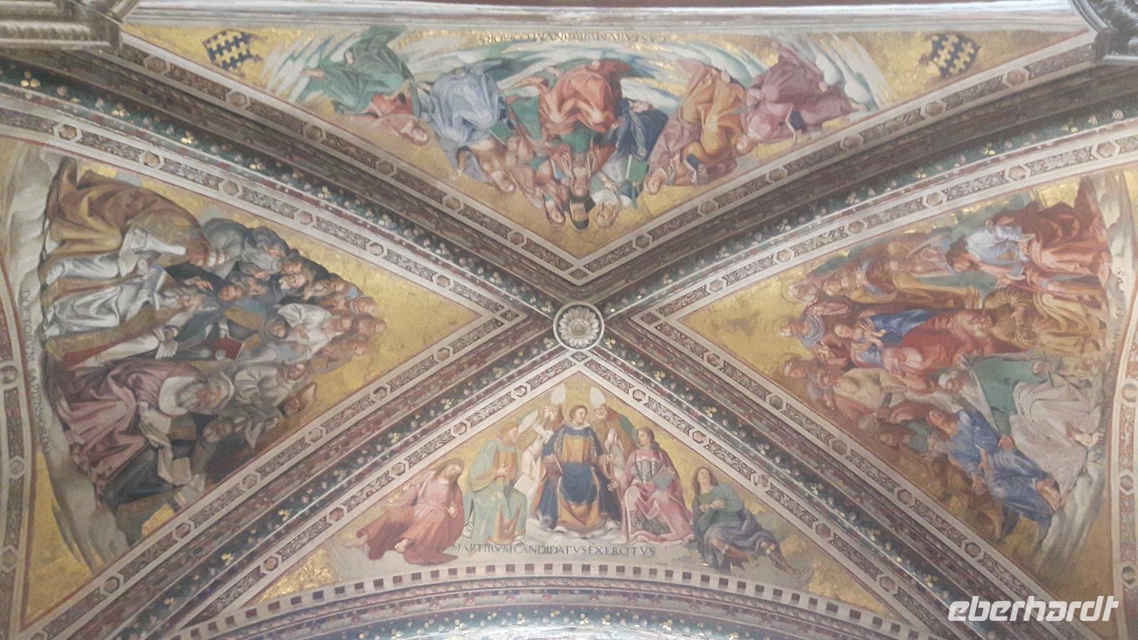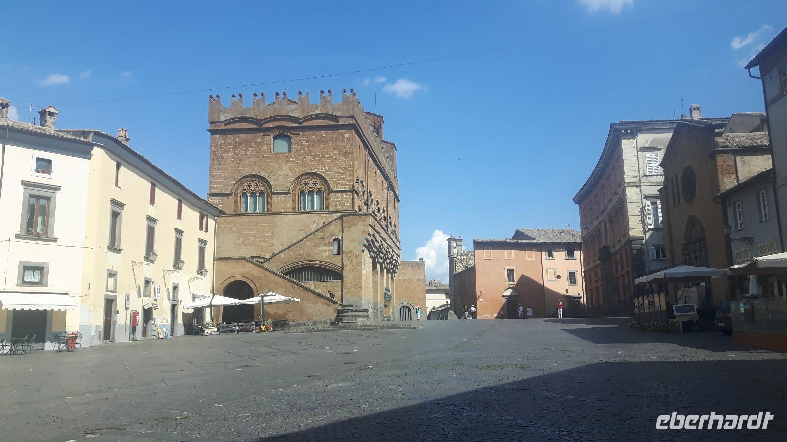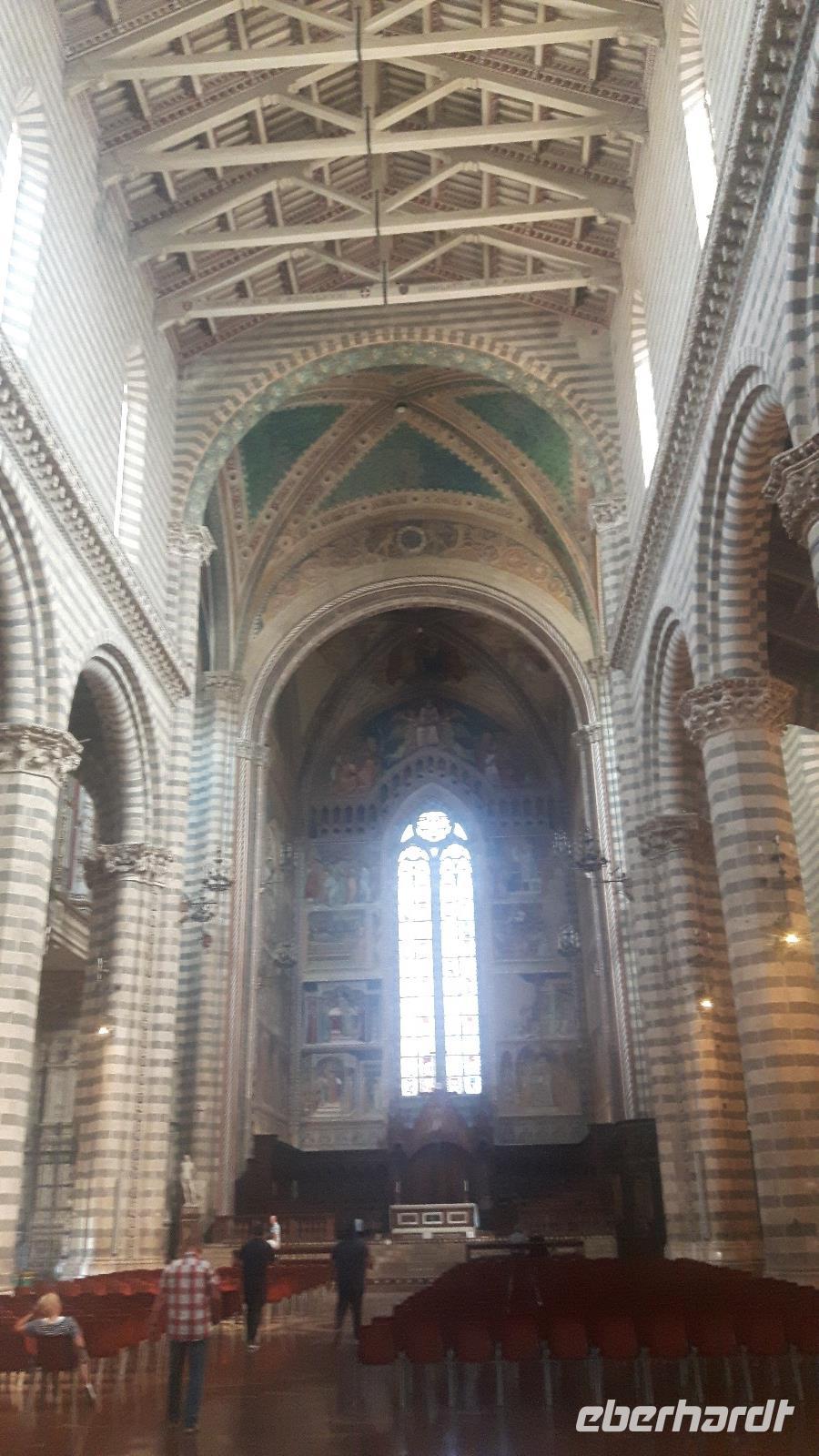 Wir frühstückten reichhaltig - was zumindest italienische Verhältnisse angeht! Einem Italiener ist nämlich immer wieder völlig unklar, wie wir Deutschen bereits am Morgen so viel essen können... Gut gestärkt starteten wir also am frühen Morgen, es ging zunächst hinein in die weitläufige Po-Ebene, an Verona und Mantua vorbei. Südlich von Mantua überquerten wir übrigens den Po, den längsten Strom Italiens. Wenig später erreichten wir Modena, wo dann übrigens nach insgesamt 333 Kilometern auch die Brennerautobahn endete und wir auf die Autostrada del Sole trafen! Die Route führte uns nunmehr am Südrand der Po-Ebene entlang bis Bologna und dann bereits hinein in den tosco-emilianisch-romagnolischen Apennin. Der Scheitelpunkt der Autobahn lag ehemals auf über 700 Metern, allerdings gibt es nunmehr seit fast drei Jahren eine neue Autobahn, die durch zahlreiche Tunnel geprägt ist und somit regelrecht durch diesen Gebirgszug hindurch führt. Dadurch erspart man sich sehr viel Zeit und Nerven und ist einfach schneller unterwegs, so dass wir früher als gedacht in der Toskana ankamen! Florenz, die Hauptstadt dieser Region, ließen wir heute leider nur links liegen, aber zumindest konnten wir von der Autobahn aus die Kuppel des Domes erspähen. Wir genossen die weitere Fahrt durch die typische sanft gewellte Hügellandschaft der Toskana - zumindest jetzt wurden alle Klischees erfüllt, die wir über die Toskana gehört oder auf Bildern gesehen hatten. Bald schon ging es in die Region Umbrien hinein, dem sogenannten „grüne Herz Italiens". Unser erstes Ziel war nunmehr zum Greifen nah, denn Orvieto konnten wir bereits von der Autobahn aus sehen... Der Ort liegt einzigartig auf einem 300 Meter hohen vulkanischen Tuff-Felsen und wir waren demnach sehr gespannt, was uns hier erwarten würde. Gegen Mittag waren wir mit unserer charmanten Stadtführerin Chiara verabredet und fuhren schließlich gemeinsam mit ihr mit einer Funicolare/Standseilbahn in die Altstadt von Orvieto hinauf. Die Stadt hatte besonders unter den Etruskern eine sehr große Bedeutung und heute gehört sie mit seinen imposanten Baudenkmälern zu den interessantesten Städten Mittelitaliens. Besonderes Augenmerk legten wir auf die Besichtigung des gigantischen Doms, dessen Fassade die kühnste und farbenprächtigste der italienischen Gotik darstellt und auch im Inneren einige Schätze zu bieten hat. Ein Spaziergag durch die Altstadt rundete unseren Besuch in Orvieto ab und mit ersten schönen italienischen Eindrücken begannen wir unsere letzte Fahrt-Etappe des heutigen Tages. Wir hatten schließlich ein Ziel und das hieß Rom! Glücklicherweise ohne Staus erreichten wir gegen 18.30 Uhr das Hotel „Oly", unser Quartier für die nächsten drei Nächte. Hier wurden wir bereits von weiteren 7 Fluggästen erwartet und somit war unsere Reisegruppe mit insgesamt 28 Personen endgültig komplettiert. Unser erstes gemeinsames Abendessen nahmen wir anschließend im hoteleigenen Restaurant ein.