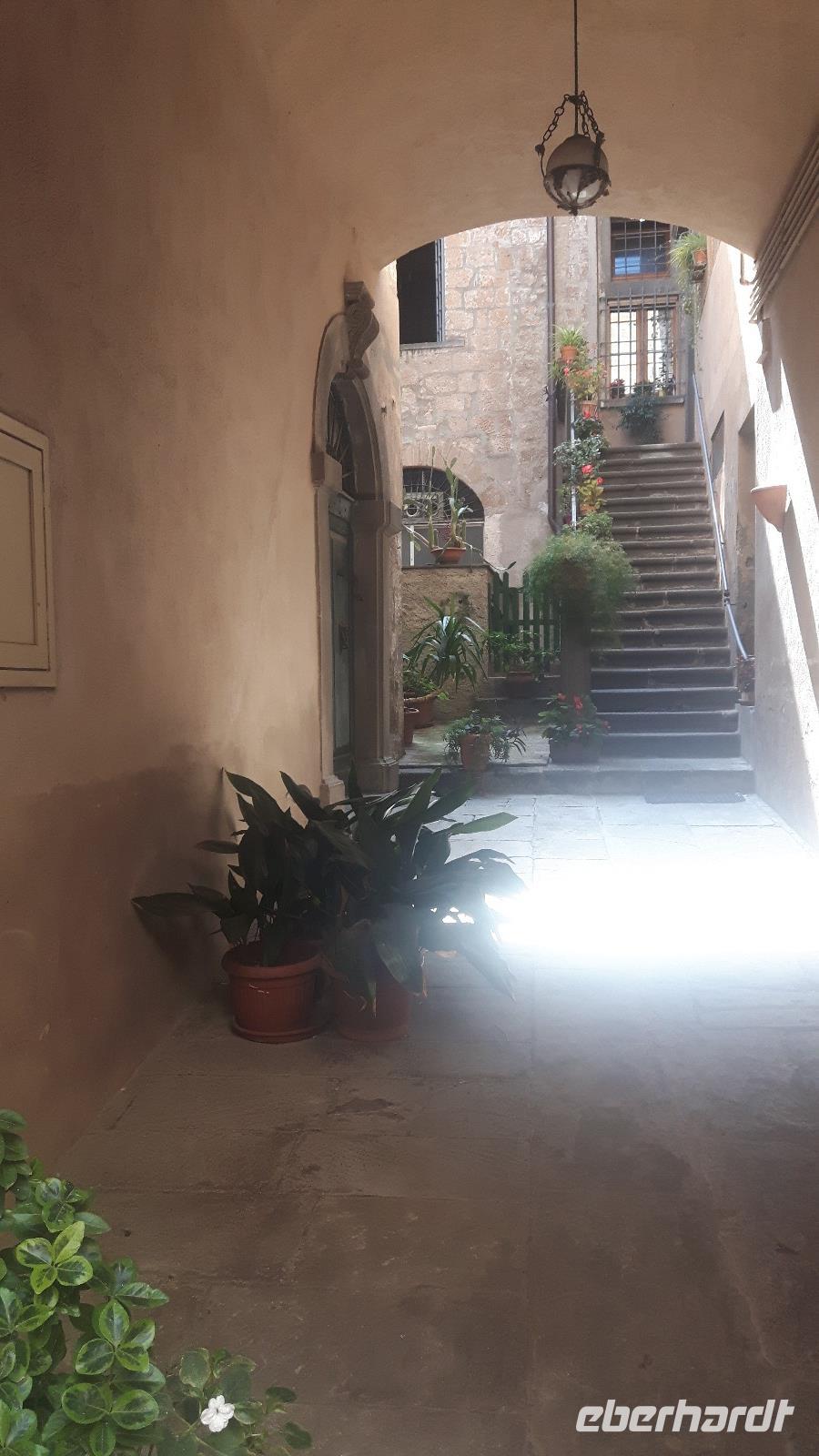 Nachdem unsere Reisegruppe mit 21 Gästen vorerst komplett war, führte uns die Fahrt vorbei an Bayreuth, Nürnberg, Ingolstadt und München in Richtung Inntal. Gegen Mittag passierten wir bereits die Innbrücke zwischen Kiefersfelden und Kufstein und damit auch die deutsch-österreichische Grenze. Durch das wunderschöne Inntal und vorbei an Innsbruck ging es nun hinauf zum Brennerpass, den mit reichlich 1.300 Metern niedrigsten Übergang über die Hauptkette der Alpen und gleichzeitig österreichisch-italienische Grenzpass. Jetzt fuhren wir durch das Südtiroler Eisacktal hinunter nach Bozen und weiter durch das reizvolle Etschtal in Richtung Süden. Nun fuhren wir noch an Trient und Roverteo vorbei und letztendlich verließen wir bei Affi die Brennerautobahn, wir wollten ja erst einmal in die Nähe des Gardasees zur Zwischenübernachtung! Am Abend kamen wir in unserem Hotel „San Zeno" in San Zeno di Montagna an. Dieses Hotel liegt ca. 500 Meter oberhalb des Gardasees und beeindruckte mit tollen Blicken auf diesen oberitalienischen See. Zum Abendessen ließen wir uns ein leckeres 3-Gang-Menü schmecken und natürlich durfte hier die typische italienische Pasta nicht fehlen! Dazu ein Glas Hauswein und müde fielen wir alle ins Bett.
