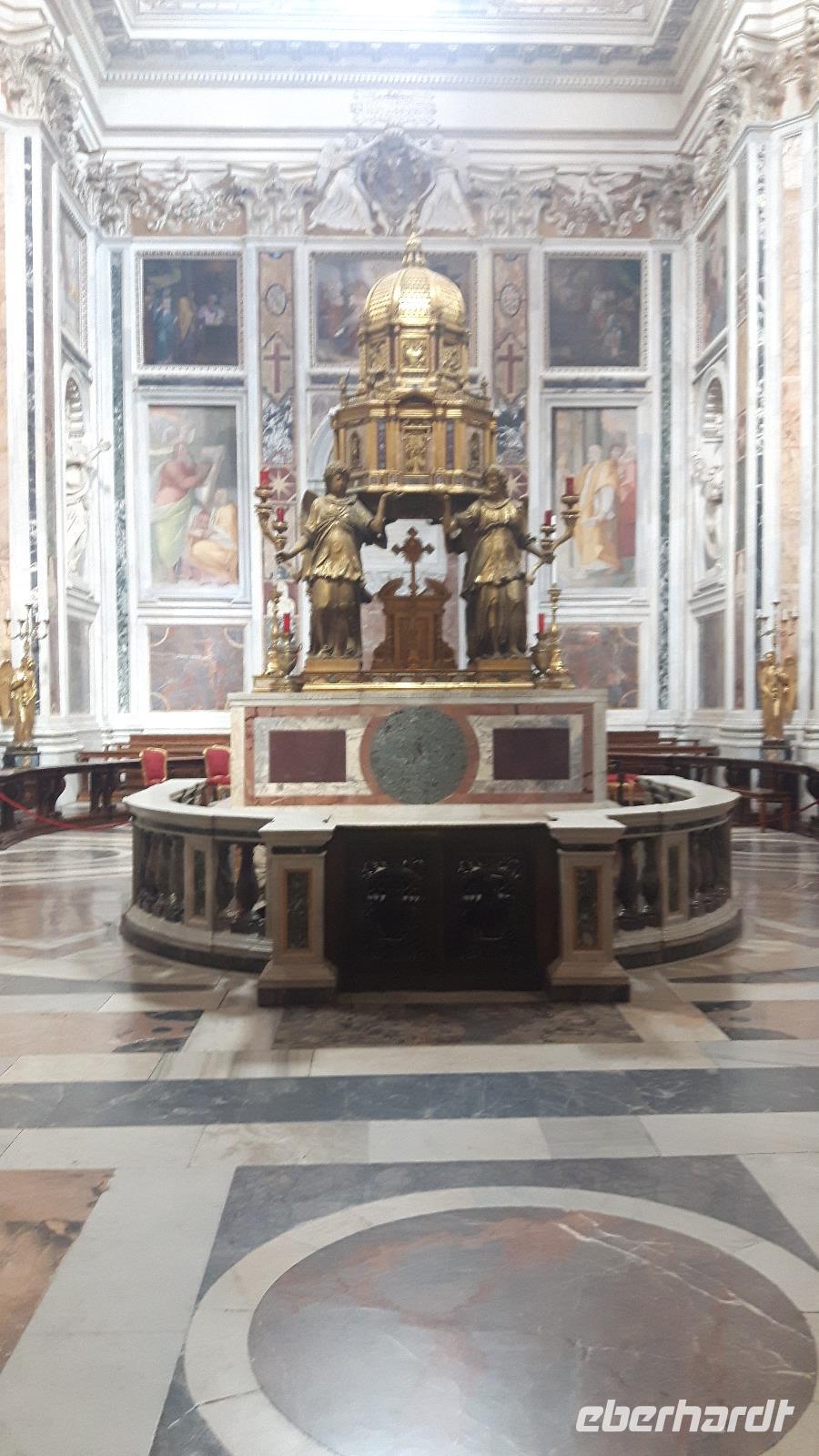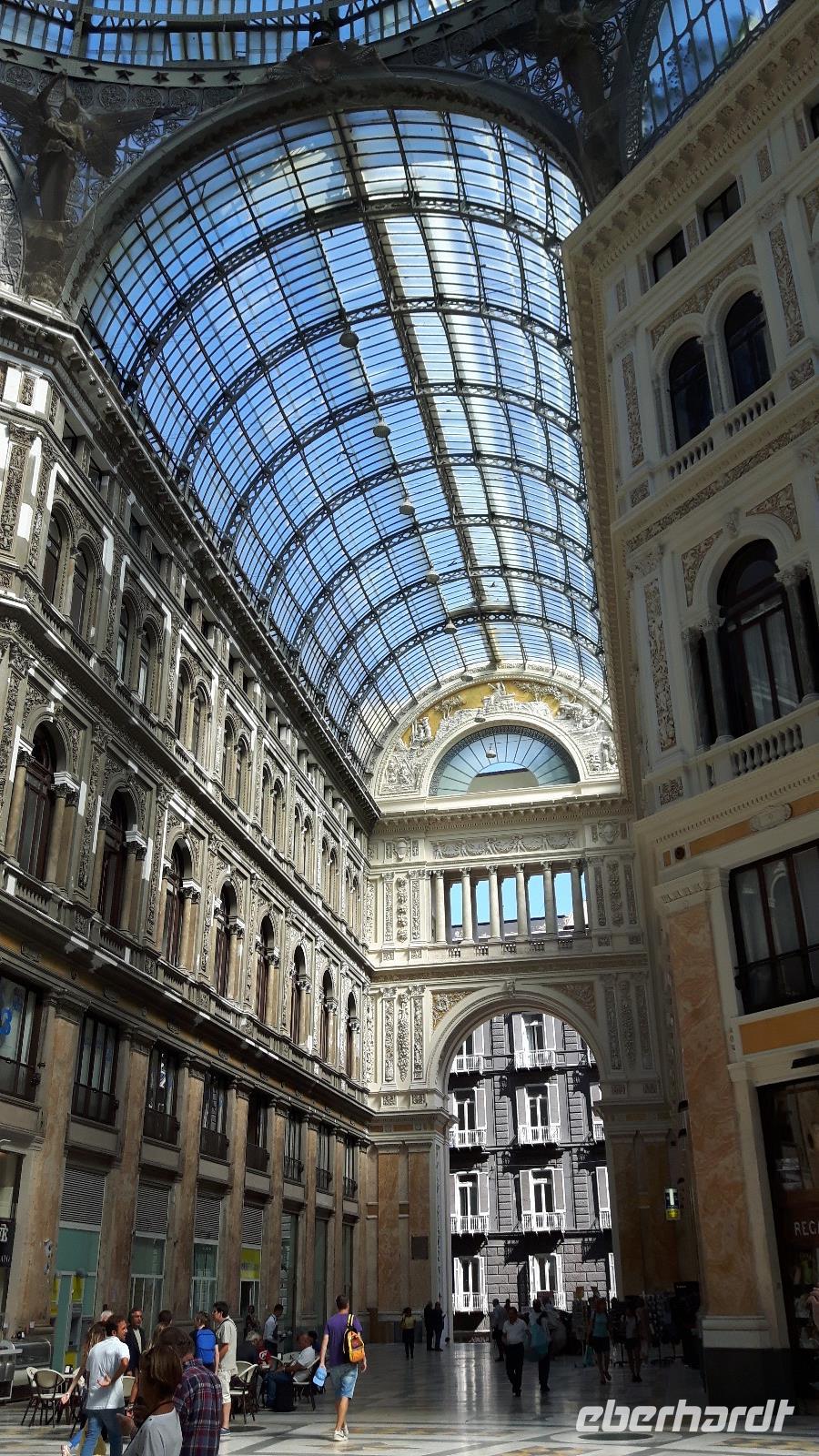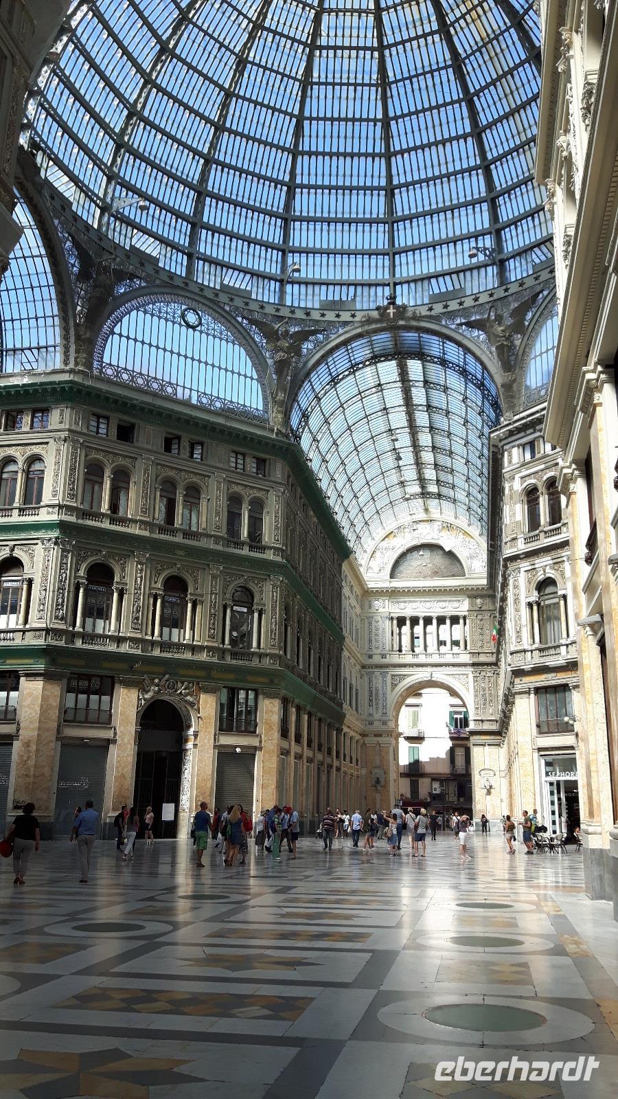 Zunächst besuchten wir allerdings Herculaneum, nur etwa sieben Kilometer vom Gipfel des Vesuvs entfernt gelegen. Hier trafen wir auf unseren neapolitanischen Reiseleiter Antonio, mit dem wir gemeinsam den heutigen Ausflugstag verbrachten. Wenn man Herculaneum mit Pompeji vergleicht, dann war diese Stadt ein eher bescheidener Ort, also nicht vielmehr als ein Fischerdorf, in dem ein wenig Handel betrieben wurde. Der hiesige kleine Hafen war allerdings unbedeutend, denn es fehlte ein schiffbarer Fluss, der die Verbindung zum Hinterland herstellen konnte. Bedeutungsvoll war allerdings die Küstenstraße zum wenige Kilometer entfernten Neapolis, dem antiken Neapel. Was beide Orte jedoch miteinander verbindet, ist die Tatsache, dass an jenem 24. August im Jahre 79 n. Chr., an dem Pompeji unterging, auch das Schicksal von Herculaneum besiegelt wurde. Mit vielen interessanten Eindrücken im Gepäck machten wir uns in Richtung Neapel auf. Mittlerweile war auch die Mittagszeit heran gebrochen und so langsam verspürten wir etwas Hunger - kein Problem, denn was sollte man hier in Neapel unbedingt essen? Natürlich eine typische Pizza Margherita - und die schmeckt in der Heimat der Pizza doch eh am besten...! Die Zutaten sind ganz einfach - Tomate, Basilikum und Mozzarella - einfach lecker! Nach dieser kulinarischen Stärkung gelangten wir mit unserem Bus in die Außenviertel der Stadt und genossen vom Posilipo-Hügel aus einen tollen Blick auf die Dächer Neapels und die gesamte Golfregion - die Sicht war einfach überwältigend! Anschließend besuchten wir die in der Altstadt gelegene Galleria Umberto I, welche Ende des 19. Jahrhunderts erbaut wurde und eine der ersten großen und eleganten Einkaufspassagen weltweit ist. Hinter ihrer prächtigen Fassade mit gigantischen klassizistischen Säulen und kleineren Statuen schraubt sich ein beeindruckendes durchgängiges Glasdach in große Höhe. Bis knapp darunter findet sich klassizistischer Stuck soweit das Auge reicht. Der Fußboden bietet Marmor und Mosaiken mit Sagengestalten, Tiermotiven und Olivenzweigen. In den hohen Schaufenstern der edlen Modegeschäfte zu ebener Erde liegt das aus, was die Welt an Italien so schätzt - elegante italienische Kleidung, stilvolle Ledertaschen und -schuhe. Man findet dort besonders die Mode des nicht enden wollenden neapolitanischen Sommers in gehobener Preiskategorie! Weiter ging es zu Fuß zur Piazza del Plebiscito, einem mit beeindruckenden klassizistischen Gebäuden umgebenen Flanier- und Konzertplatz. Dort steht übrigens auch der große Königspalast Palazzo Reale. Gleich um die Ecke erblickten wir das im 18. Jahrhundert an den Palazzo Reale angebaute berühmte Opernhaus Teatro San Carlo. Die abschließend Freizeit in der Innenstadt nutzte jeder Gast ganz individuell für eigene Erkundungen.