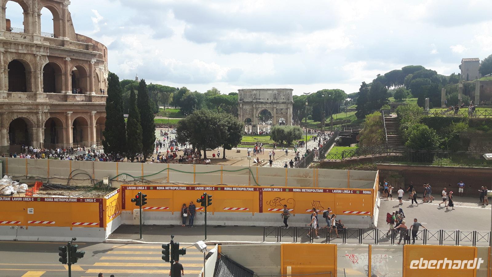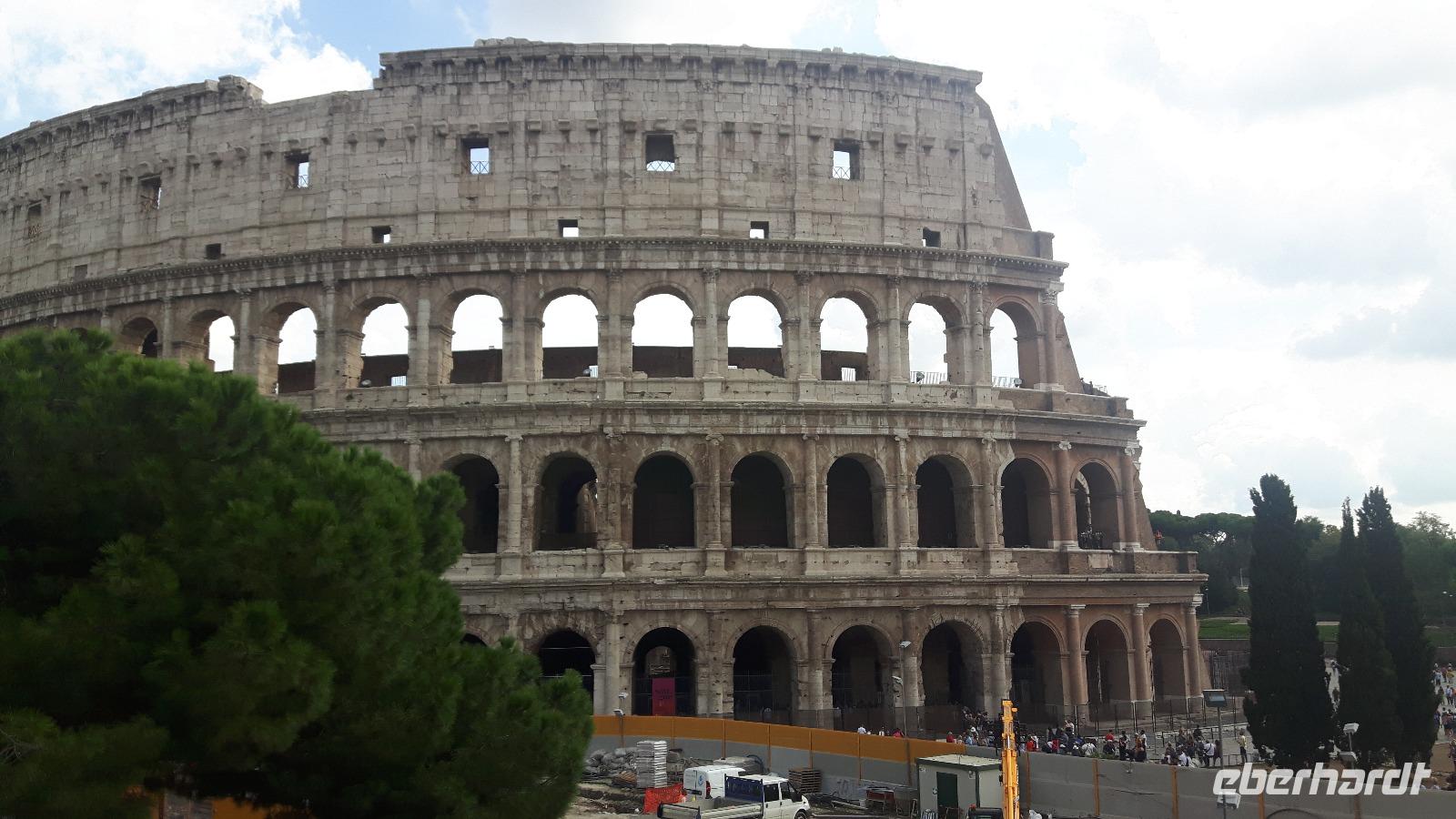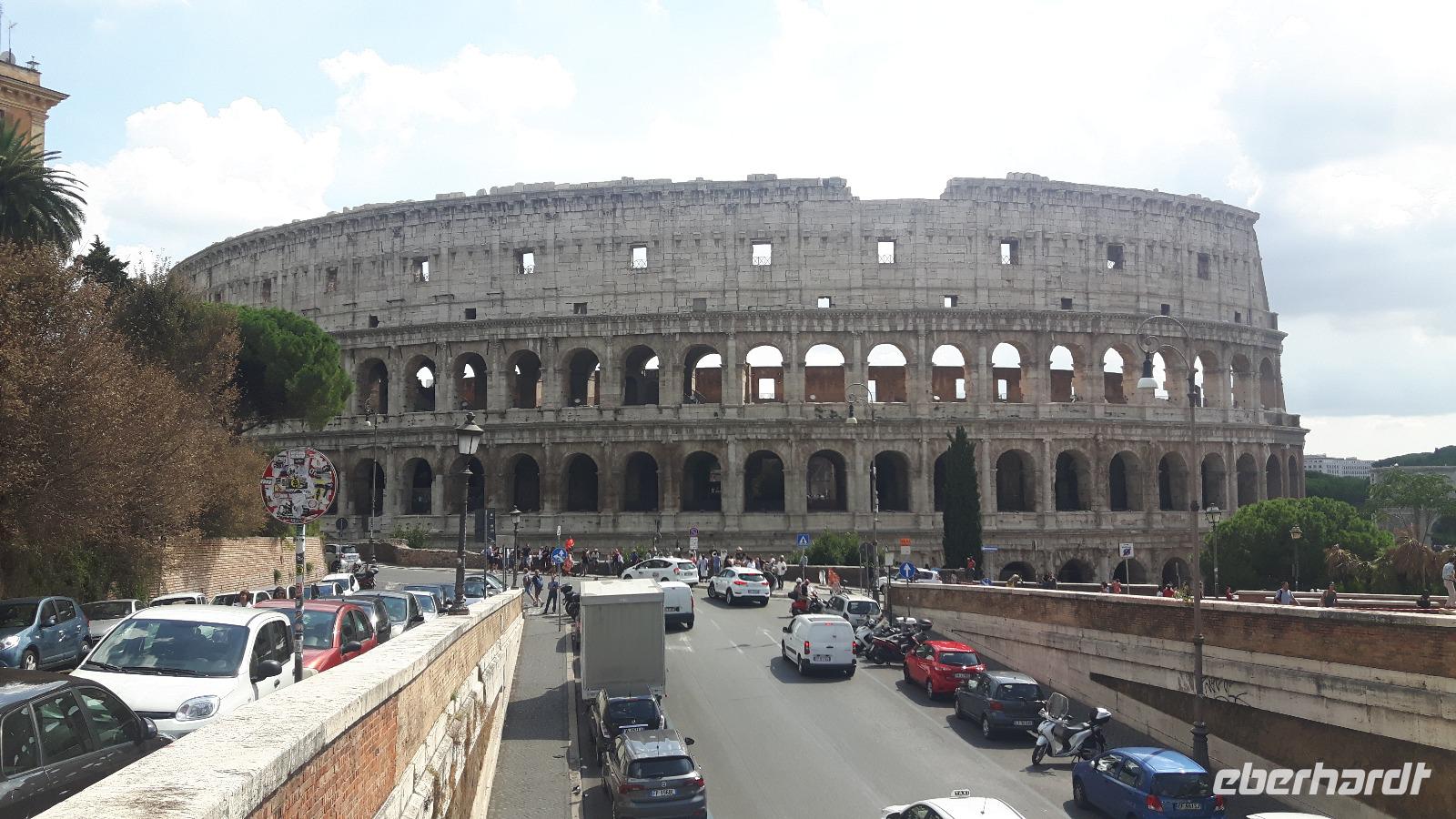 Für die nächsten Tage wurden wir gleich heute Morgen mit Audio-Geräten ausgestattet, damit wir die Führungen ganz intensiv erleben konnten. Unsere nette Stadtführerin Cristina erwartete uns bereits in der Nähe des Ostiense-Bahnhofs und hier begann dann auch sofort die umfangreiche Stadtrundfahrt durch Rom! Diese führte uns unter anderem vorbei an den Caracalla-Termen und berühmten Plätzen und Straßen der Stadt wie der Piazza Venezia mit dem Nationaldenkmal, der Piazza della Repubblica und der Via Nazionale, einer der Haupt-Einkaufsstraßen der Stadt. Einen kleinen Spaziergang unternahmen wir, um den Kapitolshügel zu erklimmen und von dort aus einen Blick auf das Forum Romanum zu werfen, denn von den hiesigen Kaiserforen wurde nicht nur Rom, sondern das ganze Römische Reich regiert und gerade hier lag für fast 1.000 Jahre das Zentrum der Antike. So langsam brach die Mittagszeit herein und wir bekamen etwas Hunger... Unser Bus brachte uns daher in die Nähe der Kirche Santa Maria Maggiore, wo wir erst einmal eine kleine Mittagspause einlegten. Jeder nutzte die Zeit ganz individuell, um ein Stück Pizza bzw. etwas Pasta in einer der zahlreichen kleinen Bars zu essen oder ganz einfach ein leckeres italienisches Eis zu schleckern! Gut gestärkt trafen wir uns wieder und besichtigten gemeinsam die Kirche Santa Maria Maggiore, eine der vier Patriarchalbasiliken Roms. Sie wurde unter Papst Sixtus III. errichtet, nachdem 431 das Konzil von Ephesus Maria, die Mutter Jesu, als Gottes Gebärerin verkündet hatte und dadurch die Marienverehrung aufgeblüht war. Eine letzte kurze Fahrt mit unserem Bus führte uns anschließend zum Oppio-Hügel, wo ein letzter Höhepunkt unseres heutigen Besichtigungsprogramms anstand - das Kolosseum! Kaiser Vespasian begann den Bau 72 n. Chr., sein Sohn Titus weihte die Arena dann nach nur achtjähriger Bauzeit mit hunderttägigen Festspielen ein. Hier hatten wir zum Glück auch noch etwas Freizeit, um das Kolosseum oder auch das Forum Romanum von innen zu besichtigen oder uns in den zahlreichen Straßencafés einen leckeren Cappuccino schmecken zu lassen - einfach himmlisch...! Andere Gäste, die noch etwas Energie übrig hatten, konnten sogar der benachbarten Kirche San Pietro in Vincoli (St. Peter in Ketten) einen Besuch abstatteten. Diese beherbergt nämlich eine große Berühmtheit - das Grabmal Julius II., welches von Michelangelo geschaffen wurde. Im Grabmal sind die Statuen von Rachel, Lea und Mose zu sehen. Vor allem die Moses-Statue gilt als wichtiges Werk Michelangelos. Mose ist dargestellt als Rückkehrer vom Berg Sinai mit den Gesetzestafeln, im Moment als er die Israeliten beim Tanz um das goldene Kalb entdeckt. Der Name der Kirche stammt übrigens - wie es zumindest heißt - von den Ketten, in denen Petrus bis zu seiner Befreiung in Jerusalem gefesselt war. Außerdem soll Petrus diese sie im Mamertinischen Kerker Roms getragen haben. Diese Ketten werden in einer Glasvitrine unter dem Altar der Kirche aufbewahrt. Nach einem leckeren und musikalisch untermalten Abendessen in der Innenstadt kehrten wir gemeinsam mit unserem Bus gegen 21 Uhr zum Hotel zurück. Nun endete ein zwar anstrengender, aber auch sehr eindrucksvoller Tag!