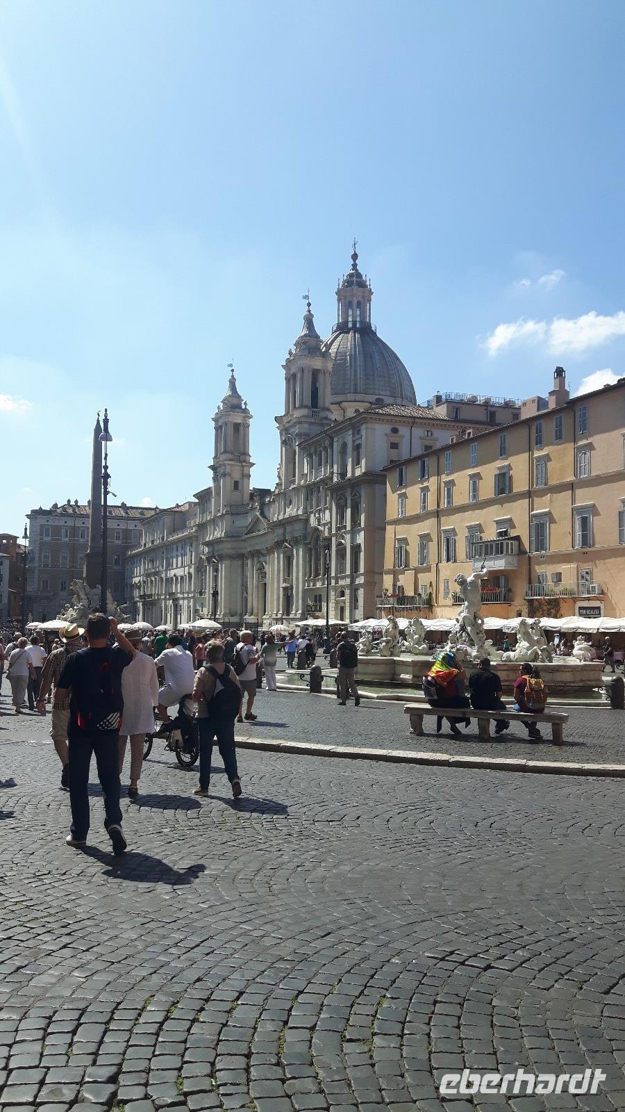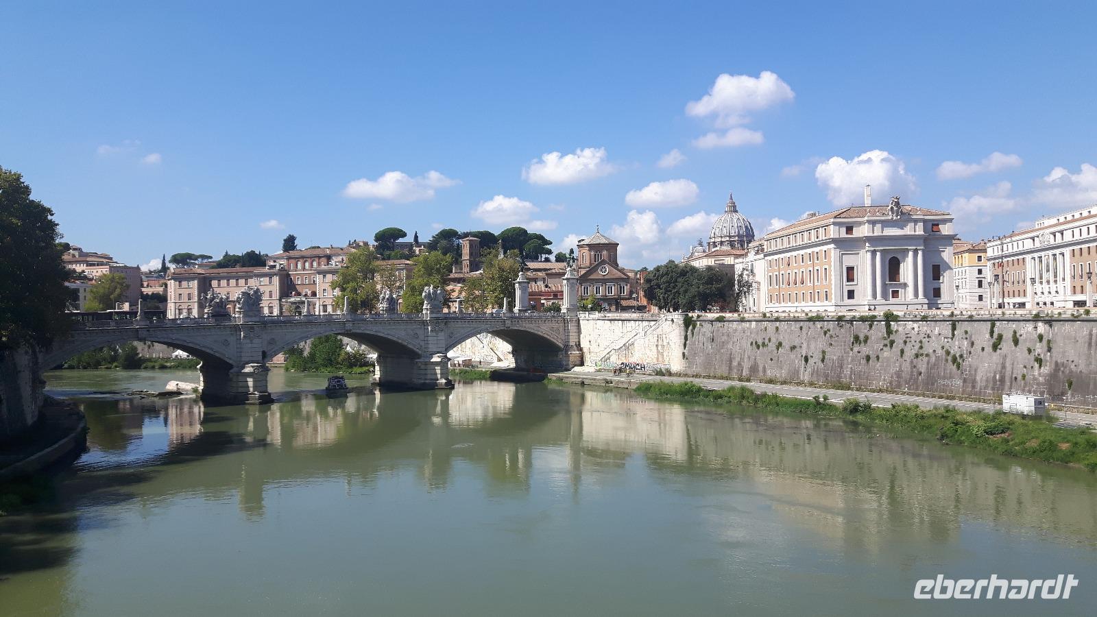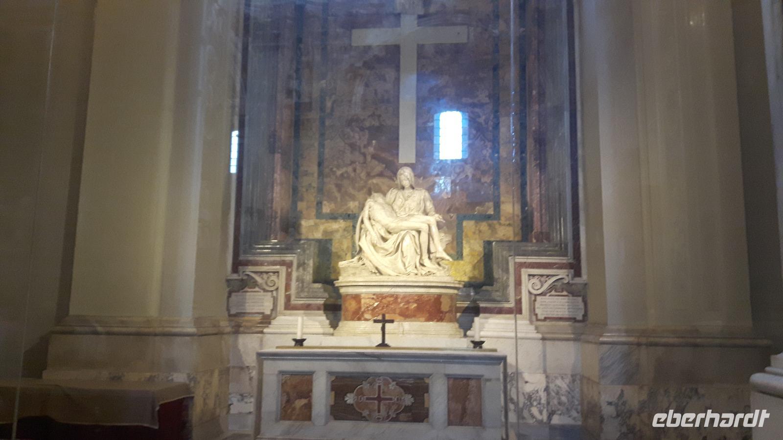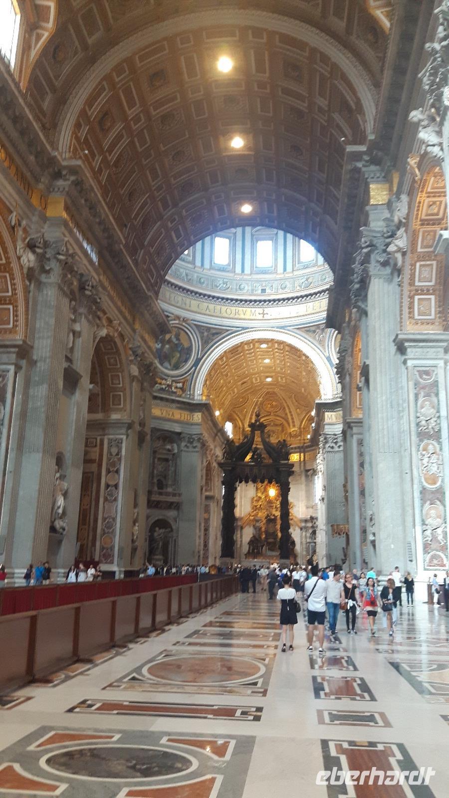 Nach dem Frühstück fuhren wir gemeinsam mit öffentlichen Verkehrsmitteln in die Stadt hinein. Es erwies sich als günstig, die Metro am Wochenende zu nutzen, denn unter der Woche sind diese oftmals gnadenlos überfüllt. Auf jeden Fall verlief die Fahrt mit der Metro erst einmal sehr entspannt und gut gelaunt trafen wir somit in der Nähe des Petersplatzes auf unsere von Anfang an sympathische Stadtführerin Cristina. Die Warteschlange an der Sicherheitskontrolle zum Eingang in den Petersdom war heute glücklicherweise kurz und nach nur etwa 20-minütiger Wartezeit war es bereits volbracht - wir waren im Sicherheitsbereich des Petersdomes angekommen! Cristina gab uns wunderbaren Erklärungen in Verbindung mit dem Vatikanstaat, dem Zentrum der katholischen Christenheit. Wir erspähten später auch die Schweizergarde, also echte Schweizer in Uniformen, welche Michelangelo einst entworfen hat und die bis heute für die päpstliche Wache zuständig sind. Als wir das imposante Bauwerk des Petersdoms schließlich betraten, waren wir einfach nur noch überwältigt! Allein der Baldachin über dem Petrus-Grab ist gigantisch und zudem beherbergt dir Kirche zahlreiche Kunstwerke. Einer der Höhepunkte ist dabei die berühmte „Pietà" von Michelangelo. Sogar die Papst-Gräber unterhalb der Kirche konnten wir heute sehen. Später erblickten wir vom Petersplatz aus auch noch das Arbeitszimmer des Papstes im letzten Stock des Apostolischen Palastes, zweites Fenster von rechts. Anschließend flanierten wir weiter vorbei an der Engelsburg, einem ursprünglichen Grab-Bau für Kaiser Hadrian und über die berühmteste aller Tiber-Brücken, die Engelsbrücke bis zur Piazza Navona. Dieser wunderschöne Platz befindet sich mitten im Herzen der Stadt und hier schuf Bernini im 17. Jahrhundert einen der schönsten Barockbrunnen, den berühmten Vier-Ströme-Brunnen! An diesem tollen Ort verbrachten wir auch unsere wohl verdiente Mittagspause, bevor wir später weiter durch die engen Gassen der Altstadt zum Pantheon, Trevibrunnen und abschließend zur Spanischen Treppe aufbrachen. An der berühmten Spanischen Treppe endete das heutige Besichtigungsprogramm und die anschließende Freizeit nutzten die meisten Gäste schließlich für schöne Spaziergänge in der Umgebung der Spanischen Treppe. Zum Abendessen kehrten wir in ein typisch römisches Lokal in der Nähe der Engelsburg ein, wo wir mit einem leckeren Bruschetta-Mix und tollen Pasta-Gerichten verwöhnt wurden. Zurück zum Hotel ging es am Abend wiederum mit öffentlichen Verkehrsmitteln, diesmal mit Linienbus und Metro.