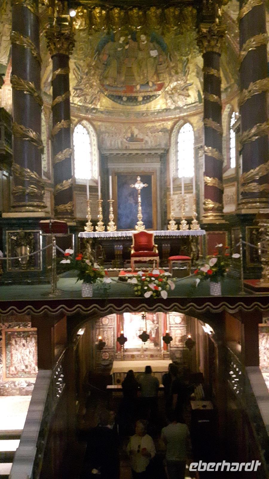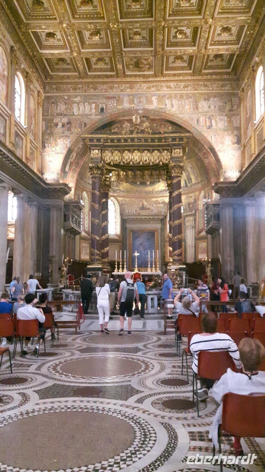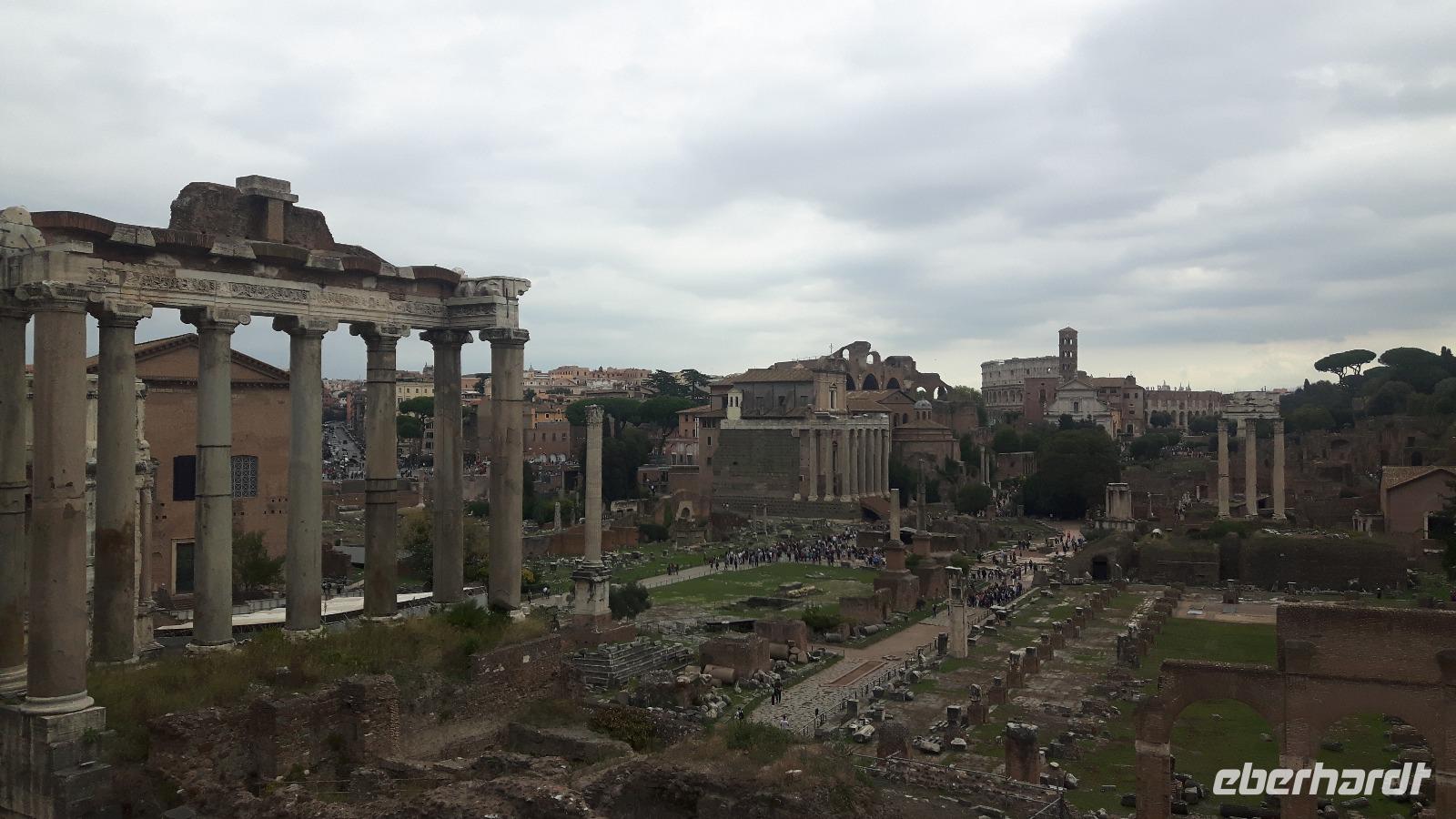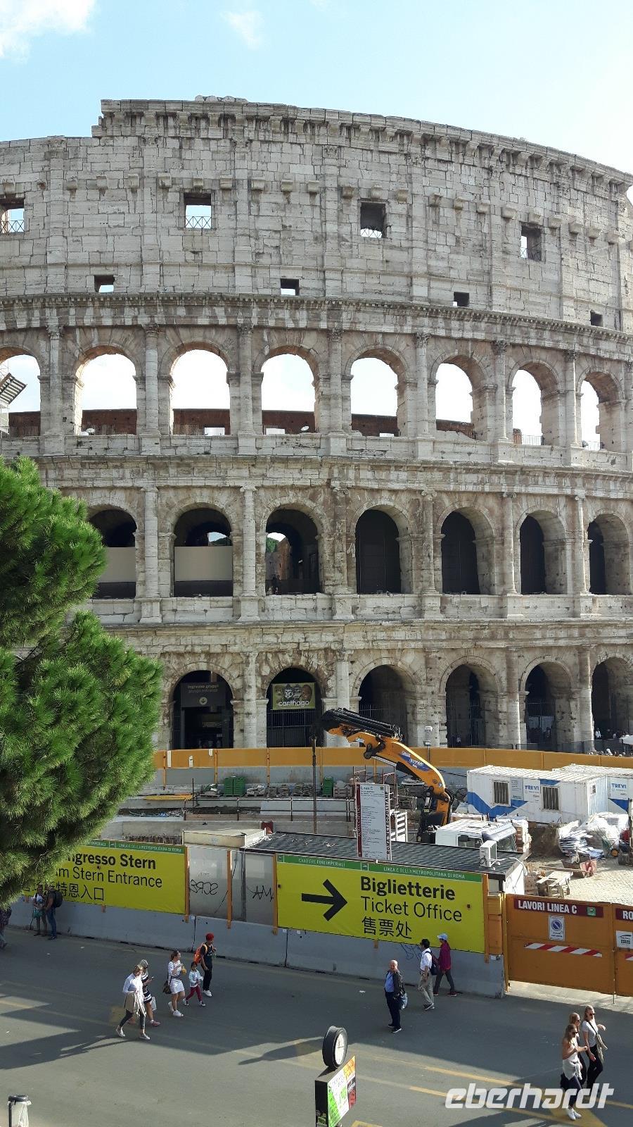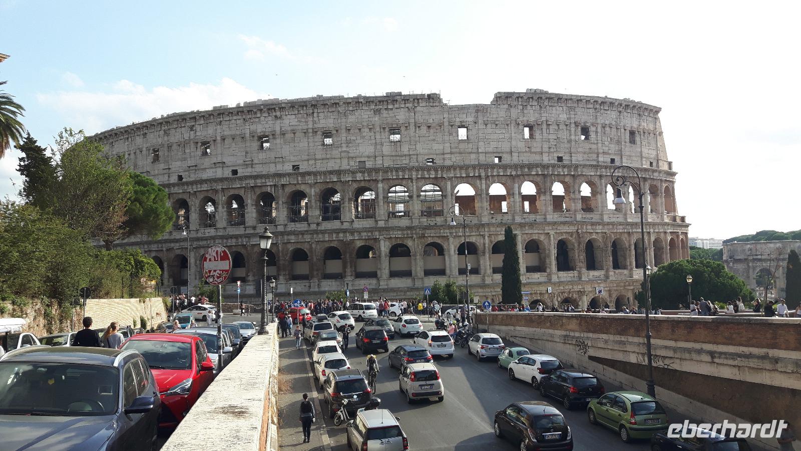 Die nächsten zwei Tage ließen wir unseren Reisebus stehen, denn mittlerweile macht es in Rom kaum noch Sinn, eine Stadtrundfahrt mit dem eigenen Bus zu unternehmen. Viele Sehenswürdigkeiten sind mittlerweile auf diesem Wege gar nicht mehr erreichbar. Zudem stand heute ein Marathon in Rom auf dem Veranstaltungskalender, was zusätzliche Straßensperrungen bedeutete. Wir entschieden uns also, auf die die öffentlichen Verkehrsmittel zurück zu greifen. Außerdem wurden wir für die nächsten Tage mit Audio-Geräten ausgestattet, damit wir die Führungen ganz intensiv erleben konnten. Nach einer kurzen Fahrt mit der Metro erwartet uns unsere charmante Stadtführerin Agnieszka bereits am Ausgang der Station „Piramide" und hier begann auch sofort der erste Teil unserer umfangreiche Stadtführung durch Rom! Wir gestalteten unseren eigenen gemütlichen Rom-Marathon und dieser führte uns unter anderem vorbei an berühmten Attraktionen der Stadt wie der Porta Ostiense, den Caracalla Termen und dem Circus Maximus. Natürlich erklommen wir auch den Kapitolshügel, der zu den sieben historischen Hügel Roms zählt und von dem aus wir einen grandiosen Blick auf das Forum Romanum werfen konnten. Dieses war im antiken Rom sowohl das gesellschaftliche, kulturelle, wirtschaftliche und politische Zentrum der Stadt. Heute handelt es sich um ein Areal aus Ruinen von Tempeln bzw. ehemaligen Verwaltungsgebäuden. Wieder unten angekommen, sahen wir das heutige Herz der Stadt, den Piazza Venezia mit dem gigantischen Nationaldenkmal. So langsam war die Mittagszeit gekommen und wir bekamen etwas Hunger... Mit einem Linienbus fuhren wir daher in die Nähe des Hauptbahnhofes „Termini", wo uns Agnieszka zeigte, wo wir gutes einheimisches Essen zu moderaten Preisen bekommen. Eine Super-Empfehlung, denn wir wären niemals auf die Idee gekommen, hier im Bahnhofsgebäude zu essen. Nach dieser Mittagspause konnte es dann gut gestärkt zur nur wenige Gehminuten entfernten Kirche Santa Maria Maggiore weiter gehen, um gemeinsam die Kirche Santa Maria Maggiore, eine der vier Patriarchalbasiliken Roms, zu besichtigen. Sie ist gleichzeitig die größte der "Jungfrau Maria" gewidmete Kirche in Rom und stammt aus dem fünften Jahrhundert. Die Kirche besticht durch ihr herrliches Inneres mit einer ziemlich spektakulär vergoldeten Decke und wunderschön verzierten Kapellen. Nach dieser eindrucksvollen Bescihtigung stand der letzte große Höhepunkt unseres heutigen Besichtigungsprogramms an - das Kolosseum! Es handelt sich hierbei um das größte antike Amphitheater der Welt, ein uraltes Zeugnis für Baukunst und grausame Spektakel, denn unzählige Tiere und Gladiatoren wurden hier geopfert. Kaiser Vespasian begann den Bau 72 n. Chr., sein Sohn Titus weihte die Arena dann nach nur achtjähriger Bauzeit mit hunderttägigen Festspielen ein. Hier hatten wir zum Glück auch noch etwas Freizeit, um uns in den zahlreichen Straßencafés einen leckeren Cappuccino schmecken zu lassen - einfach himmlisch...! Nach einem leckeren und musikalisch untermalten Abendessen in einem Gewölberestaurant Nahe des Kolosseums kehrten wir gemeinsam mit der Metro gegen 21 Uhr zum Hotel zurück. Nun endete ein zwar anstrengender, aber auch sehr eindrucksvoller Reisetag!