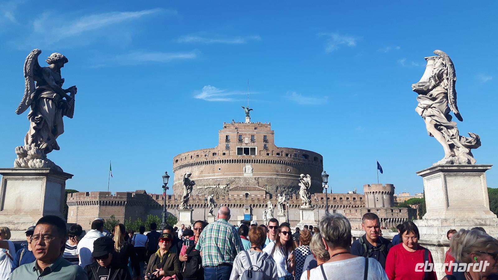 Nach dem Frühstück fuhren wir wiederum gemeinsam mit öffentlichen Verkehrsmitteln in die Stadt hinein. Heute testeten wir beide Metro-Linien Roms - zum Montag normalerweise ein echtes Abenteuer, denn am Hauptbahnhof (Termini) mussten wir umsteigen und die Metro ist mitunter derart überfüllt, dass man manchmal nur in zwei Etappen das Ziel erreicht. Wir hatten allerdings Glück und problemlos erreichten wir die Metro-Station nahe des Petersdoms, wo wir auf die uns bereits bekannte Stadtführerin Agnieszka trafen. Gemeinsam spazierten wir zum Petersplatz, dem Zentrum der katholischen Christenheit. Wohl gemerkt, wir waren ja jetzt eigentlich gar nicht mehr in Rom, sondern im Vatikan! Zunächst war ein klein wenig Geduld gefragt, denn wir mussten uns in einer Warteschlange vor der Sicherheitskontrolle am Petersplatz einreihen. Nach ein paar Minuten war es dann schließlich soweit und wir erspähten zuerst die Schweizergarde - jawohl, das sind immer noch echte Schweizer, und die Uniform ist noch genau die, welche Michelangelo entworfen hat. Nun betraten wir völlig überwältigt die Peterskirche, denn allein der Baldachin über dem Petrus-Grab ist einfach gigantisch. Die größte Kirche der Christenheit befindet sich übrigens im kleinsten Staat der Welt und nach christlichem Glauben ist hier der Apostel Petrus begraben. Die Kirche beherbergt zahlreiche Kunstwerke, zum Beispiel die „Pietà" von Michelangelo, die hinter Glas steht, da sie 1972 von einem Kirchenbesucher mit einer Axt beschädigt wurde. Wir sahen auch die berühmte Statue des heiligen Petrus, deren Füße traditionell von den Pilgern geküsst werden. Über den Hauptaltar, dem Grab Petris, erstreckt sich ein 30 Meter hoher Baldachin aus Bronze, der von Bernini entworfen wurde. Im Anschluss an die ausführliche Besichtigung des Petersdomes schlenderten wir in Richtung Metro-Station, um dann weiter zur Piazza del Popolo und schließlich zur berühmten Spanischen Treppe zu gelangen. Die beschwingten Balustraden der Spanischen Treppe unter der französischen Kirche Trinita dei Monti sind das harmonische Ergebnis eines jahrzehntelangen Streits zwischen den Päpsten und der französischen Krone. Die Franzosen finanzierten den Aufgang zu ihrer Nationalkirche, und der Sonnenkönig Ludwig XIV. hätte sich am liebsten selbst auf der Piazza di Spagna ein Denkmal gesetzt. Aber die Päpste brachten schließlich ihre Version durch und ließen im 18. Jahrhundert diese elegante Treppenanlage schaffen. Ein kurzer Spaziergang führte uns weiter zum berühmten Trevi-Brunnen. Roms beliebteste Wasserorgel steht auf einem kleinen Platz, umgeben von sechsstöckigen Palazzi. Mit dem Bau schufen sich die Barockpäpste Mitte des 18. Jahrhunderts ein letztes großes Denkmal, denn ihre Macht im Kirchenstaat schwand dahin. Der Meeresgott Ozeanus braust mit zwei Pferden durch einen Triumphbogen heran. Viele Gäste warfen natürlich Münzen in den Brunnen, um nach Rom zurückzukehren. Hier legten wir auch unsere heutige Mittagspause ein und jeder nutzte die Zeit ganz individuell, um ein Stück Pizza bzw. etwas Pasta in einer der zahlreichen kleinen Bars zu essen oder ganz einfach ein leckeres italienisches Eis zu schleckern! Gut gestärkt trafen wir uns wieder und spazierten anschließend weiter durch die engen Gassen der Altstadt zum Pantheon, einer einfach genialen Konstruktion eines Zylinders mit einer Kuppel drauf! Der Schwiegersohn von Kaiser Augustus, Markus Agrippa, ließ das Pantheon 27 v. Chr. den Göttern bauen. Nach dieser eindrucksvollen Besichtigung hieß das nächste Ziel Piazza Navona, ein traumhafter Platz im Herzen der Altstadt! Gian Lorenzo Bernini schuf hier im 17. Jahrhundert einen der schönsten Brunnen des Barocks, den Vier-Ströme-Brunnen und die vier riesenhaften Flussgötter symbolisieren die vier großen damals bekannten Ströme: Donau, Nil, Ganges und Rio de la Plata. Die letzte Etappe führte uns schließlich zur Engelsbrücke, der berühmtesten aller Tiber-Brücken. Von hier aus hatten wir einen tollen Blick zur Engelsburg, einem ursprünglichen Grab-Bau für Kaiser Hadrian. Das ehemalige Hadrianeum erhielt den heutigen Namen aufgrund einer göttlichen Vision von Papst Gregor dem Großen im 6. Jahrhundert - ein Engel erschien ihm über dem Mausoleum und kündigte das Ende der damals herrschenden Pest an, indem er sein Schwert in die Scheide steckte. Das ist heute in der bronzenen Engelsstatue auf der Spitze des Kastells dargestellt. Nun mussten wir uns auch leider von Agnieszka verabschieden, die uns in den letzten zwei Tagen durch „IHR" Rom geführt hat - DANKE, es war wirklich SPITZE! Die anschließende Freizeit nutzten die meisten Gäste schließlich für schöne Spaziergänge in der Umgebung oder für den Besuch Engelsburg. Nach einem schmackhaften Pasta-Abendessen in der Nähe der Engelsbrücke fuhren wir am Abend erneut mit öffentlichen Verkehrsmitteln zum Hotel zurück.