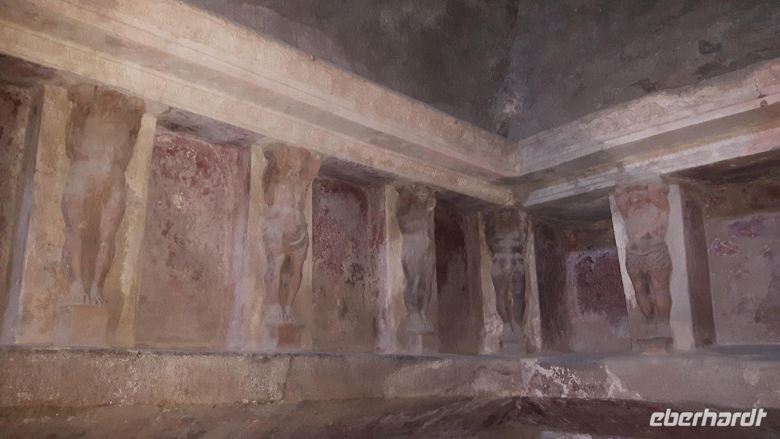 Mit den Klängen des bekannten Liedes „Arrividerci Roma" verließen wir die Hauptstadt Italiens in südliche Richtung. Schon von weitem war deutlich zu erkennen, dass der heutige Vesuv eigentlich zwei Gipfel hat, nämliche den Monte Somma, den Rest des alten Vesuv, der beim Ausbruch 79 n. Chr. regelrecht explodiert ist und den 1.280 Meter hohen eigentlichen Gipfel des Vesuvs. Unser Bus brachte uns bis Torre del Greco, wo wir in einen italienischen Bus umstiegen und der uns dann bis auf knapp 1.000 m hinauf brachte. Die restlichen etwa 300 Höhenmeter mussten wir dann zu Fuß zurücklegen. Das erste Drittel war ziemlich steil, dann ging es gemächlicher voran und nach reichlich einer halben Stunde standen wir am Kraterrand. Der Berg scheint völlig zu ruhen, wir sahen lediglich ein paar Dampfquellen. Umso erstaunlicher ist die Tatsache, dass dieser Vulkan ein Pulverfass ist - der letzte Ausbruch war schließlich 1944 und das ist lange her. Experten sagen, dass ein gewaltiger Gesteinspfropfen den Krater versperrt und die vulkanischen Kräfte sich somit immer extremer aufstauen. Je länger der Berg also ruhig bleibt, desto heftiger wird eines Tages die Eruption sein. Etwa 700.000 Neapolitaner leben weniger als zehn Kilometer vom Krater entfernt, jedem ist die Gefahr bewusst, man verdrängt sie jedoch permanent. Die vulkanische Erde ist schließlich sehr fruchtbar und sichert den Bewohnern gute Einnahmen in der Landwirtschaft. Am frühen Nachmittag erreichten wir dann das nahe gelegene Pompeji, wo wir unsere kompetente Reiseführerin Fiorella trafen. Die archäologische Zone von Pompeji ist heute ein riesiges Freilichtmuseum römischer Lebensweise. Es ist eine Stadt, die innerhalb von Stunden von ihren Bewohnern verlassen wurde und dann bis zu ihrer Ausgrabung keine Veränderung mehr erfuhr. Mit der Vesuv-Katastrophe des Jahres 79 hatte niemand gerechnet. Das schwere Erdbeben 16 Jahre zuvor signalisierte zwar nach heutigen Erkenntnissen wahrscheinlich das Ende einer langen Ruhephase des Vesuvs, denn auch in späterer Zeit waren Ausbruchsperioden fast immer von Erdbeben begleitet oder vorangekündigt. Das ausgegrabene Pompeji zeigt deutliche Spuren des Erdbebens und überall in der Stadt weisen Mörtelhaufen und Baumaterial auf den noch andauernden Wiederaufbau hin. Es ist für uns heute nicht nachvollziehbar, aber man muss sich vorstellen, dass im Jahre 79 der obere Teil des Vesuvs unter dem Druck der aufsteigenden Gase regelrecht explodierte. Über dem Berg stand eine riesige, wie eine Pinie geformte Aschenwolke, die dann auf die Umgebung, besonders auf Pompeji niederregnete. Der Untergang von Pompeji erfolgte keineswegs innerhalb von Minuten, sondern dauerte Stunden und Tage, so dass mit Sicherheit der größte Teil der Einwohner zumindest das nackte Leben retten konnte. Schließlich erstickten hochgiftige Gase und die sich meterhoch auftürmenden heißen Vulkanaschen alles Leben. Was jetzt noch an lebenden Wesen zurückgeblieben war, wurde von der Asche wie von einer Gussform eingehüllt, Fleisch und Knochen verbrannten und wurden von ätzenden, scharfen Mineralsalzen zerfressen - ein Hohlraum entstand. Während der Ausgrabungen wurden viele dieser Hohlräume mit Gips ausgegossen und wir haben heute ein makaber-plastisches Bild des Todeskampfes der Zurückgebliebenen: Hunde, Gefangene, Zögernde, die noch möglich viel von ihrem Besitz retten wollten, wahrscheinlich auch Plünderer. Pompueji ist wirklich einzigartig - wir gingen durch Straßen, an Geschäften, Restaurants und Bädern vorbei... Nach dieser interessanten Führung in Pompeji brachen wir nach Vico Equense auf der Sorrentinischen Halbinsel auf. Hier checkten wir wenig später für weitere vier Nächte im Hotel „Sporting", ein. Das Hotel bezaubert durch seine traumhafte Lage direkt an der Steilküste und lädt definitiv zum Verweilen ein.
