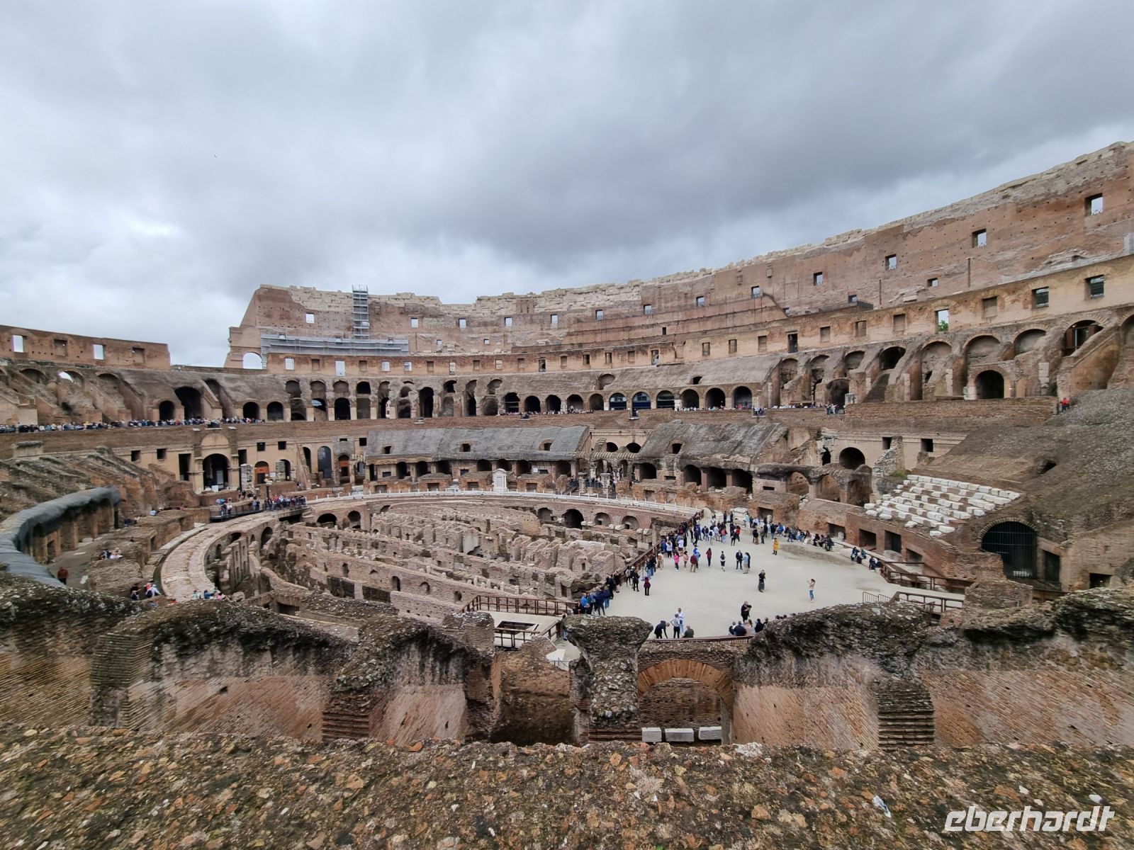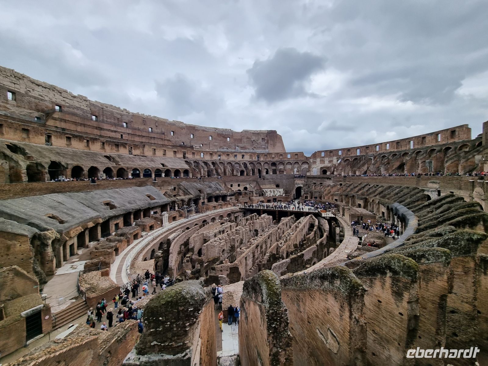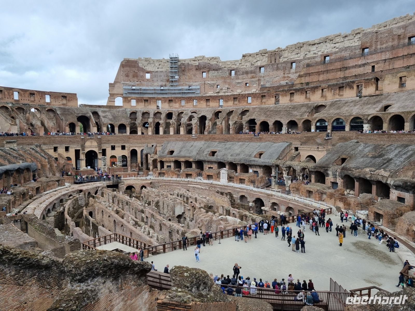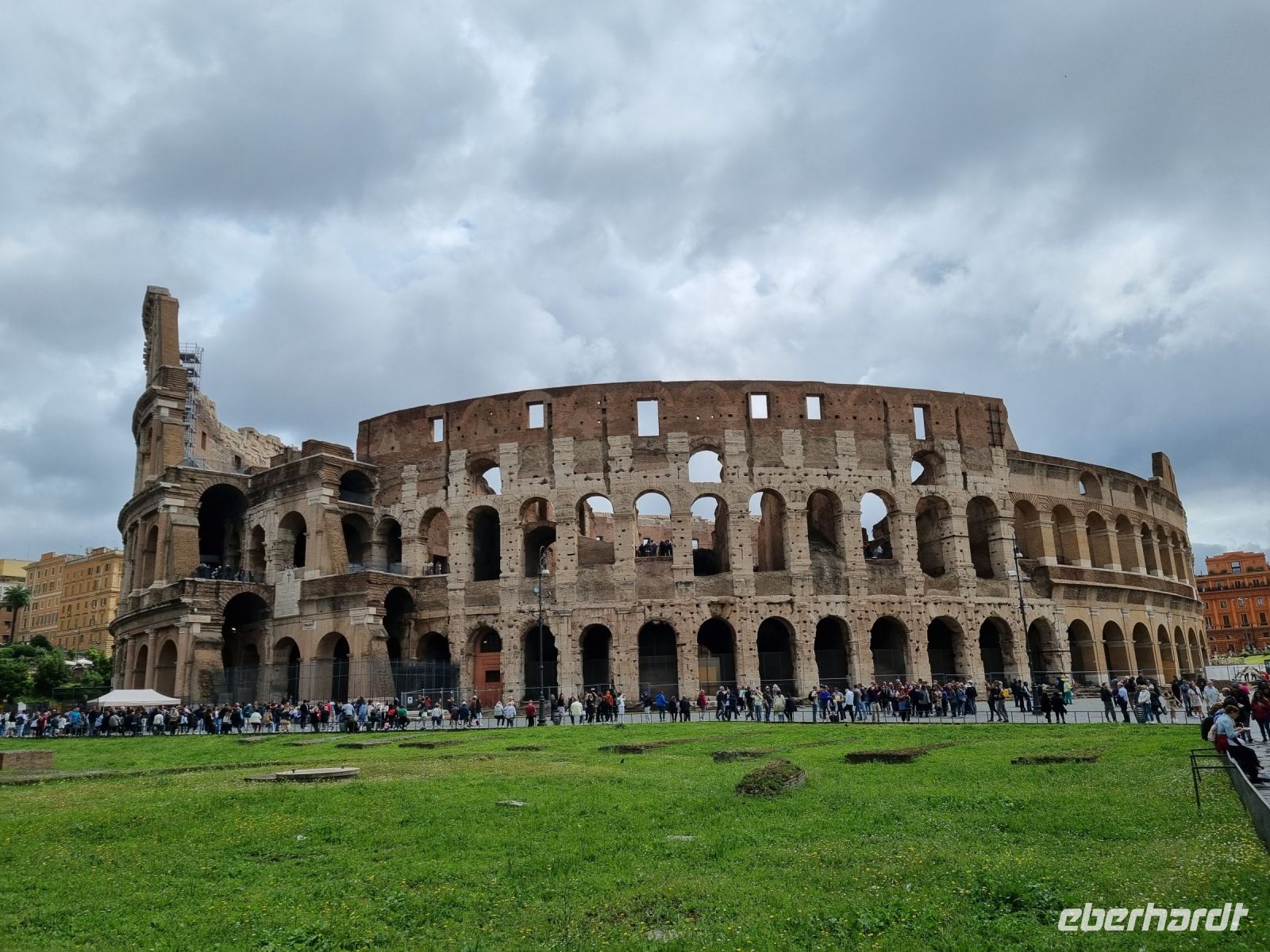 Die nächsten zwei Tage ließen wir unseren bequemen 5-Sterne-Reisebus auf dem Busparkplatz stehen, denn mittlerweile macht es in Rom keinerlei Sinn mehr, eine Stadtrundfahrt mit dem eigenen Bus zu unternehmen und viele Sehenswürdigkeiten sind außerdem auf diesem Wege gar nicht mehr erreichbar. Wir entschieden uns also, auf die öffentlichen Verkehrsmittel zurück zu greifen und außerdem waren wir für die nächsten Tage mit Audio-Geräten ausgestattet, damit wir die Führungen ganz intensiv erleben konnten. Unser Hotel im südlichen Eur-Viertel ermöglichte eine unkomplizierte Metro-Fahrt bis zum Kolosseum. Am Ausgang der dortigen Metro-Station erwartete uns dann unsere charmante Stadtführerin Sylvia freudig und hier begann dann auch der erste Teil unserer umfangreiche Stadtführung durch Rom! Der erste große Höhepunkt unseres heutigen Besichtigungsprogramms ließ nicht lange auf sich warten – die Innenbesichtigung des Kolosseums! Es handelt sich hierbei immerhin um das größte antike Amphitheater der Welt, ein uraltes Zeugnis für Baukunst und grausame Spektakel, denn unzählige Tiere und Gladiatoren wurden hier geopfert. Kaiser Vespasian begann den Bau 72 n. Chr., sein Sohn Titus weihte die Arena dann nach sage und schreibe nur achtjähriger Bauzeit mit hunderttägigen Festspielen ein. Diese Fakten sind in unserer heutigen Zeit kaum nachvollziehbar, aber es beeindruckt ganz einfach! Weiter flanierten wir anschließend durch das Forum Romanum, dem zentralen öffentlichen Platz im antiken Rom, der sich heute als pittoreske Ruinenlandschaft im Zentrum der modernen Stadt präsentiert. Von den hiesigen Kaiserforen wurde nicht nur Rom, sondern das ganze Römische Reich regiert und gerade hier lag für fast 1.000 Jahre das Zentrum der Antike. Ehe wir uns versahen, war auch schon die Mittagszeit angebrochen und etwas Hunger machte sich breit. Wir flanierten gemeinsam ins urige Stadtviertel Monti, um dort unsere Mittagspause zu verbringen. Jeder nutzte diese Zeit ganz individuell, um ein Stück Pizza bzw. etwas Pasta in einer der zahlreichen Restaurants und Bars zu essen oder ganz einfach ein leckeres italienisches Eis zu schleckern! Gut gestärkt flanierten wir weiter über die Piazza Venezia bzw. vorbei am Nationaldenkmal und dem Teatro Marcello bis hin zum Circus Maximus. Dieses Stadion war früher die größte Rennstrecke für Wagenrennen in Rom und lag genau zwischen den Hügeln Palatin und Aventin. Von hier aus erklommen wir den Aventin-Hügel, einen der sieben historischen Hügel Roms. Es ist eine ruhige Gegend mit eleganten Wohnhäusern. Wir bestaunten zunächst den blühenden Rosengarten und wenig später besuchten wir den Orangengarten, einen gepflegten Park mit einer Aussichtsterrasse, von der man Rom zu seinen Füßen hat und nahezu alle Sehenswürdigkeiten überblicken kann. Nach diesem eindrucksvollen Erlebnis ging es zurück in die Innenstadt und so flanierten wir über den Tiber in den Stadtteil Trastevere hinein, dem lebhaftesten und malerischsten Volksviertel Roms. Hier ließen wir uns dann durch ein Labyrinth schmaler Straßen und pittoresker Häuser treiben. Der restliche Nachmittag bzw. Abend stand uns zur freien Verfügung und jeder hatte die Möglichkeit, in eines der zahlreichen gemütlichen Restaurants einzukehren und ein schmackhaftes Abendessen nach individuellen Wünschen einzunehmen. Mit vielen überwältigenden Eindrücken fuhren wir am Abend gemeinsam mit den öffentlichen Verkehrsmitteln zum Hotel zurück.