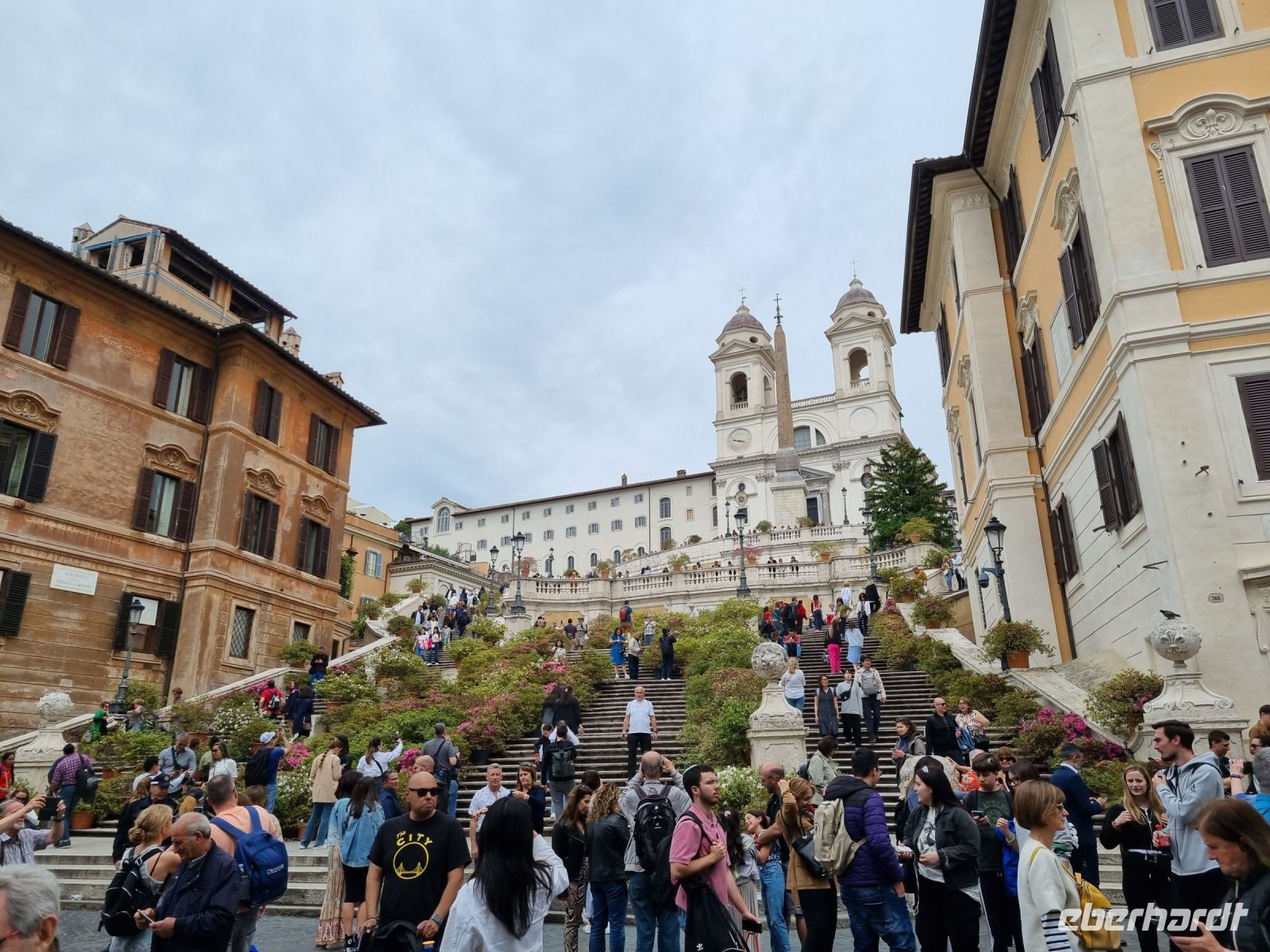 Nach dem Frühstück fuhren wir wiederum mit den öffentlichen Verkehrsmitteln in die Stadt hinein. Gut gelaunt trafen wir Nahe des Petersplatzes auf unsere heutige Stadtführerin Cristina. Die Warteschlange an der Sicherheitskontrolle zum Eingang in den Petersdom war zwar schon ziemlich lang, aber es ging relativ zügig voran...! Nach etwa 40 Minuten hatten wir es dann schließlich geschafft... Als wir das imposante Bauwerk des Petersdoms endlich betraten, waren wir einfach nur noch überwältigt! Allein der Baldachin über dem Petrus-Grab ist gigantisch und zudem beherbergt die Kirche zahlreiche Kunstwerke. Cristina gab uns zudem interessante Erklärungen in Verbindung mit dem Vatikanstaat, dem Zentrum der katholischen Christenheit. Wir erspähten sogar die Schweizergarde, also echte Schweizer in Uniformen, welche Michelangelo einst entworfen hat und die bis heute für die päpstliche Wache zuständig sind. Anschließend flanierten wir weiter vorbei an der Engelsburg, einem ursprünglichen Grab-Bau für Kaiser Hadrian und der berühmtesten aller Tiber-Brücken, der Engelsbrücke, bis zur berühmten Piazza Navona. Dieser wunderschöne Platz befindet sich mitten im Herzen der Stadt und hier schuf Bernini im 17. Jahrhundert einen der schönsten Barockbrunnen, den berühmten Vier-Ströme-Brunnen! Durch die engen Gassen der Altstadt gelangten wir zu weiteren Sehenswürdigkeiten der Stadt, so sahen wir am Nachmittag das Pantheon, den Trevibrunnen sowie zum Abschluss des Besichtigungsprogramms die Spanische Treppe. Nach zwei erlebnisreichen Besichtigungstagen in Rom stand uns der restliche Nachmittag bzw. Abend zur freien Verfügung und jeder hatte erneut die Möglichkeit, in eines der zahlreichen gemütlichen Restaurants einzukehren und ein schmackhaftes Abendessen nach individuellen Wünschen einzunehmen.